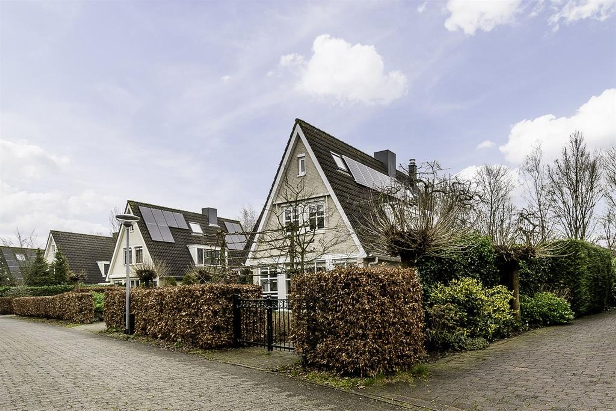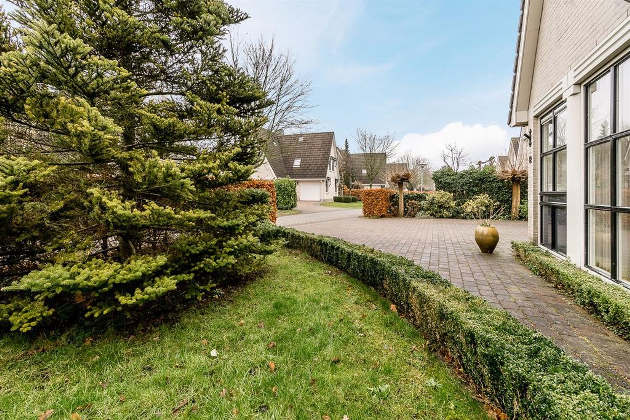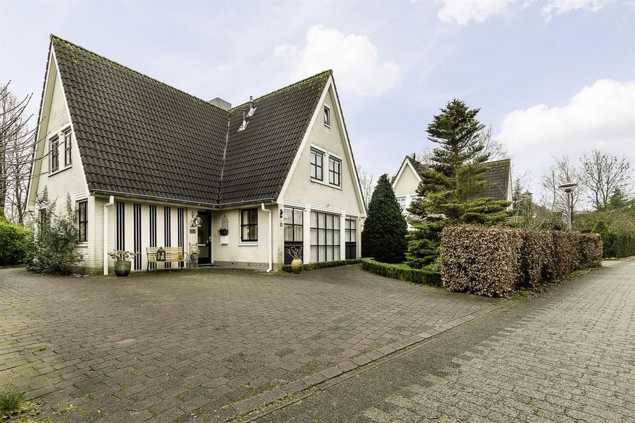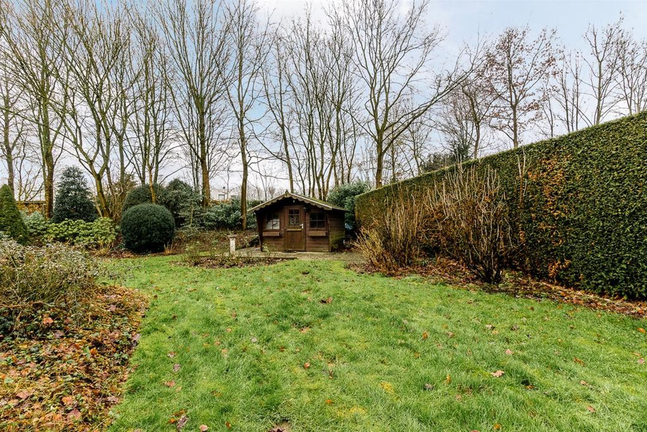 Extern Opmerkelijke stijlkenmerken van deze fraaie villa zijn de lichte tint gevels, de donker grijze betonpannen, de zinken goten en de fantastische grote raampartijen met roedeverdelingen rond de gehele woning. De voortuin is ingedeeld met een brede oprit voorzien van sierbestrating, gazon en borders met een diversiteit aan bomen en planten zoals een grote dennenboom en sierpluimen. Achter de woning, volledig aan het straatzicht onttrokken, ligt een prachtige royale brede en vooral diepe tuin. Deze ligt voornamelijk op het zuiden dus kunt u hier de gehele dag van het zonlicht genieten. De brede hout- en boswal zal het gevoel van het wonen in de natuur zeker versterken. Zo treft u een breed zonneterras langs de achtergevel t.p.v. de dubbele openslaande deuren. Voorts is de tuin grotendeels ingericht met een groot lager gelegen gazon en diverse ruime borders. Rondom wordt de tuin omsloten door natuurlijke groen erfscheidingen en de diepe boswal aan de achterzijde. Het houten tuinhuis in de tuin biedt u veel extra bergruimte voor uw tuingereedschap e.d. Uiteraard ontbreekt de buitenkraan niet.
