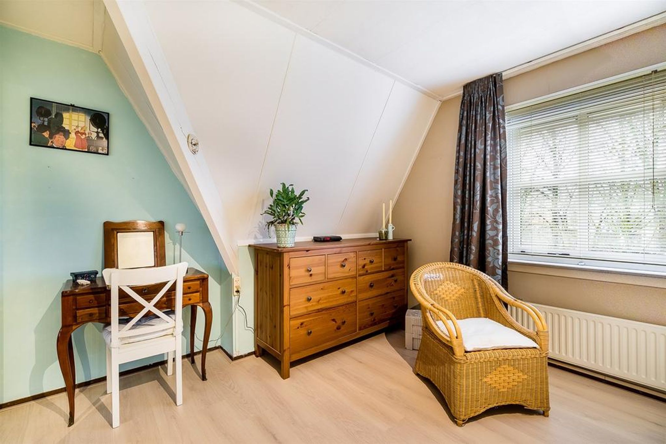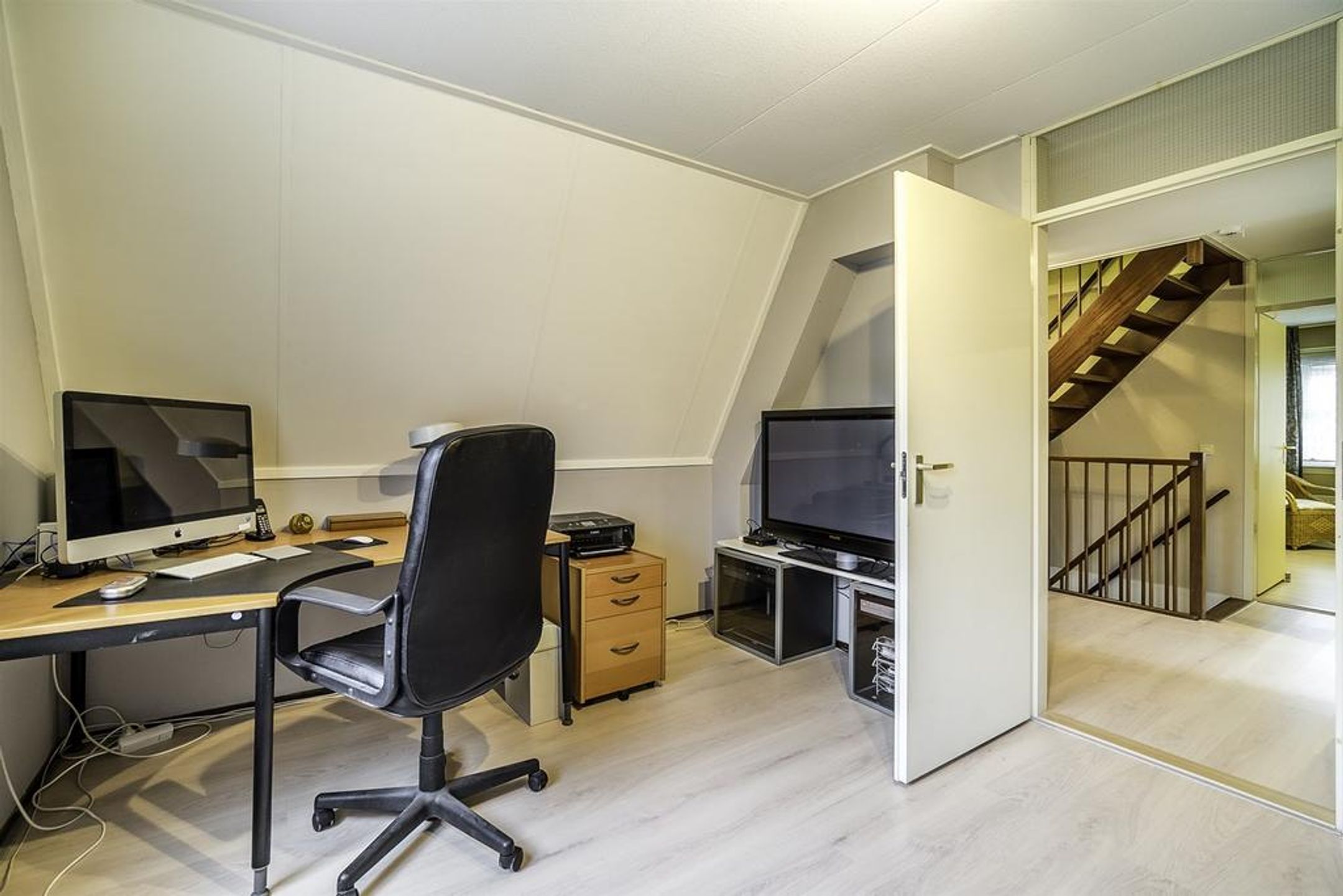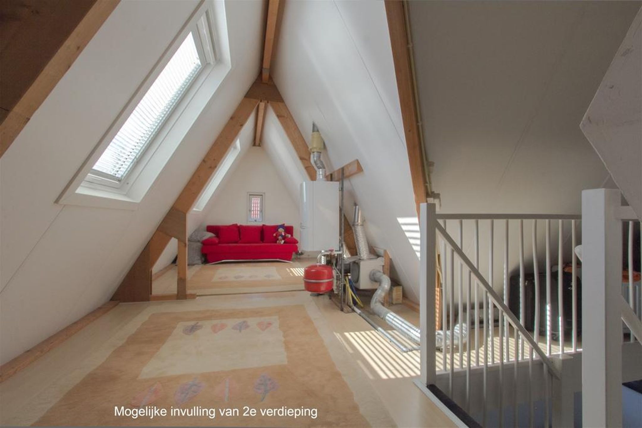2e verdieping Over een hard houten trap bereikt u de verrassende ruime 2de verdieping welke is onder te verdelen in drie zones welke voortkomen uit de toegepaste T-kap constructie met stijl oplopende dakhelling. Er bestaat de mogelijkheid tot het creëren van 2 extra kamers. Thans is deze open ruimte benut als hobbykamer en ruime bergzolder. Tevens treft u hier de nieuwe (2018) mechanische ventilatie unit en de NEFIT ECOLINE HR ketel (2006) welke goed is onderhouden en ieder anderhalf jaar is voorzien van controle.