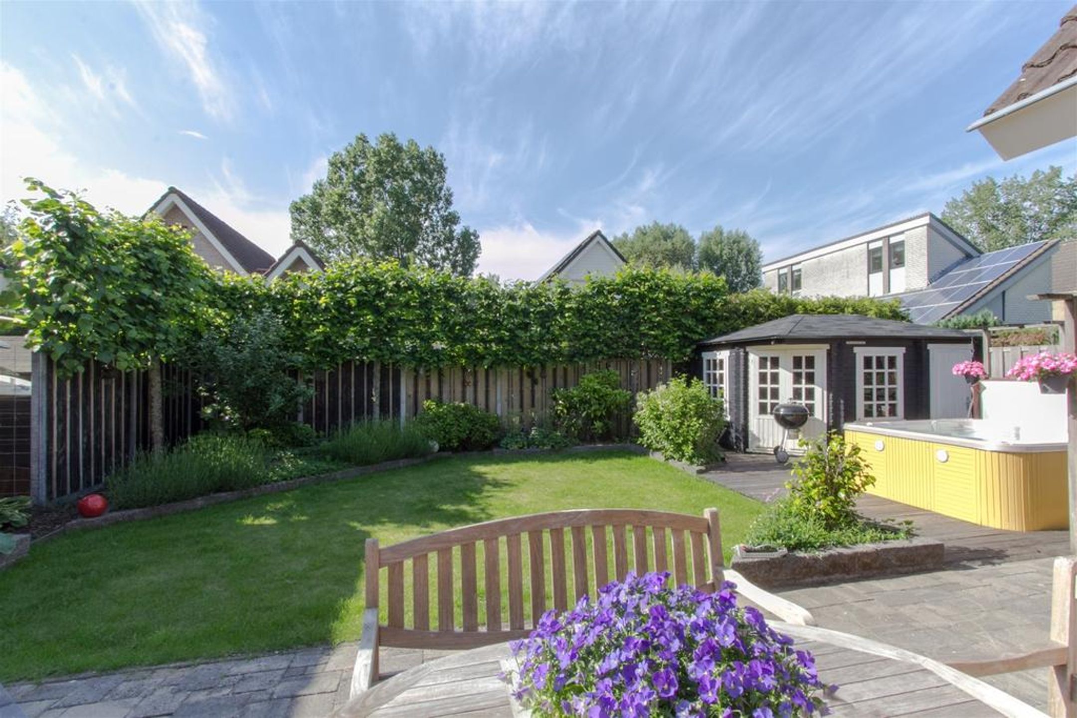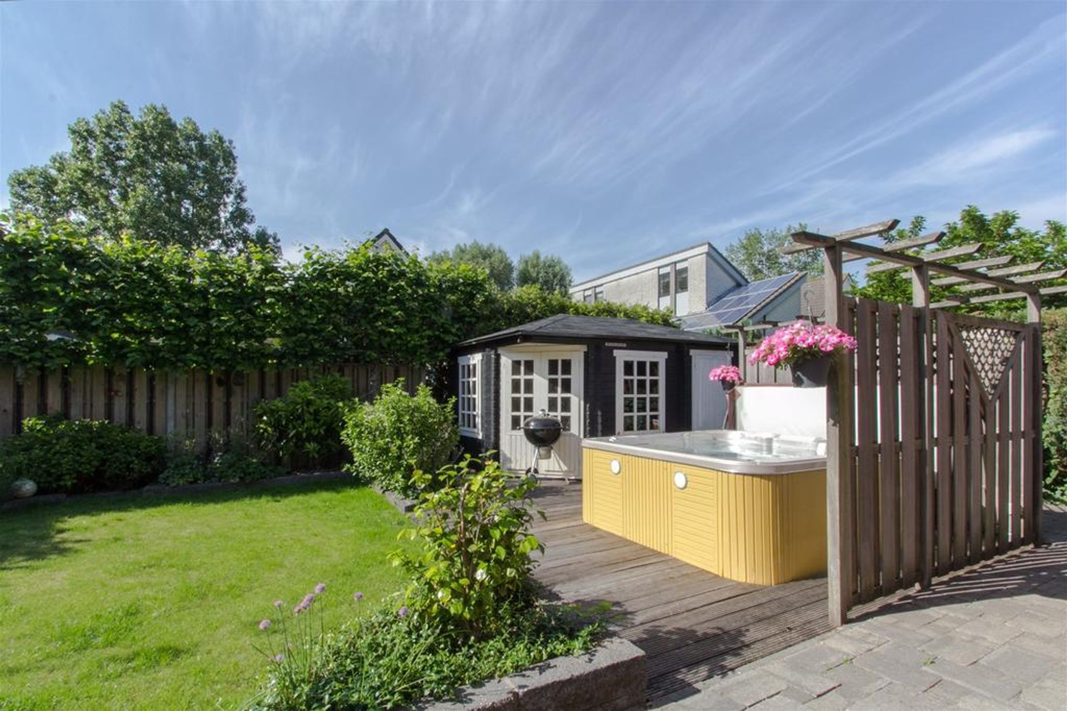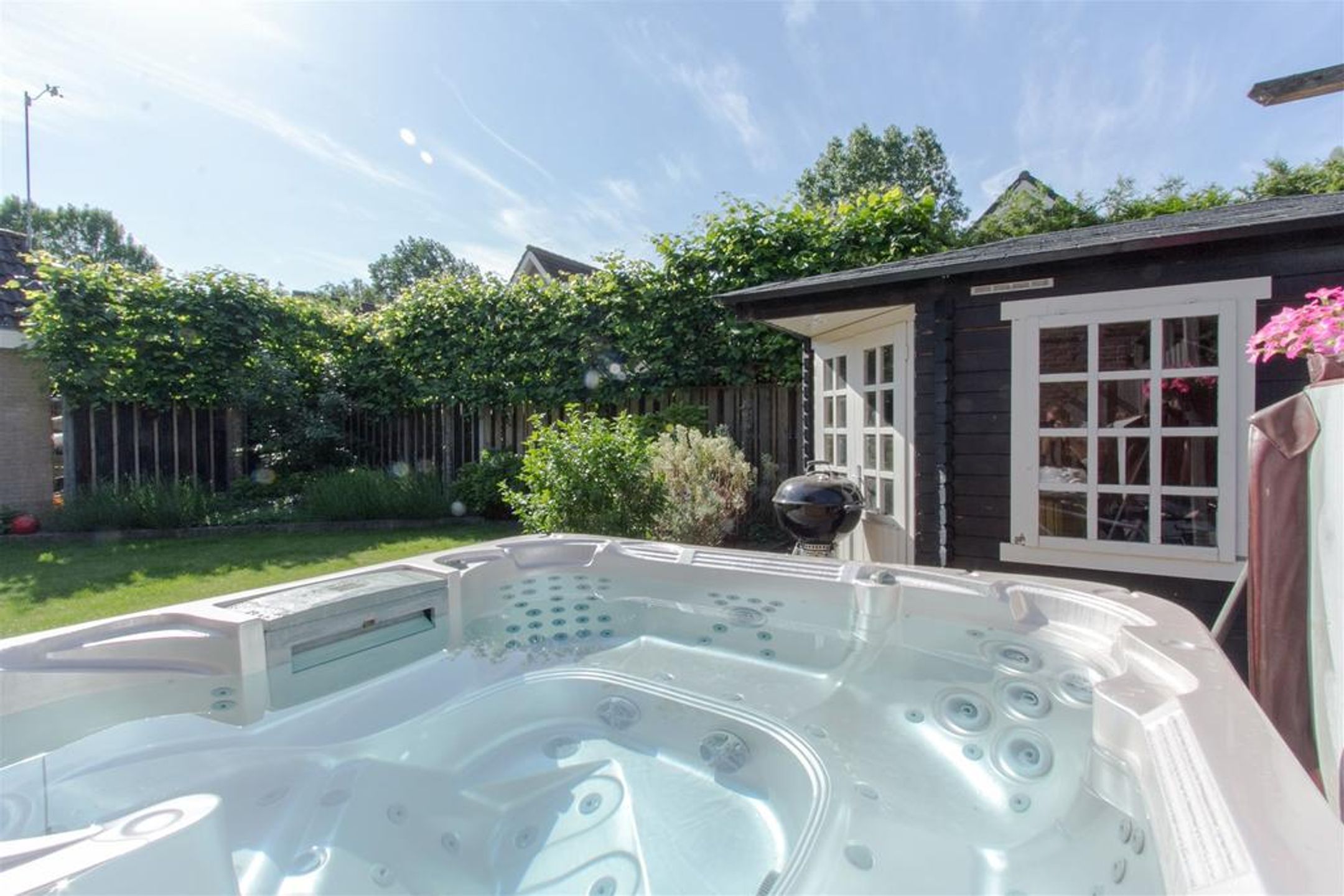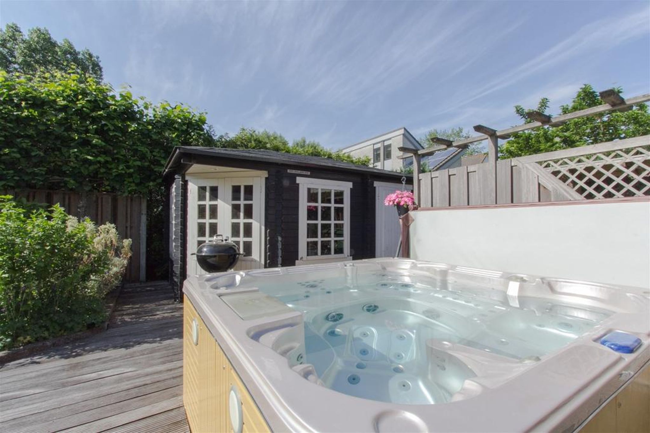 - zonnige tuin op noordwesten met houten buitenberging en jacuzzi (blijft achter, geen onderdeel van verkoop);