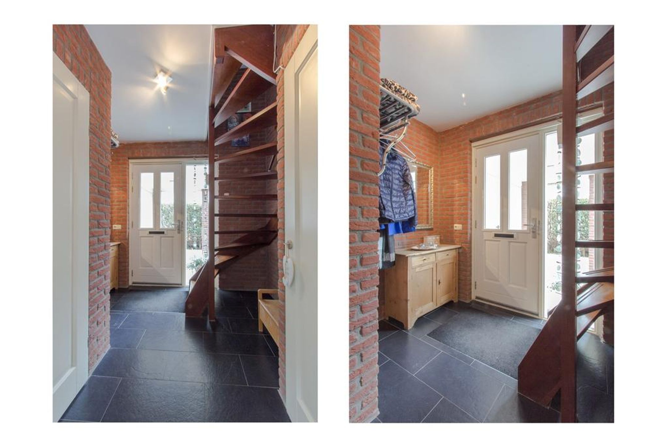 Hal met toegang tot de garderobe, de meterkast (voorzien van glasvezel, 3 x 25 Amp. aansluiting en een aparte drie fasen groep voor extern, de toiletruimte, de ruime living en de trapopgang naar de verdieping. Het plafond is in 2015 glad gestuct en op de vloer liggen keramische leisteen-look vloertegels die drempelloos doorlopen in de toiletruimte, de living en de keuken. De verdeler voor de vloerverwarming bevindt zich ook in deze ruimte.