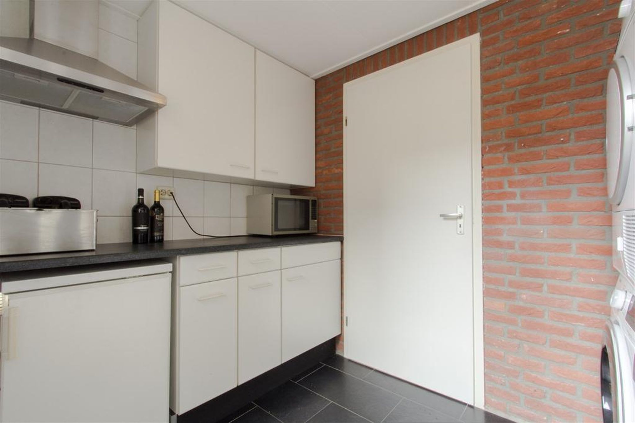 De praktische bijkeuken is voorzien van aansluitingen voor de wasmachine en de wasdroger. Een wandopstelling met boven- en onderkasten biedt veel extra bergruimte. Er is een extra afzuigkap geplaatst t.b.v. een friteuse. Deuren bieden toegang tot de garage en de zonnige achtertuin.