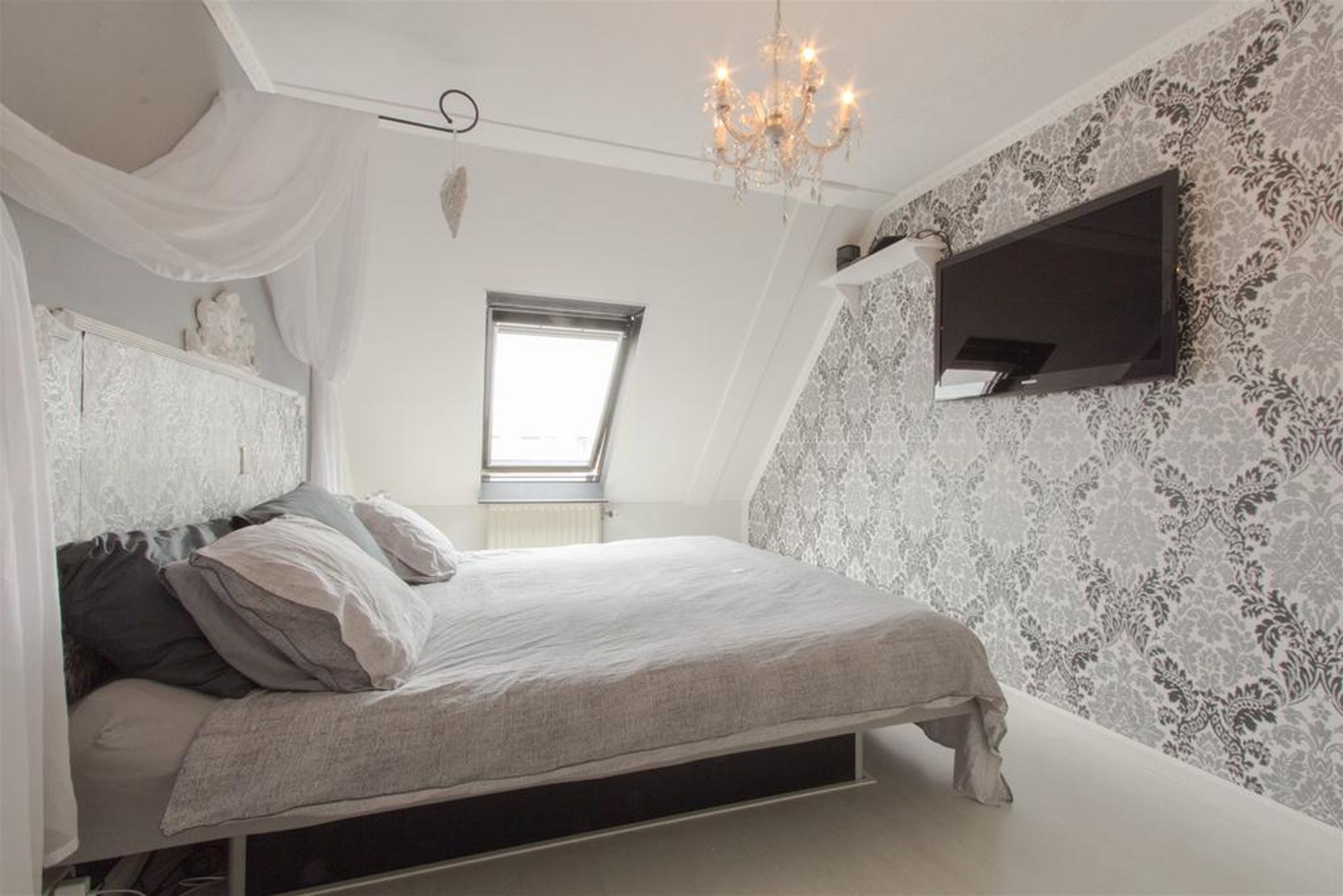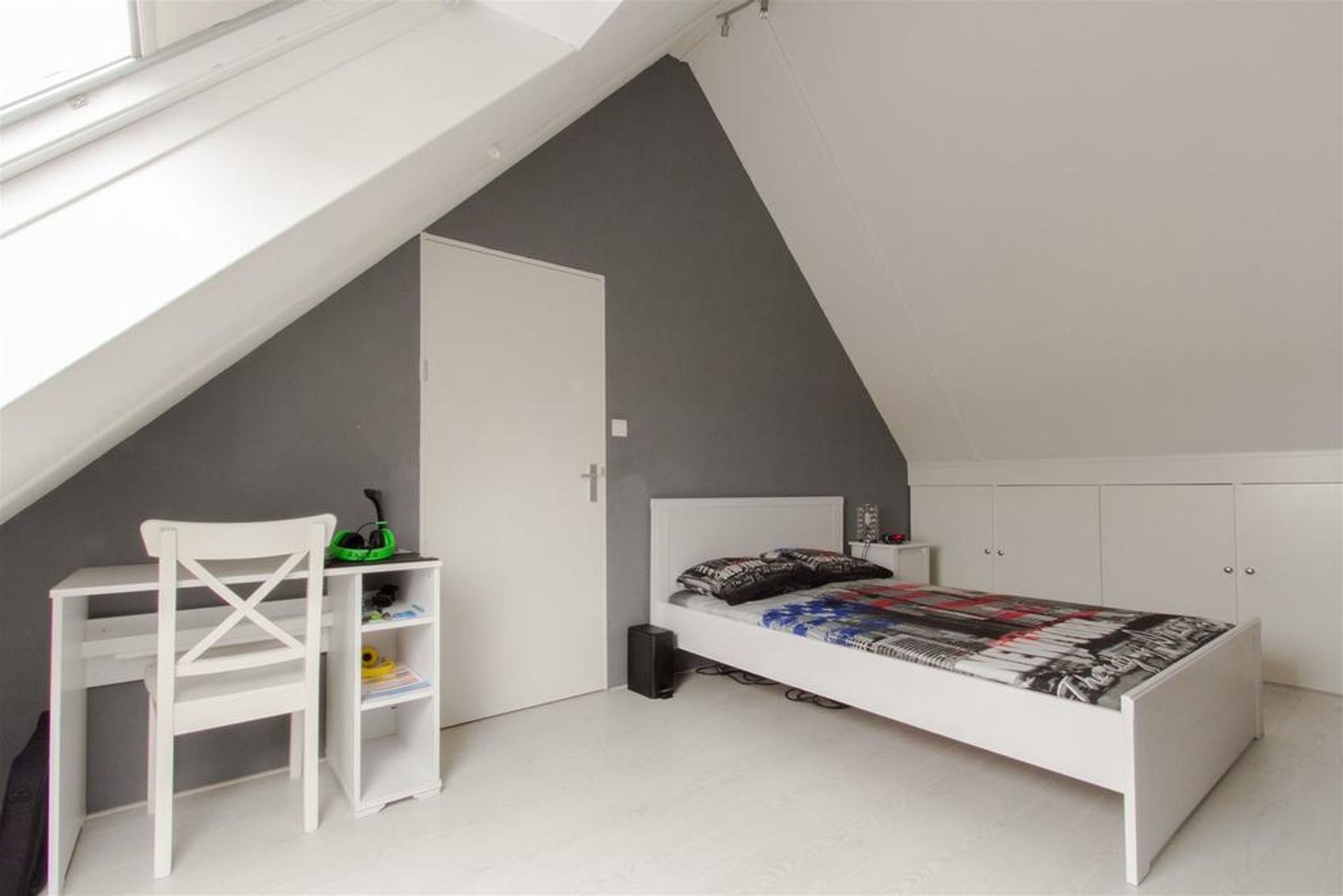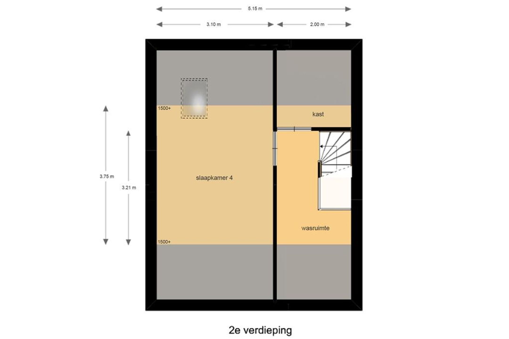 2e verdieping Op de 2e verdieping treft u nog een zeer royale 4e slaapkamer. Er is veel extra bergruimte achter de knieschotten. Op de voorzolder treft u de aansluitingen voor de wasmachine en wasdroger. Achter een deur treft u een praktische extra bergruimte.