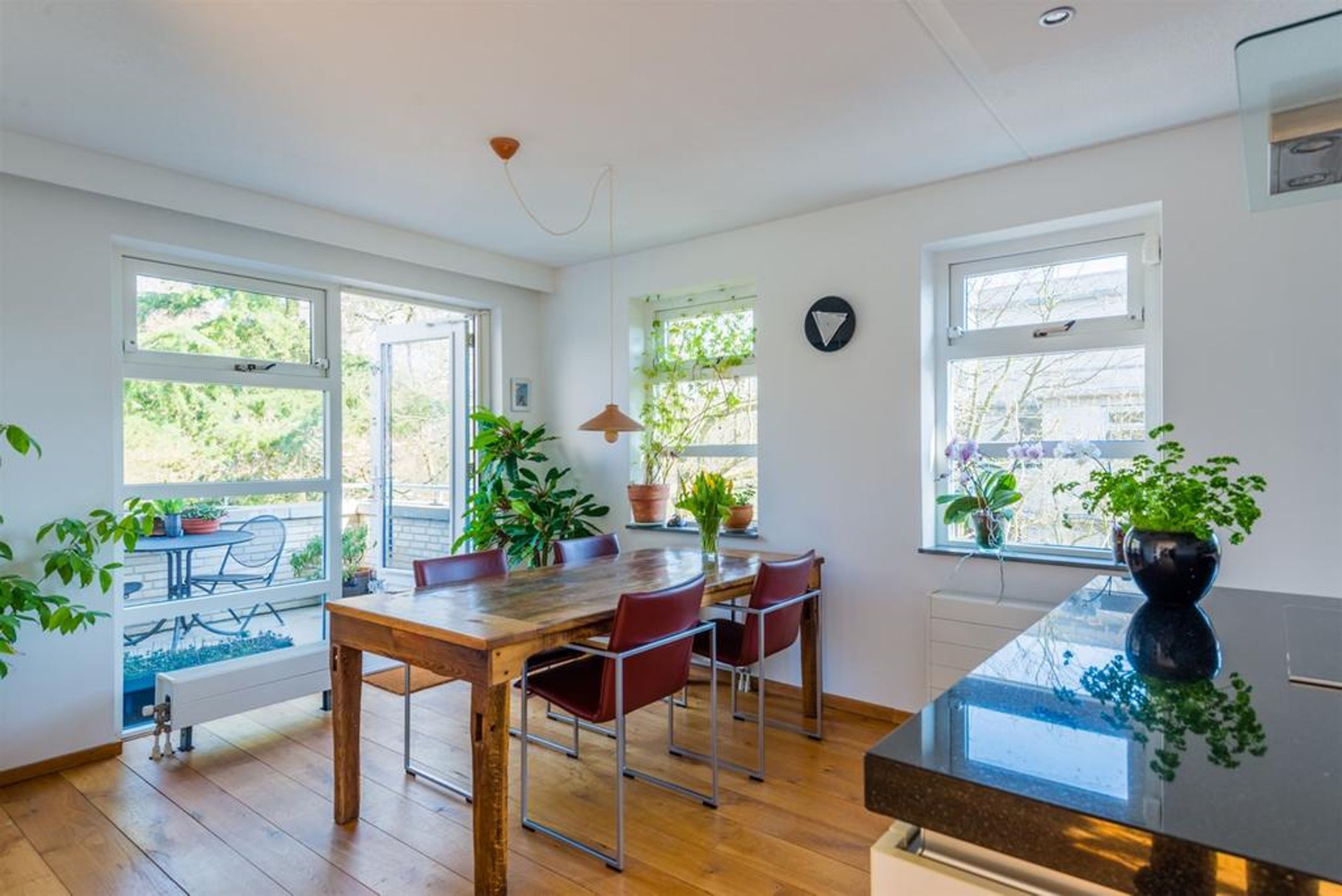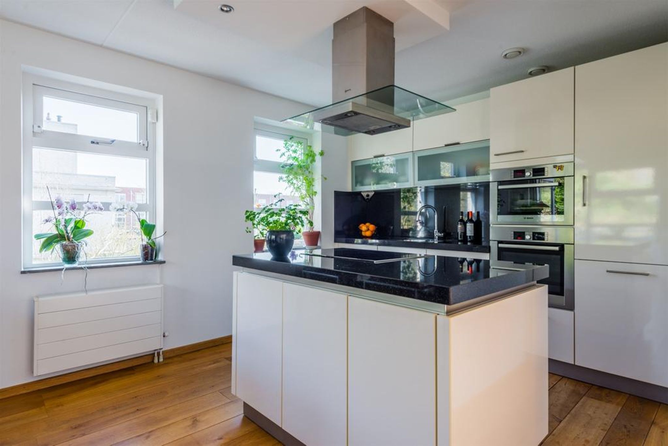 Een veel gehoorde woonwens is een ruime gezellige woonkeuken. Deze wens kunnen wij met deze woning perfect invullen. Deze woonkeuken is geheel vernieuwd en voorzien van een luxe moderne inbouwkeuken. De keuken is heerlijk ruim en licht wat te danken is aan de grote ramen in de zijgevel en het kozijn ter plaatse van het dakterras aan de voorzijde. U zult hier genieten van het zicht op de brede groenvoorziening en bosrand aan de overzijde. De luxe inbouwkeuken bestaat uit een brede wandopstelling en in het midden een kookeiland met aansluitend een lange eettafel. De keuken is samengesteld met een combinatie van off-white hoogglans fronten met RVS grepen en een zwart graniet werkblad, achterwand en tafel. Alle luxe keukenapparatuur is aanwezig zoals; een BOSCH volledig geïntegreerde vaatwasmachine, een BOSCH heteluchtoven, een BOSCH stoomoven, een BOSCH inductiekookplaat met daarboven een moderne NEFF afzuigkap in een combinatie van RVS en glas, een BOSCH hoge inbouwkoelkast met groot vriesvak en tot slot een extra BOSCH koelkast met uittrekbaar front met lades. U treft veel bergruimte in de kasten rondom, de brede pannenlades en de bovenkasten met glazen vouwdeuren en geïntegreerde verlichting.