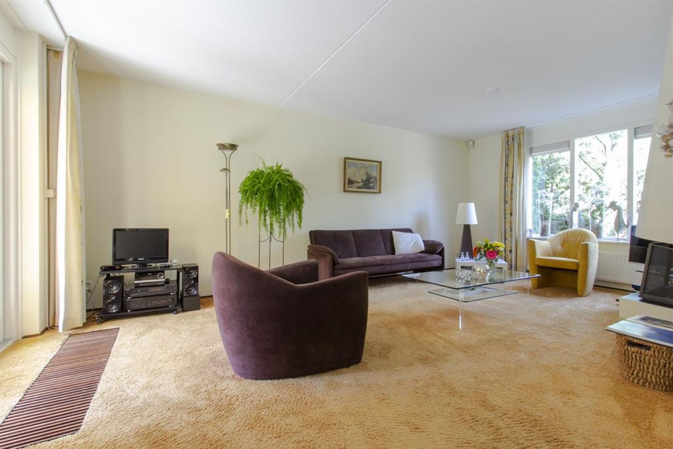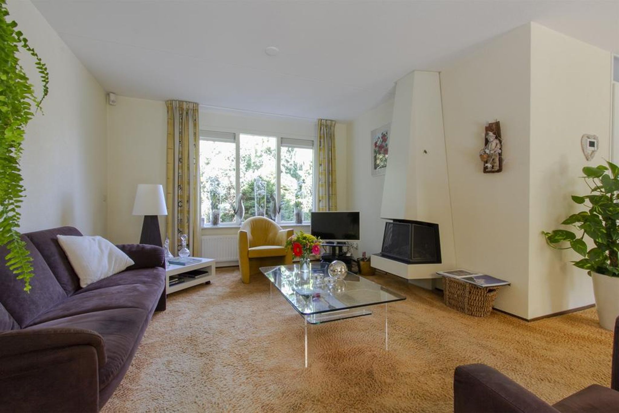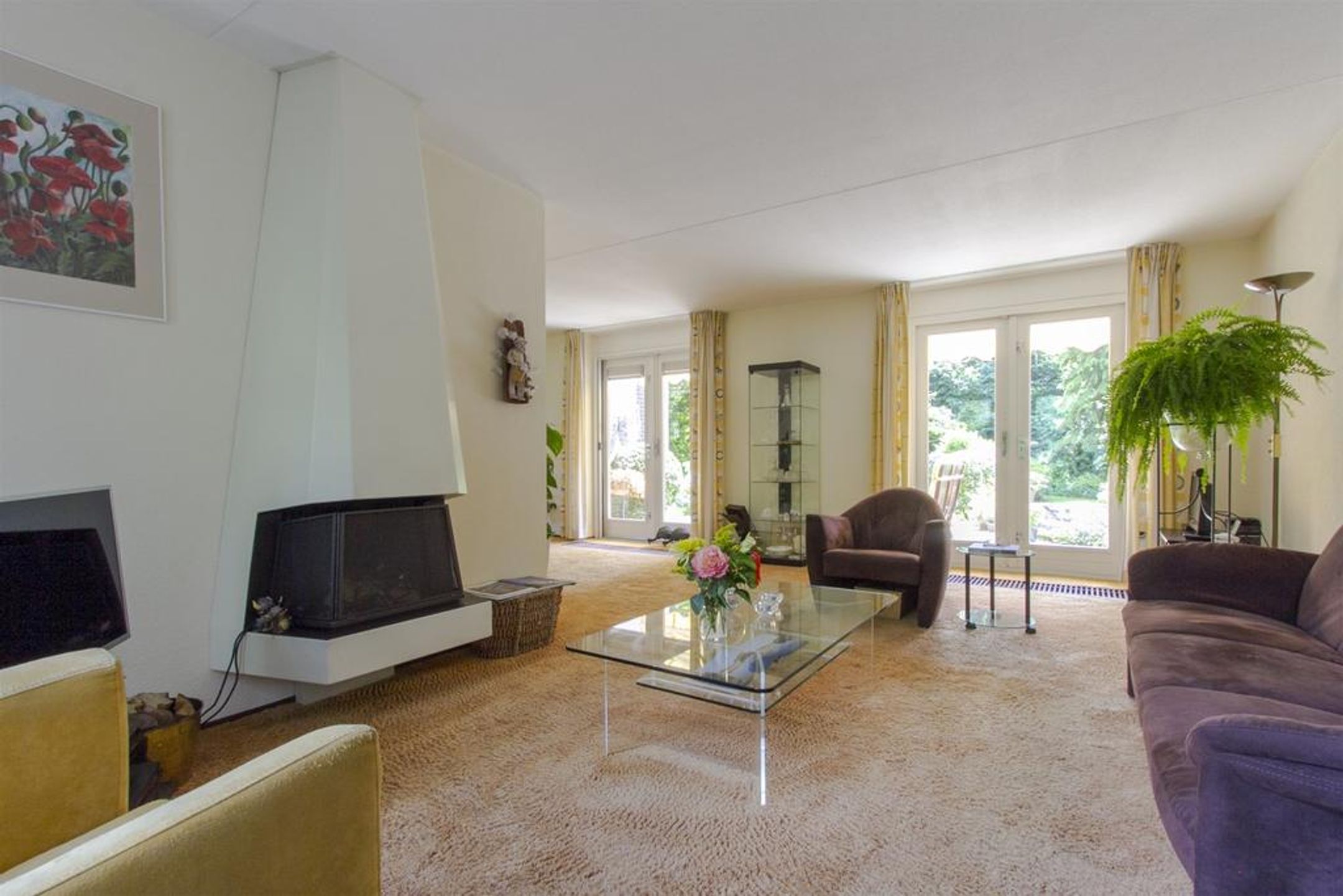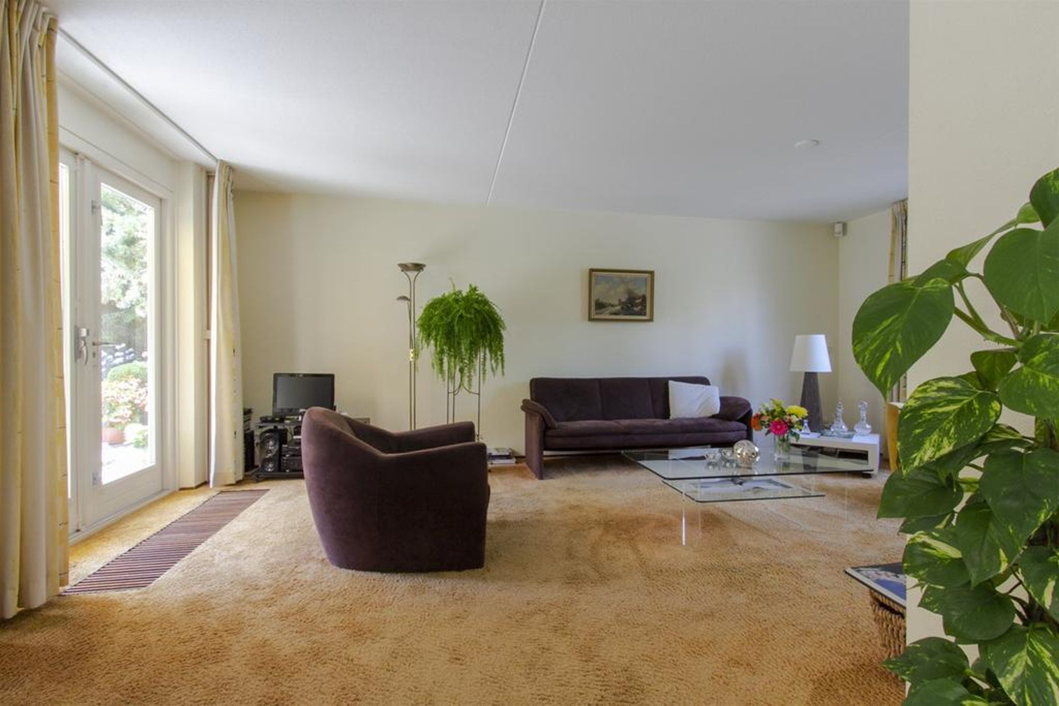 In de gehele living ligt zachte vloerbedekking en rondom zijn de wanden afgewerkt met spachtelputz. De ruime living is over de gehele breedte en diepte van de woning gesitueerd met rechts een gezellige zithoek met houtgestookte openhaard, centraal veel verkeersruimte en links de eetkamer en de open keuken met bijkeuken. In de zithoek heeft u zicht op uw omgeving door het brede raam in de voorgevel en de dubbele openslaande deuren in de achtergevel waardoor u contact hebt met de prachtige groene woonomgeving. Deze dubbele openslaande deuren treffen we ook bij de centrale verkeersruimte. De zonnige tuin zal u ervaren als een verlengstuk van uw living. In de vloer zijn twee convectorputten aangebracht met daar overheen hardhouten roosters.