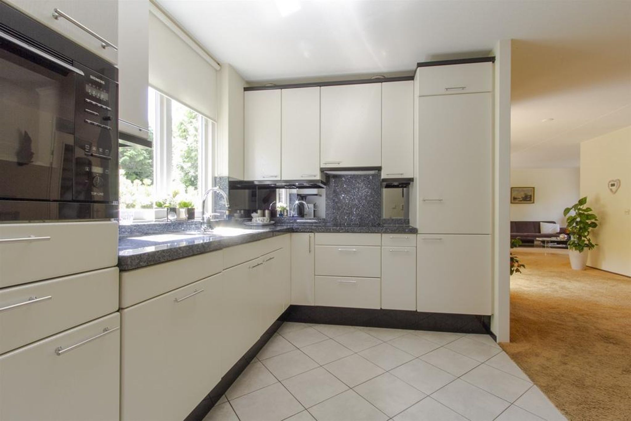 De inbouwkeuken staat in een L-opstelling en is samengesteld met lichte tint fronten gecombineerd met een donker granieten werkblad met waterkering en deels granieten achterwand en geïntegreerde RVS spoelbak met spoelgedeelte en keukenkraan. Het raamkozijn biedt zicht op de heerlijk zonnige achtertuin. In de keuken is de vloer afgewerkt met vloertegels. De keuken is ingericht met een SIEMENS oven-magnetroncombinatie, een ATAG inductiekookplaat, een vlakscherm afzuiging, een SIEMENS geïntegreerde vaatwasmachine en een hoge SIEMENS inbouw koel-vrieskast met drie vriesladen. Veel bergruimte treft u in de onderkasten, carrouselkast en de bovenkasten.