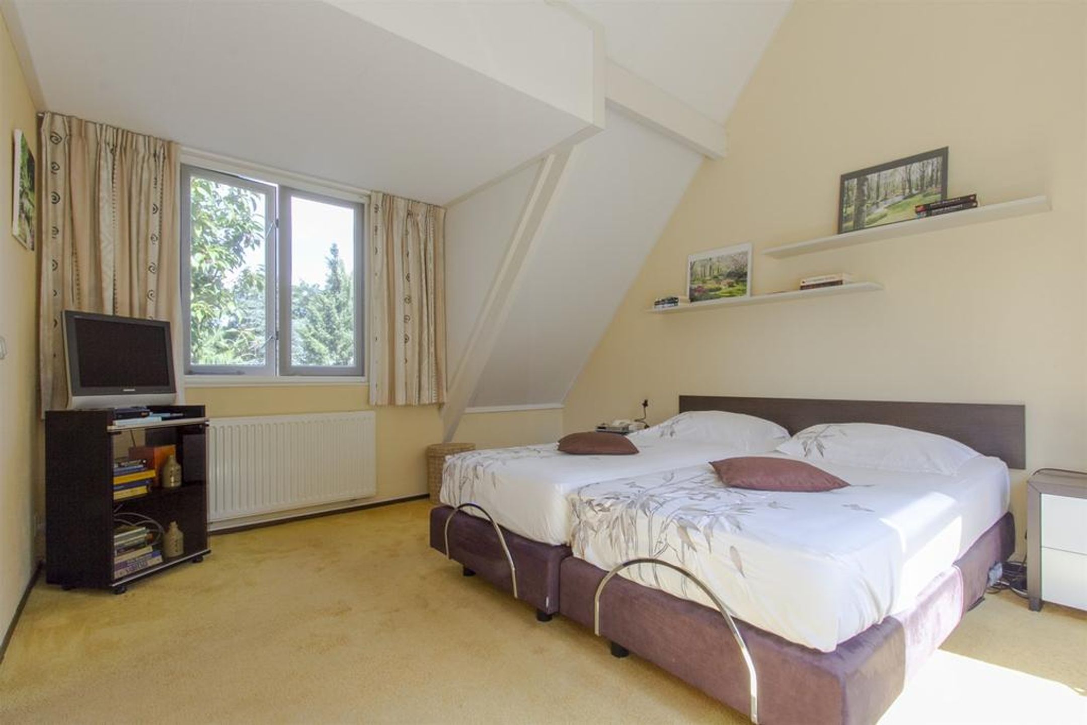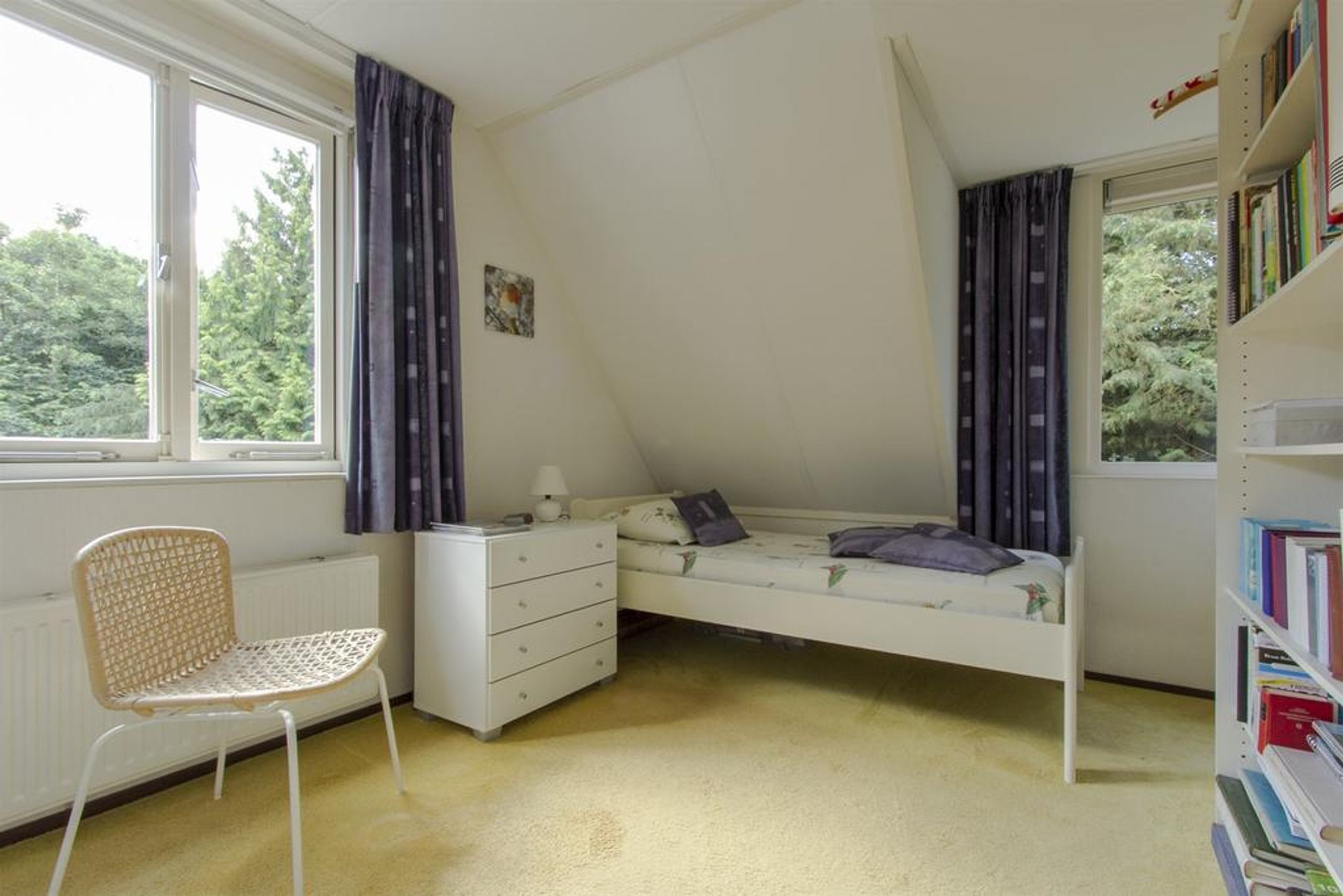 Deze kamer heeft een speelse uitstraling wat te danken is aan de hoog oplopende dakconstructie, de dakkapel aan de voorzijde en de grote raampartij aan de achterzijde met loopdeur naar het dakterras. Op de vloer ligt zachte vloerbedekking en de wanden zijn afgewerkt met fijne structuurverf. Het raam in de achtergevel met daarnaast de loopdeur geven u een fantastisch weids uitzicht over uw tuin en boswal. Het teveel aan zonlicht kunt u buitenhouden middels de screens aan de buitenzijde.