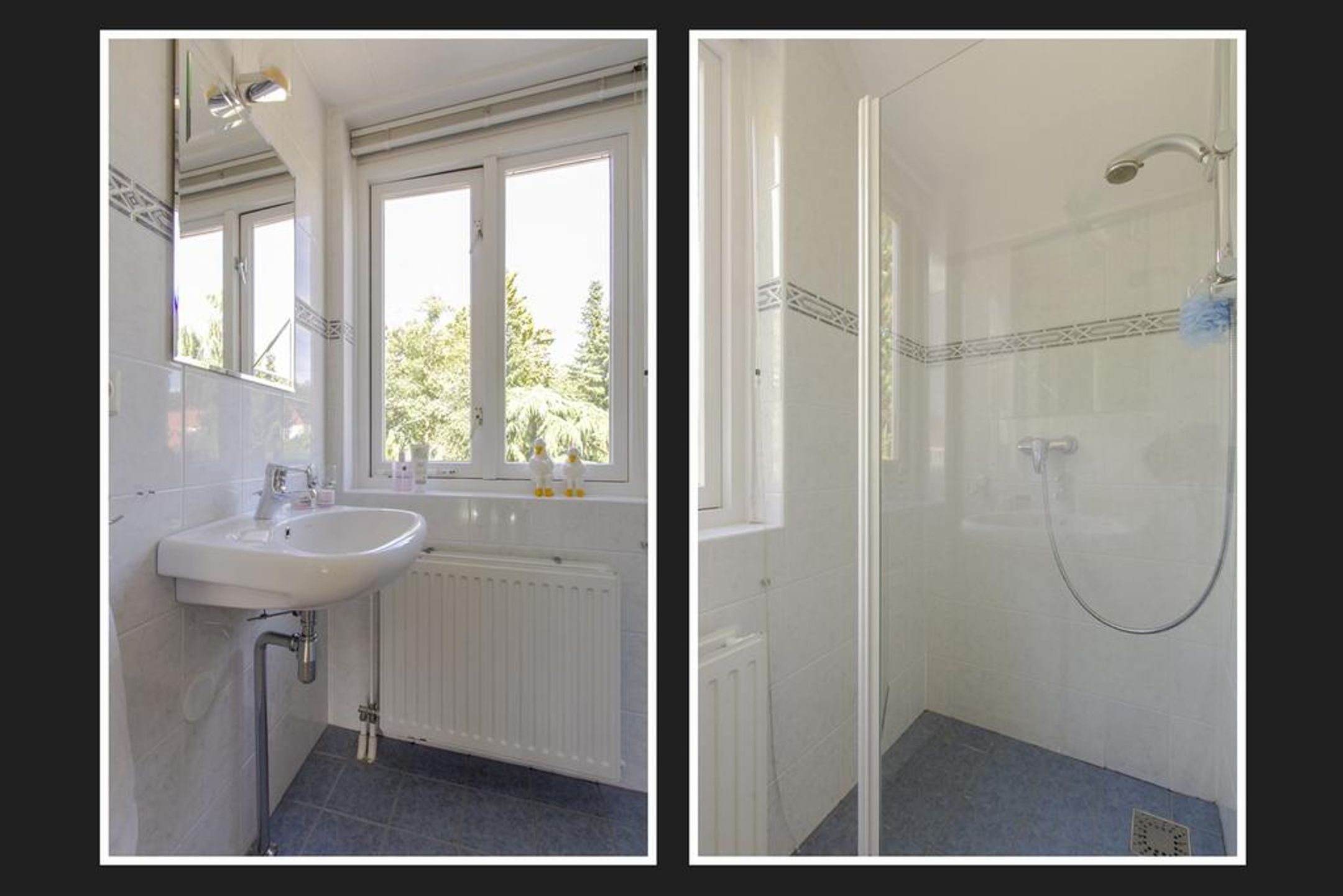 De 2e extra gastenbadkamer is geheel betegeld en voorzien van een ruime douchehoek met hardglazen harmonicadeur. De ruimte is verwarmd en het raam in de voorgevel draagt bij aan eventueel wenselijke ventilatie. Tevens is hier een wastafel met spiegel geplaatst.