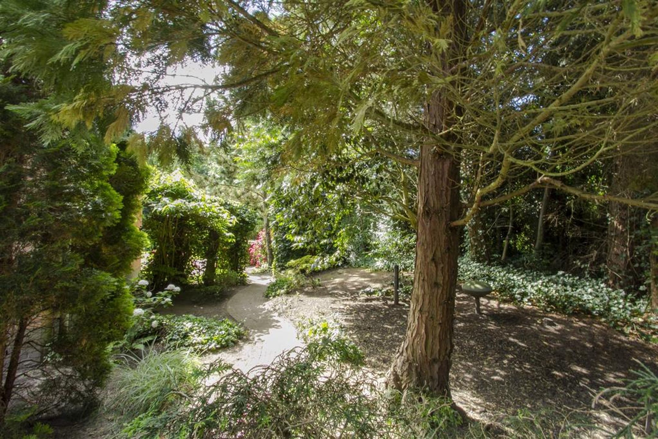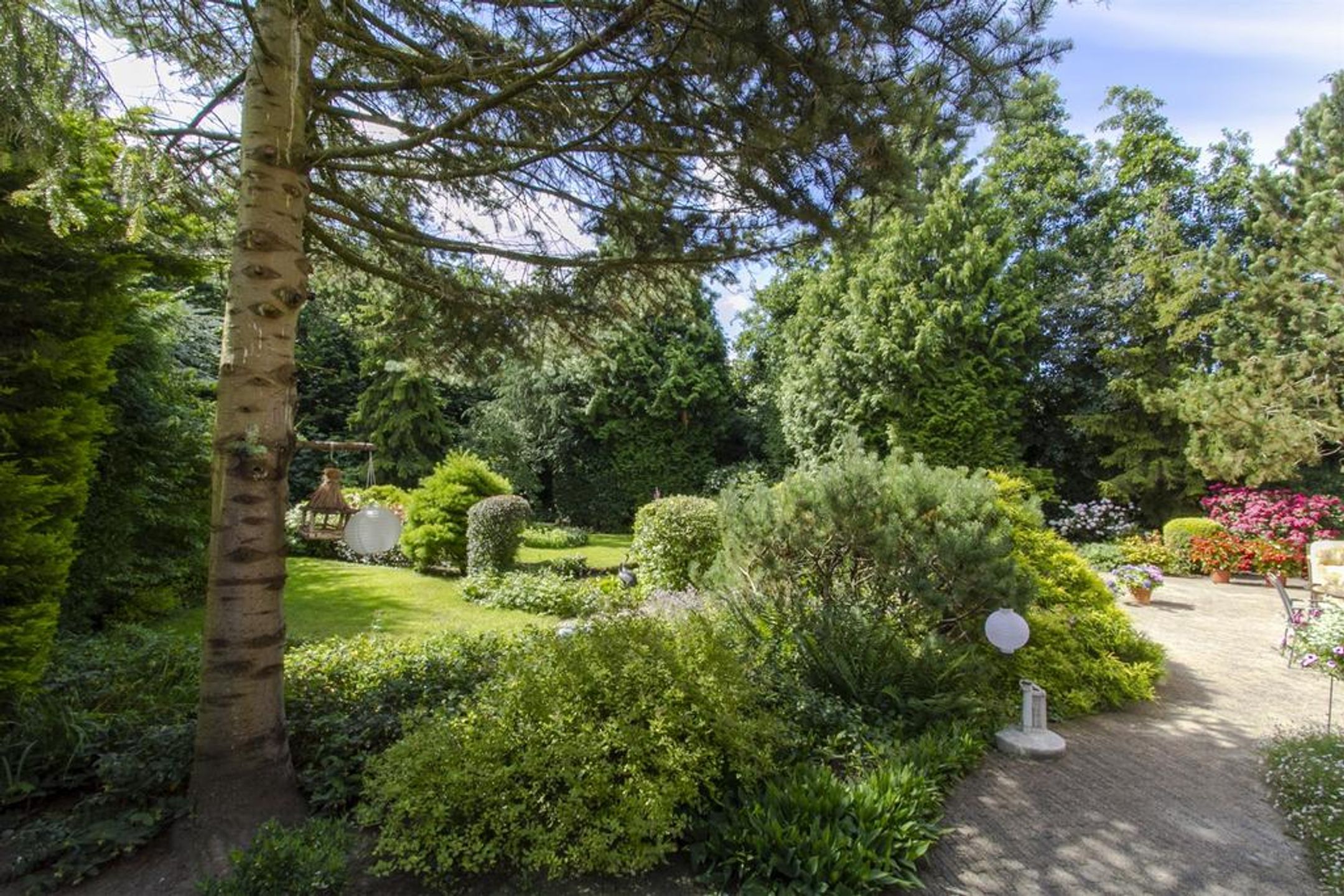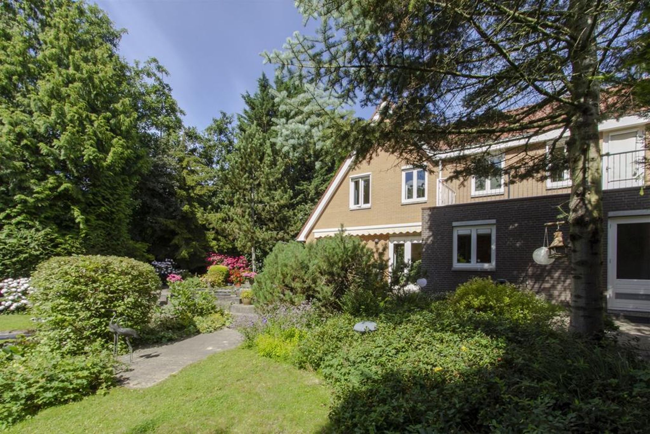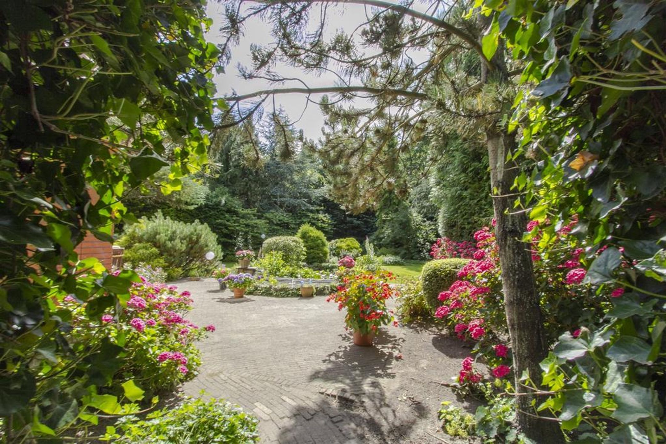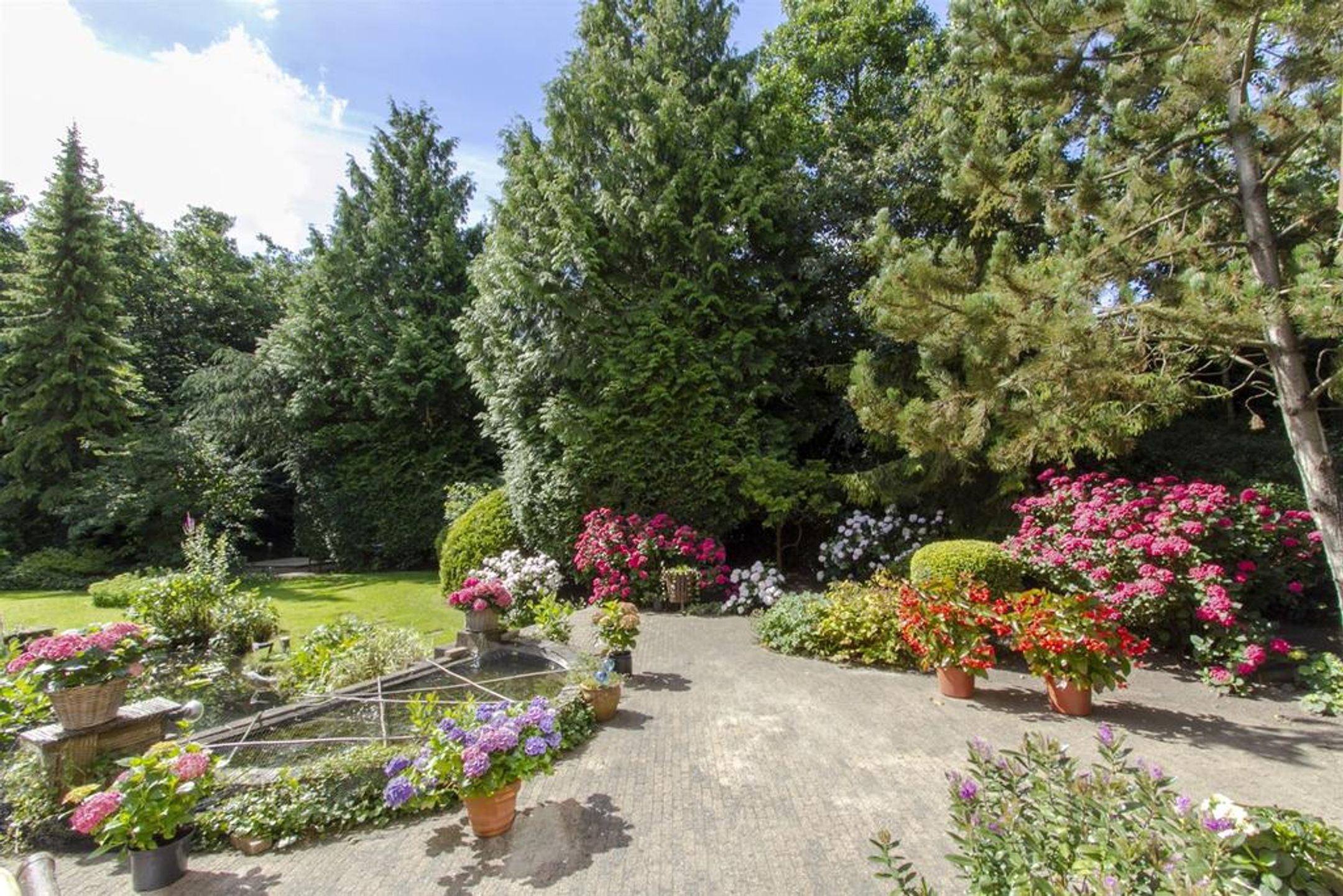 Aan de voorzijde, t.p.v. de garage, beschikt u over een ruime oprit alwaar u 3 auto's kunt parkeren. Diverse borders zijn gevuld met volgroeide bomen en struiken. Tevens treft u hier, en aan de achterzijde, een buitenkraan. Een pad van sierbestrating leidt u via de zijtuin naar het zonovergoten 'privé park' aan de achterzijde. Deze zeer royale en vooral zonnige tuin aan de achterzijde is ideaal gelegen op het zuiden.