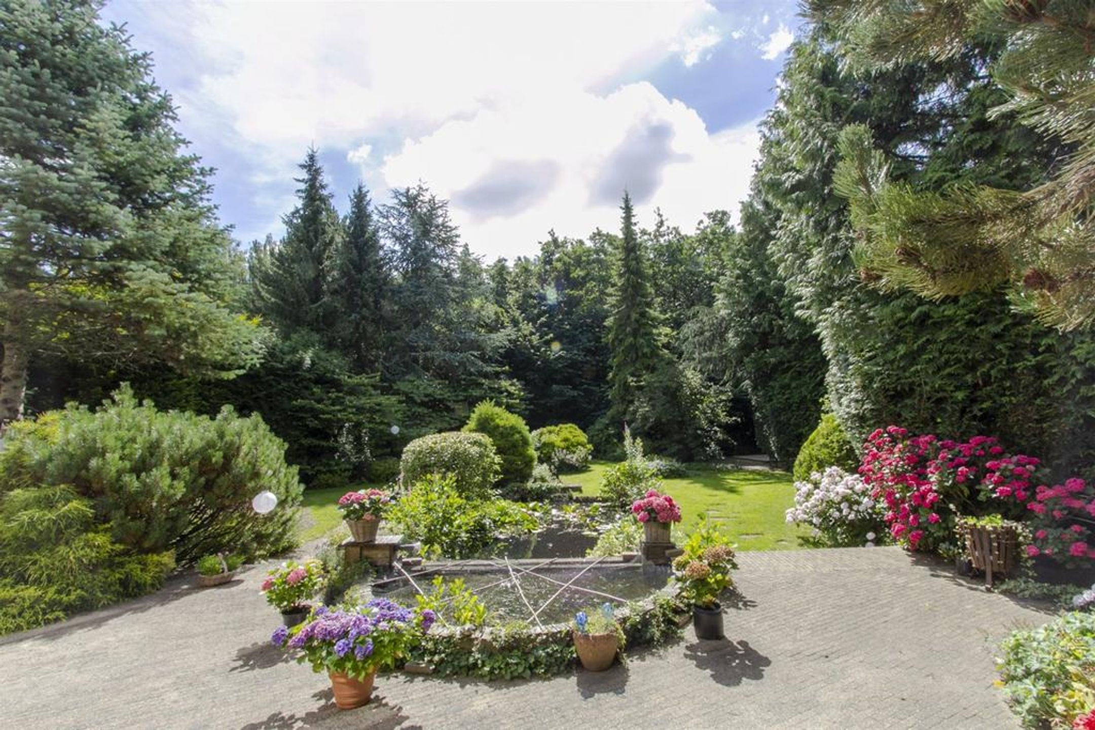 Voorts is de tuin ingericht met een groot gazon omringd door diverse borders en aansluitend de fantastische volgroeide hout- en boswallen aan de achter- én zijkant. In het midden is een royale vijverpartij aangelegd verdeeld over twee niveaus.