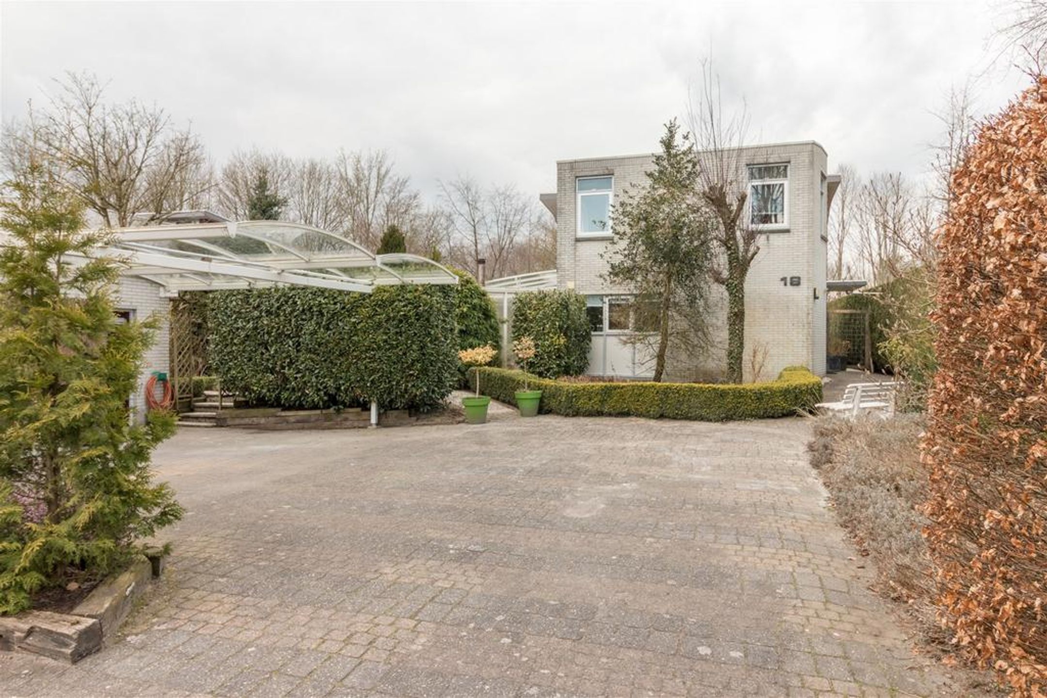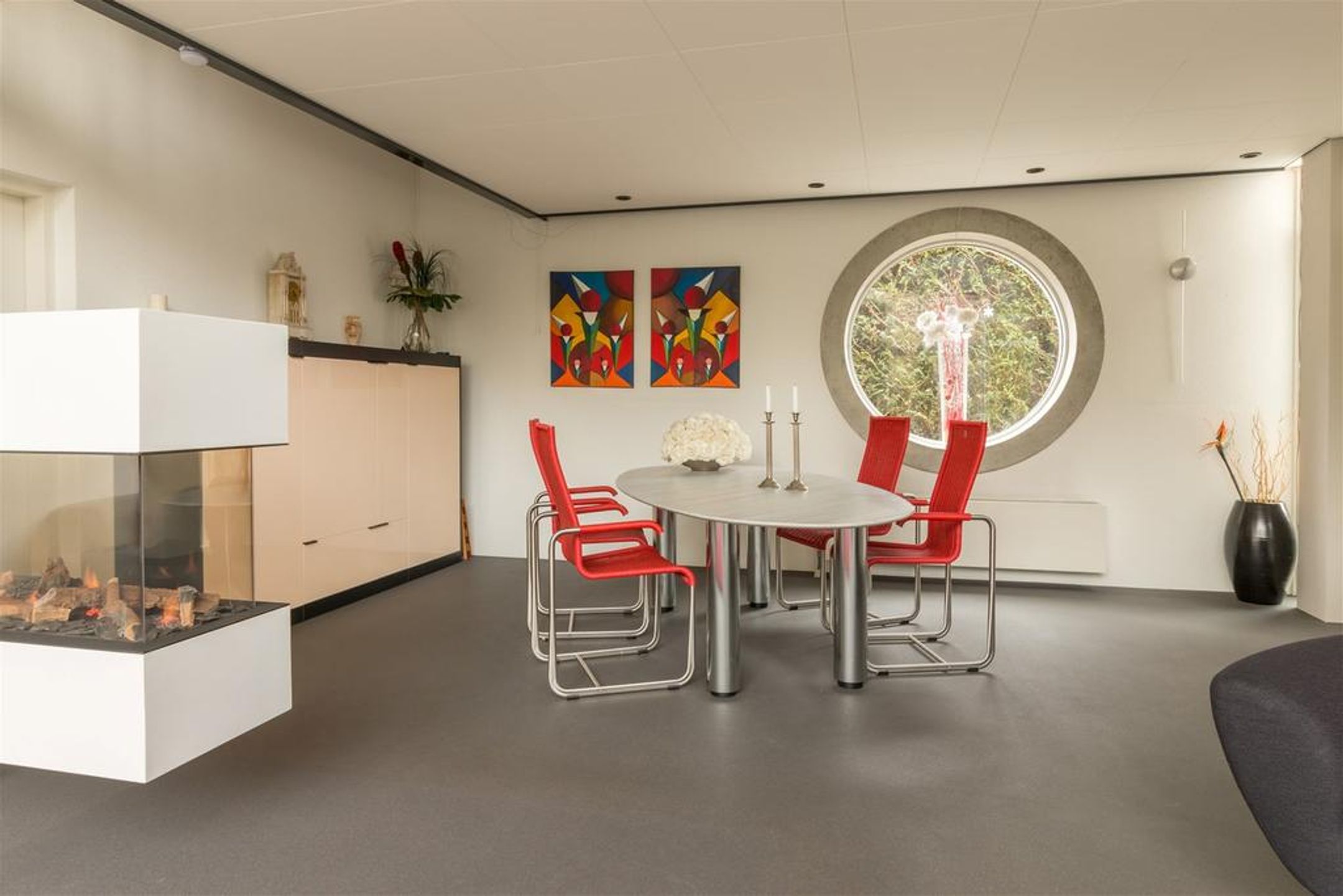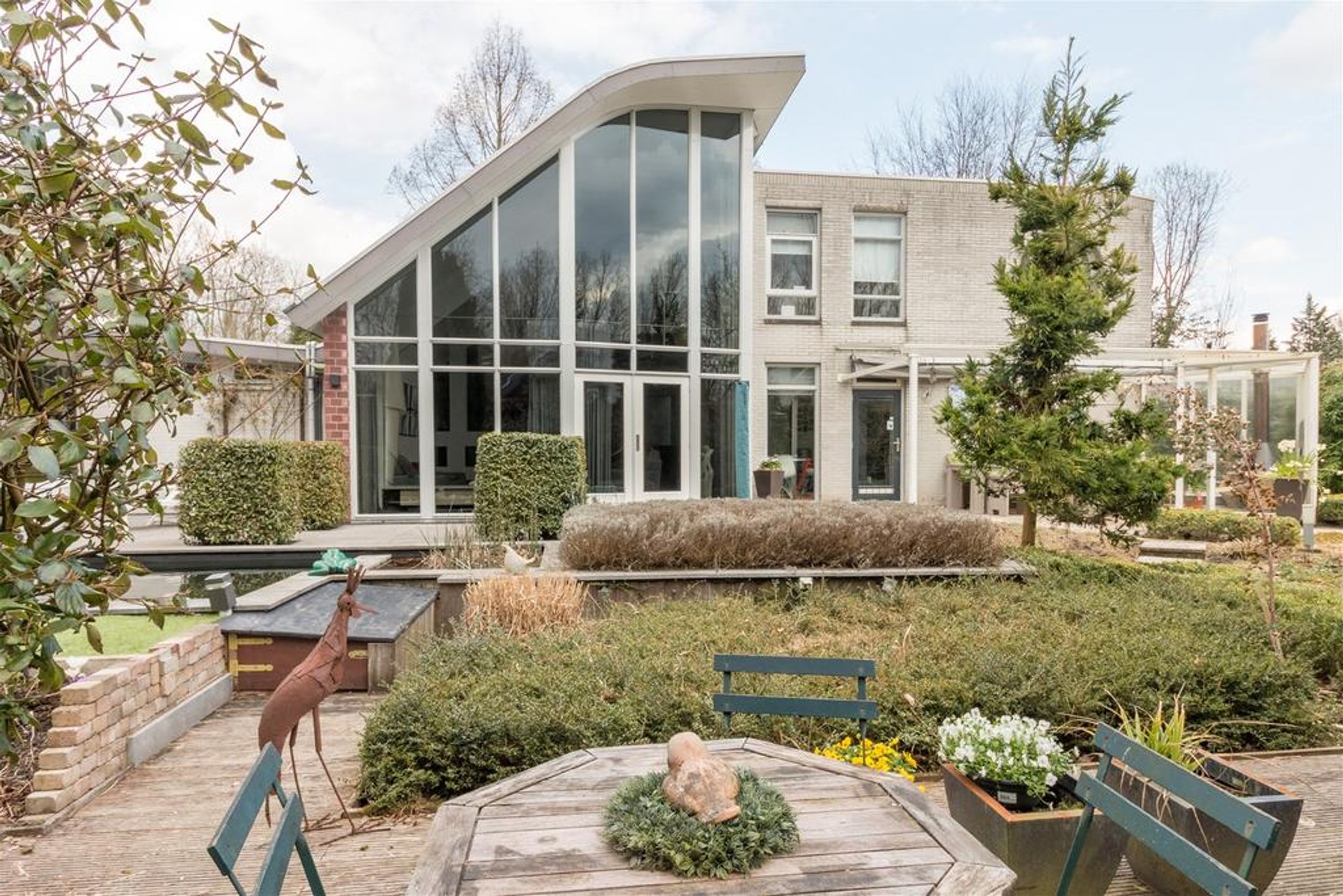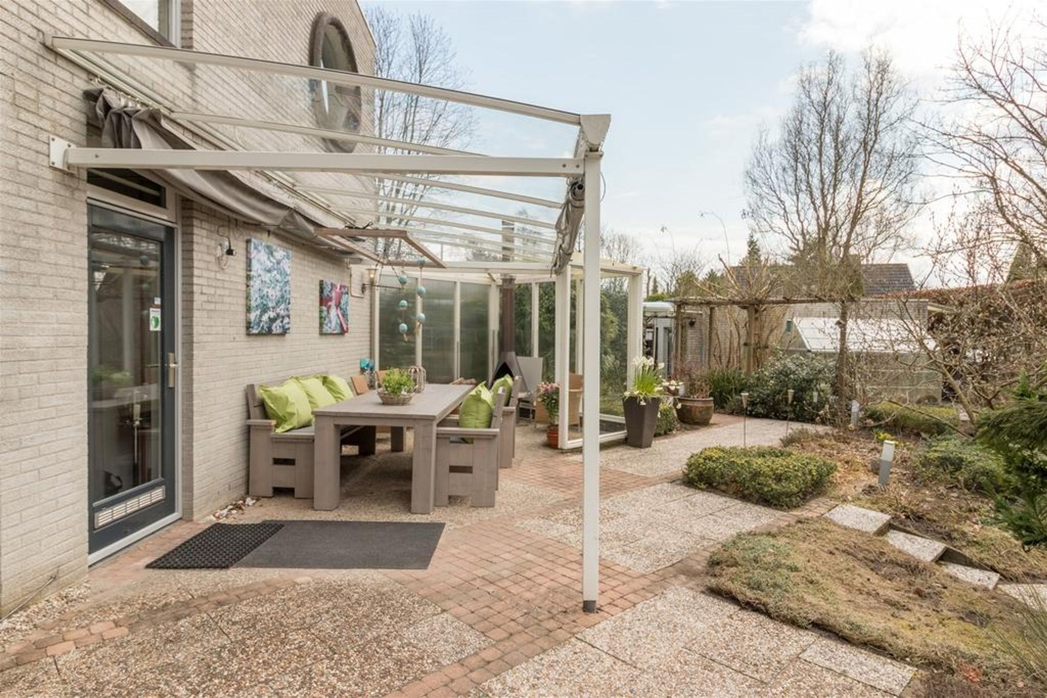 Onder architectuur aangelegde siertuin en natuurlijke zwemvijver met pomp. Aangrenzende boswal in eigendom grenzend aan het achtergelegen bos. De terrassen aan de zijkant zijn deels voorzien van overkappingen met verlichting.