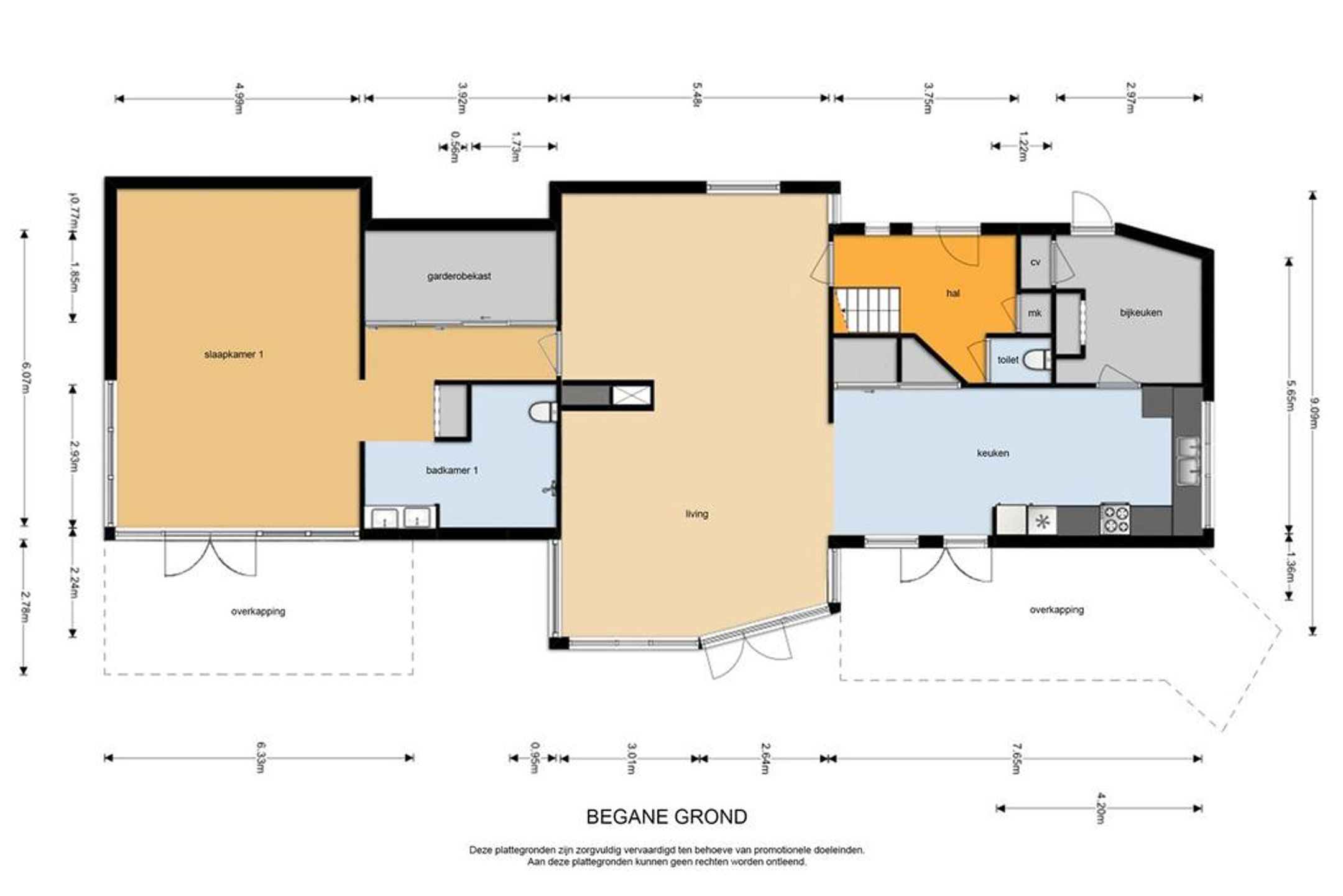 Ruime oprit en toegang tot de zijentree met luifel, voordeur met zijraam, ruime hal, meterkast, toilet, vaste trap naar de verdieping, toegang tot de ruime en lichte tuingerichte living met doorloop naar de open keuken.
