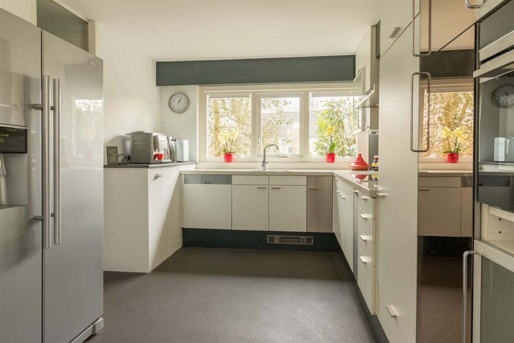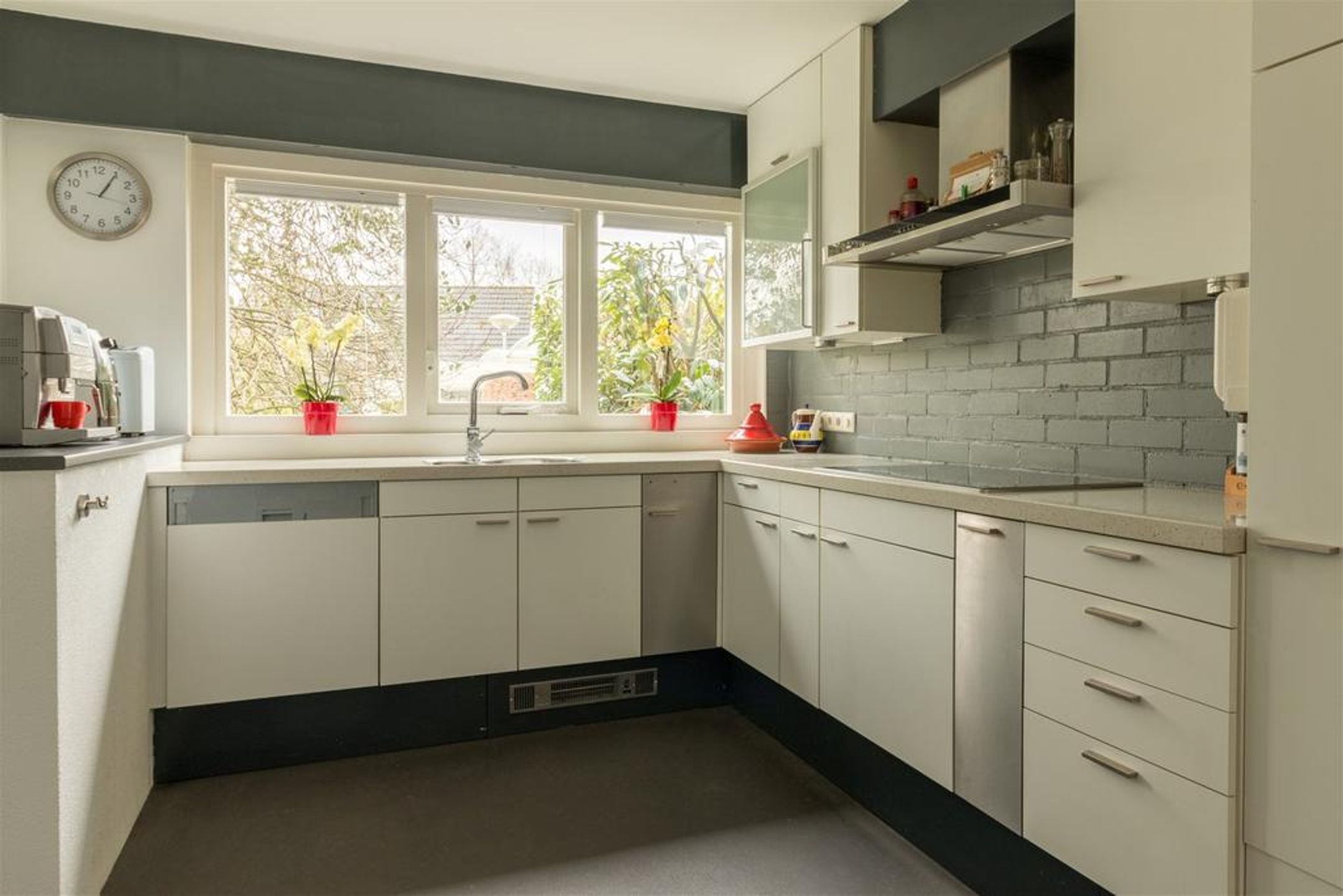 De keuken is gelegen aan de voorzijde van de woning en is ingedeeld met een complete royale hoekopstelling en zitgedeelte met schuifdeur kasten in gebruik als TV hoek. Naast de keuken is de ruime bijkeuken gelegen; deze is ingedeeld met werkkast, grote kasten met schuifdeuren en aparte buitendeur naar de voortuin.
