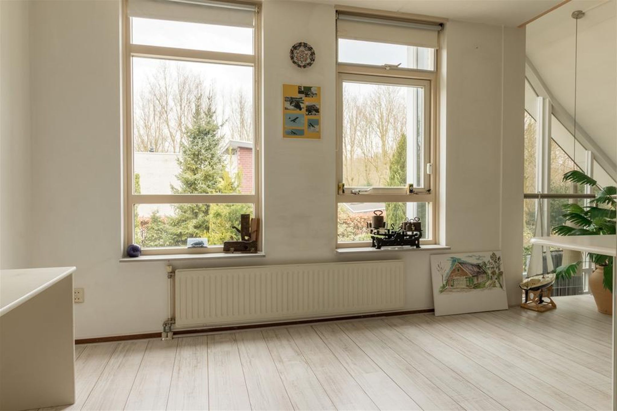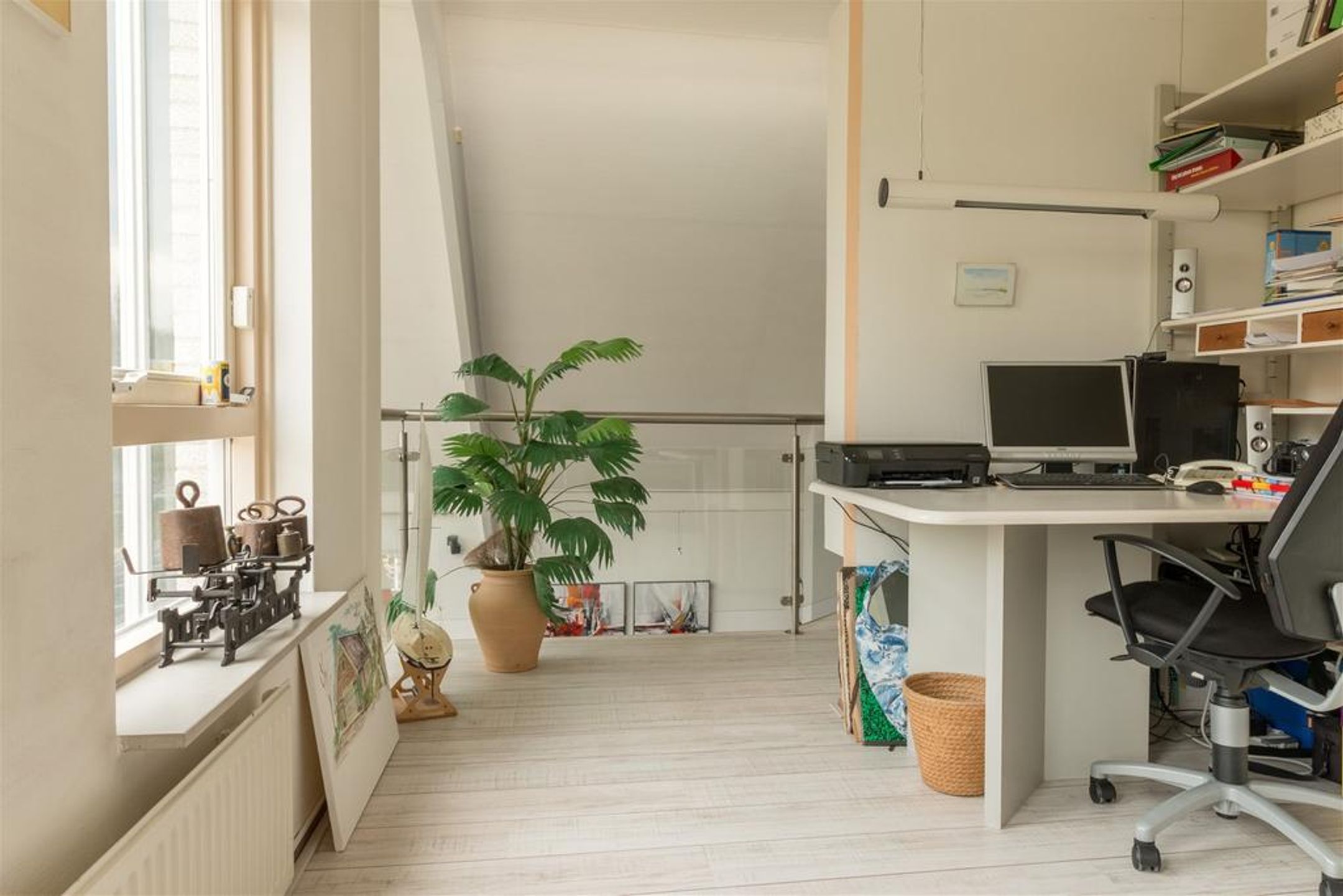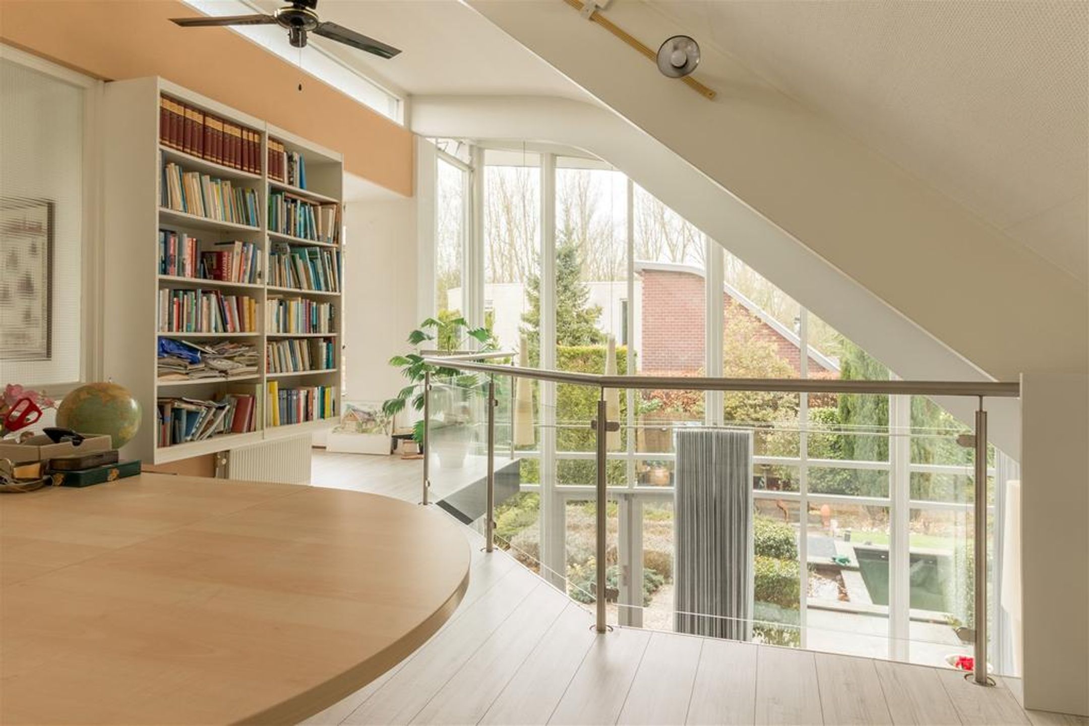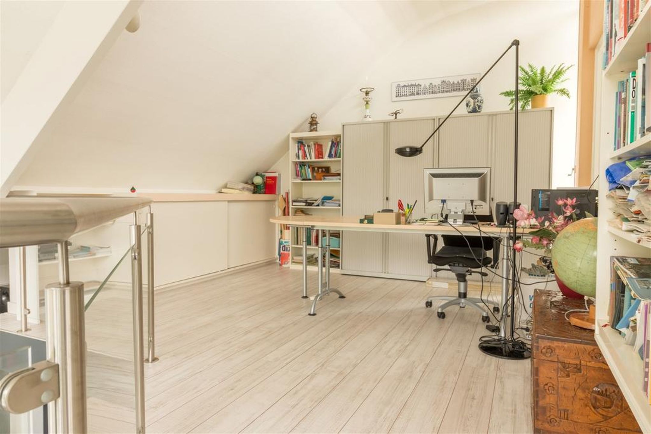 Overloop met separaat toilet, badkamer met ligbad, aparte douchecabine, wastafel en betegeld tot plafond, vier in grootte variërende kamers, waarvan 3 slaapkamers. De entresol (vierde kamer) heeft een vide met rvs design balustrade en zicht op de onder gelegen living en door de grote gevel vullende raampartij zicht op de heerlijke tuin. Deze ruimte is ingericht als studeer- werkkamer met de nodige kastruimte.