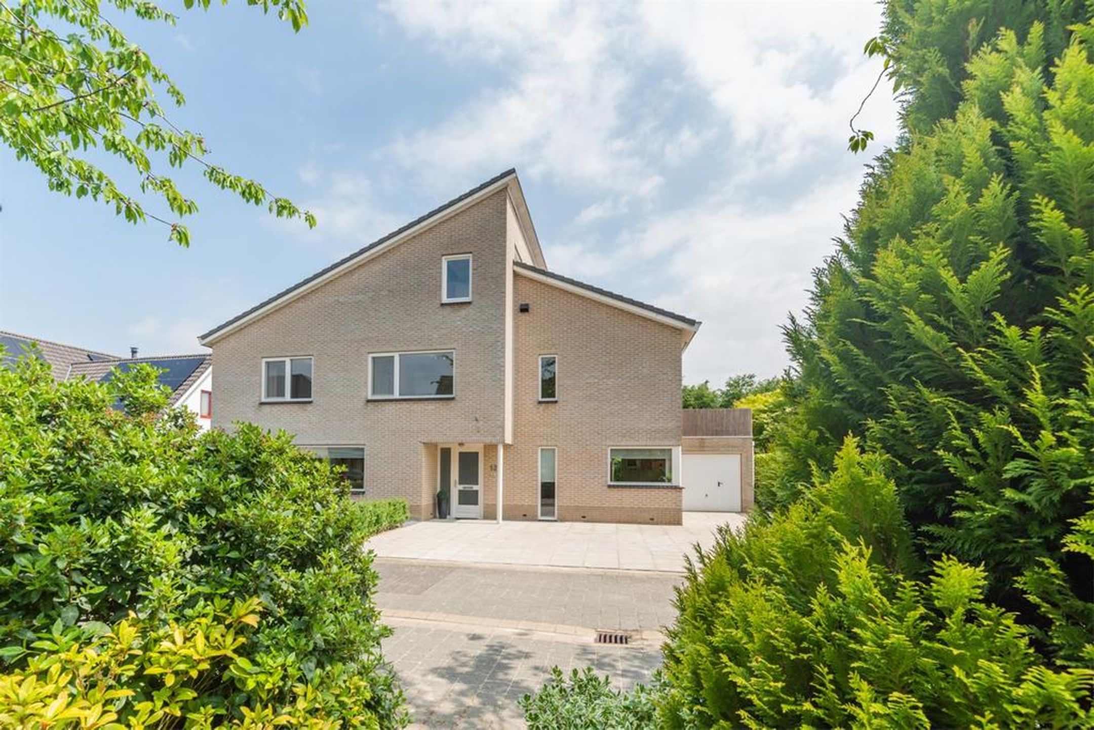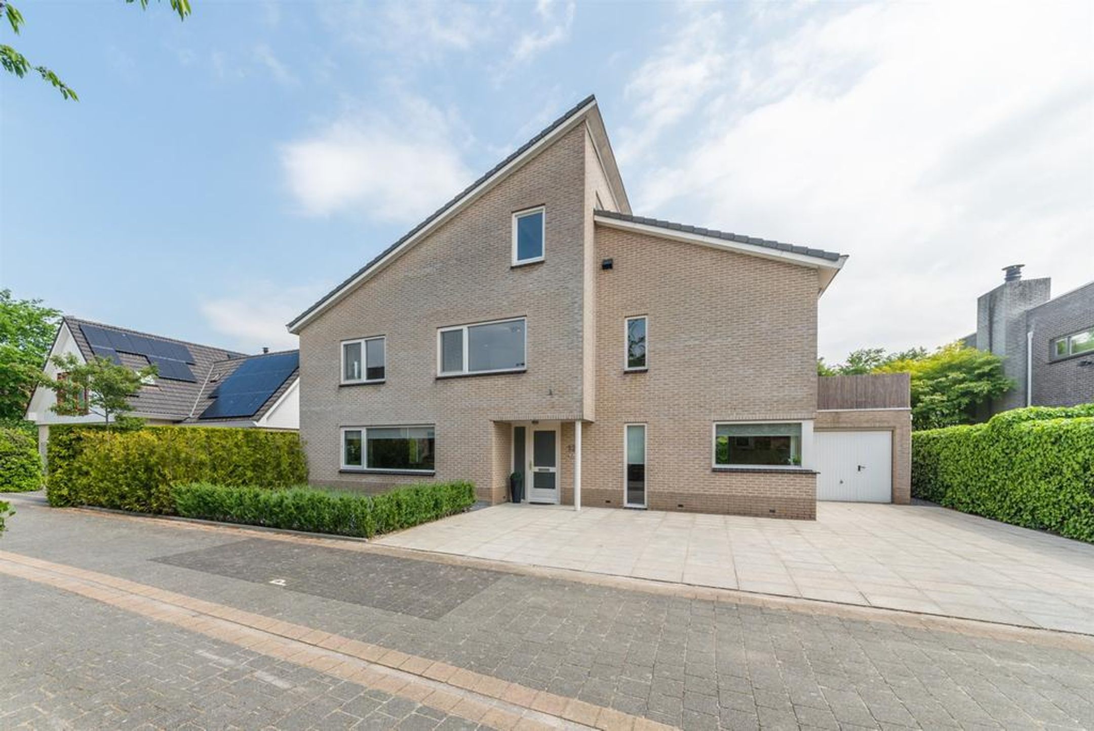 De woning kenmerkt zich door de handgevormde, lichte metselstenen, de donkere dakpannen en de overdekte entree. De oprit biedt plek aan meerdere auto's. Rechts van de villa bevindt zich de ruime garage voorzien van sectional garagedeur met loopdeur. De voortuin is ingericht met tegels, siergrind, groene hagen en siergrassen.