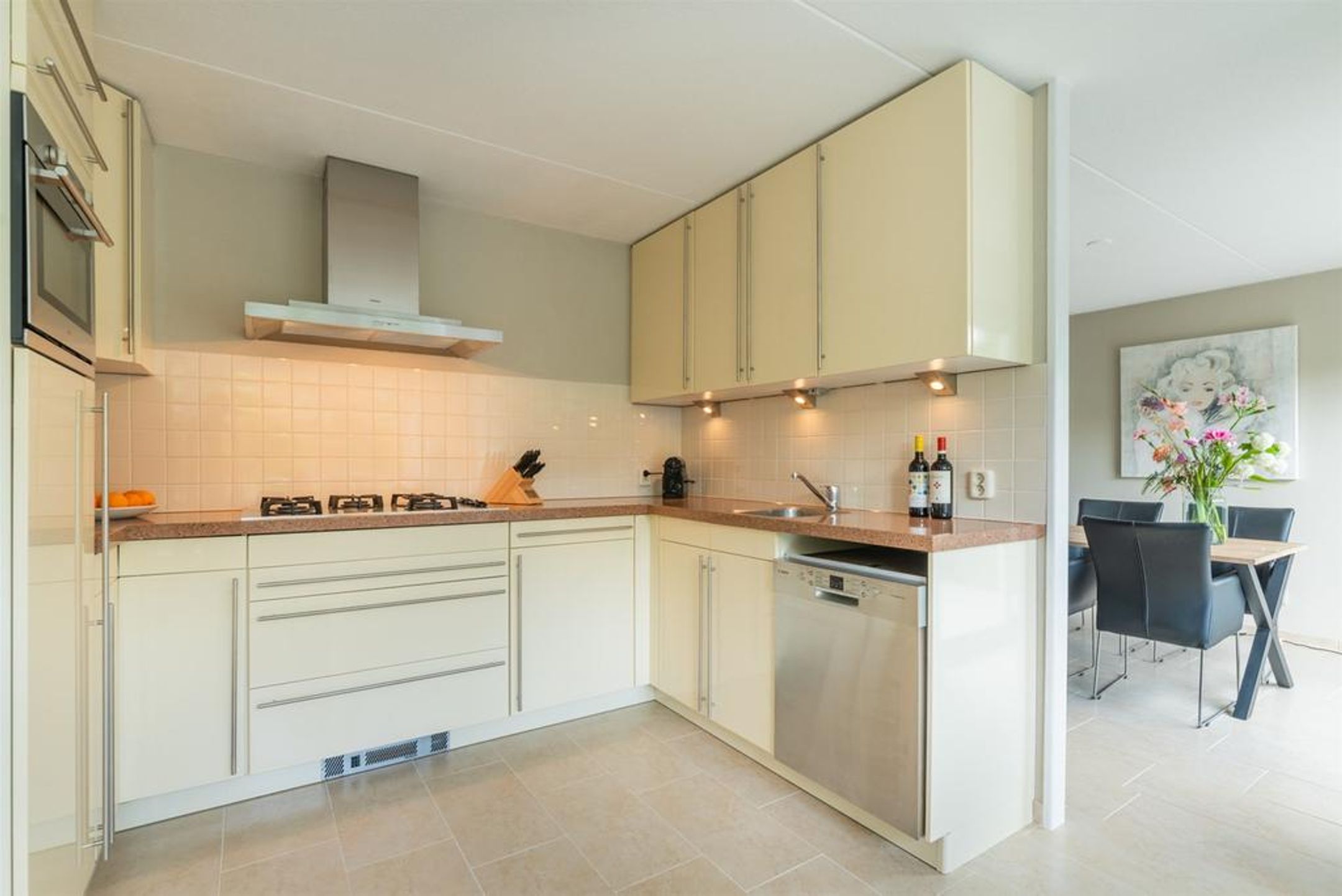 De woonkeuken is aan de achterzijde van de woning, naast de eetkamer gesitueerd. De keuken staat opgesteld in een U-opstelling en is uitgevoerd met vanille tint fronten gecombineerd met een Caesar Stone werkblad voorzien van waterkering. U beschikt over een oven, een SIEMENS gaskookplaat, een SIEMENS afzuigunit, een inbouwkoelkast, een BOSCH vaatwasautomaat en kickspace plintverwarming. Een groot raam biedt zicht op de zonnige achtertuin. Er is voldoende ruimte voor het plaatsen van een tweede eethoek.