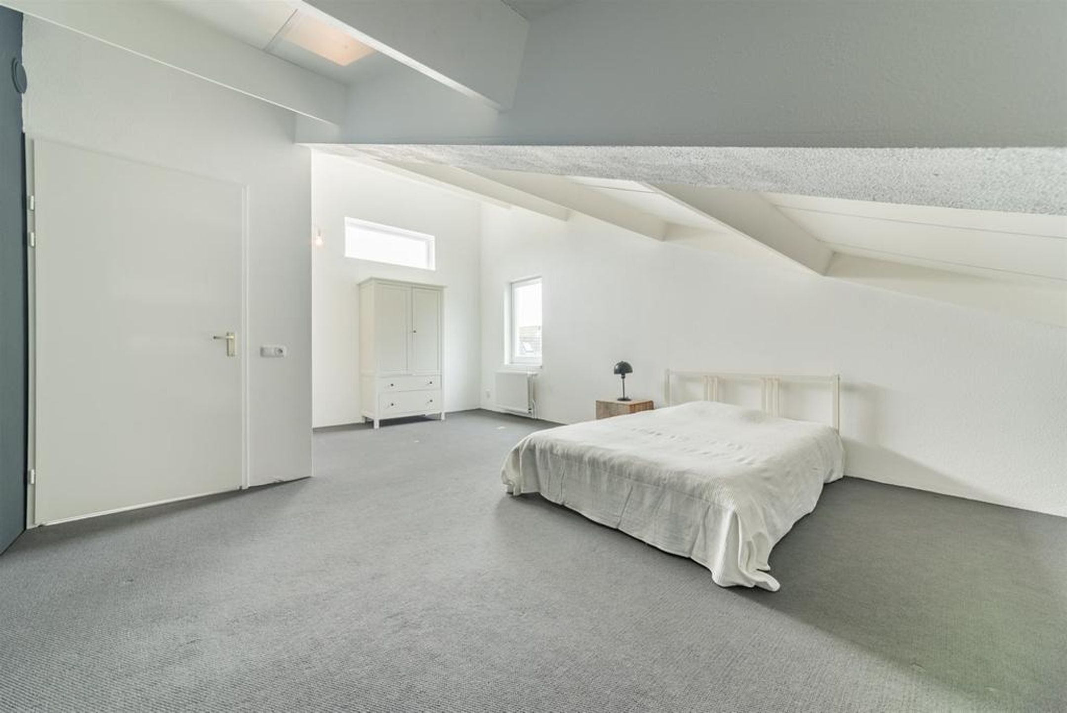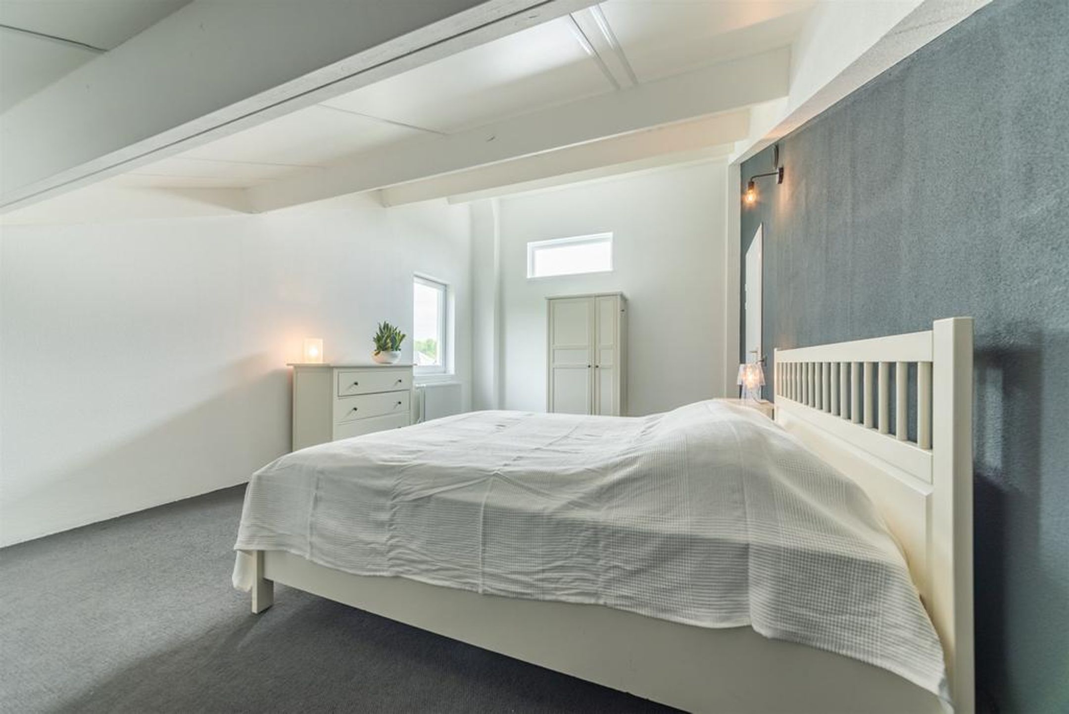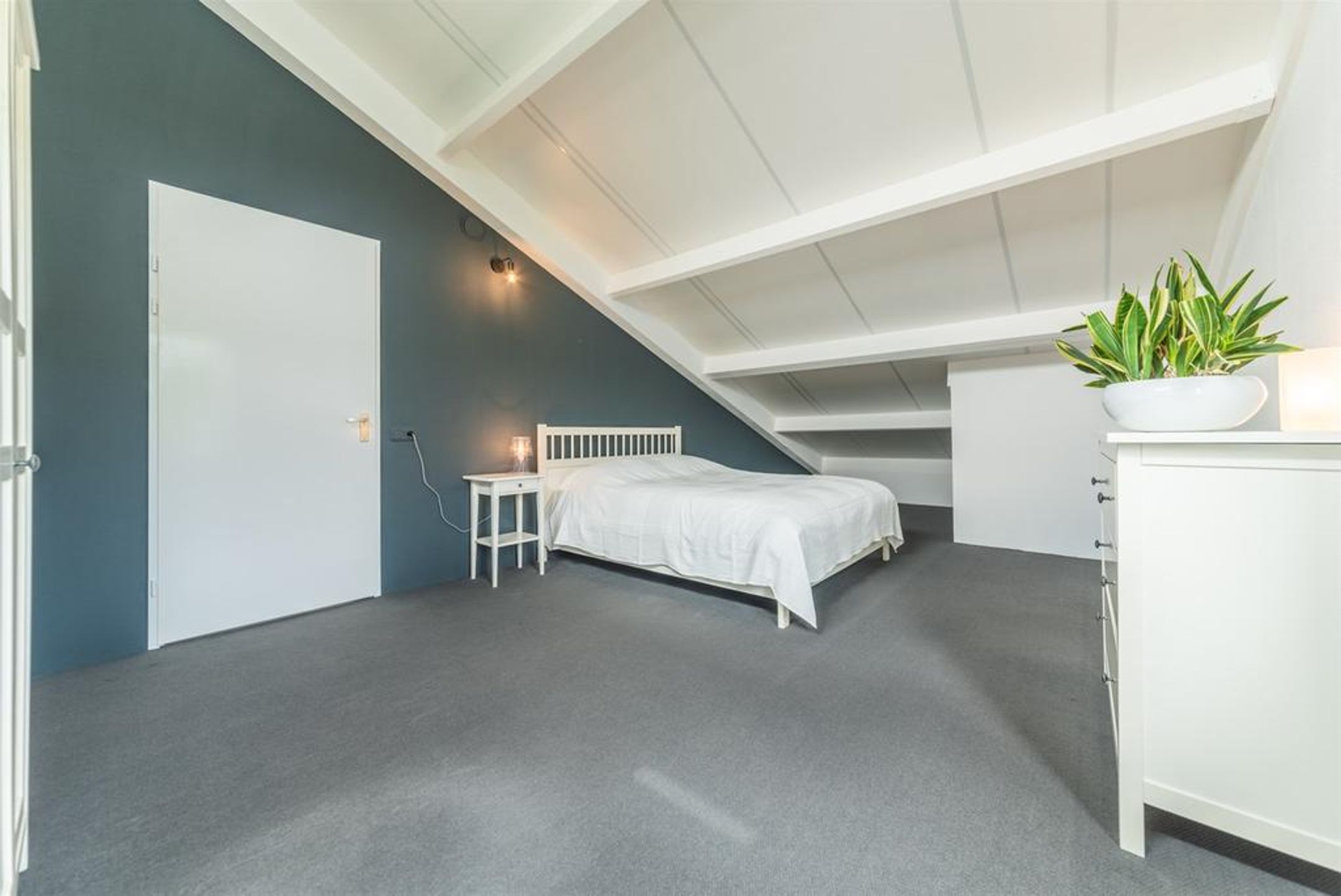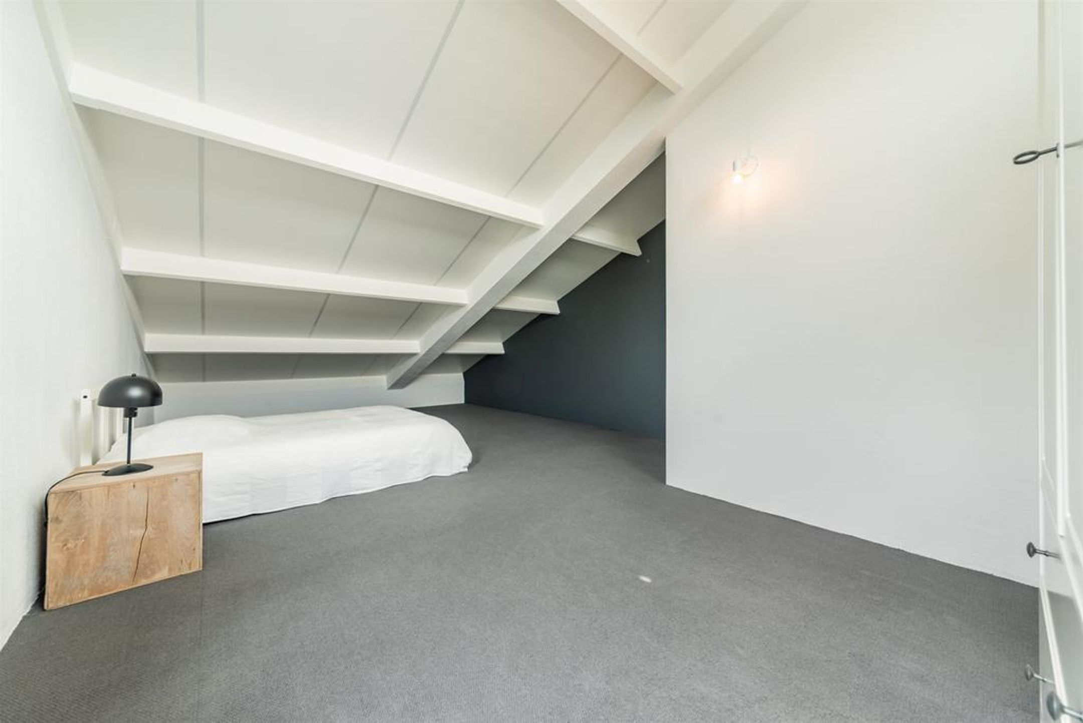 De twee ruime slaapkamers lijken extra groot dankzij het speels hoog oplopend plafond welke keurig zijn afgewerkt dankzij de witte plafondplaten en wit geschilderde balken.