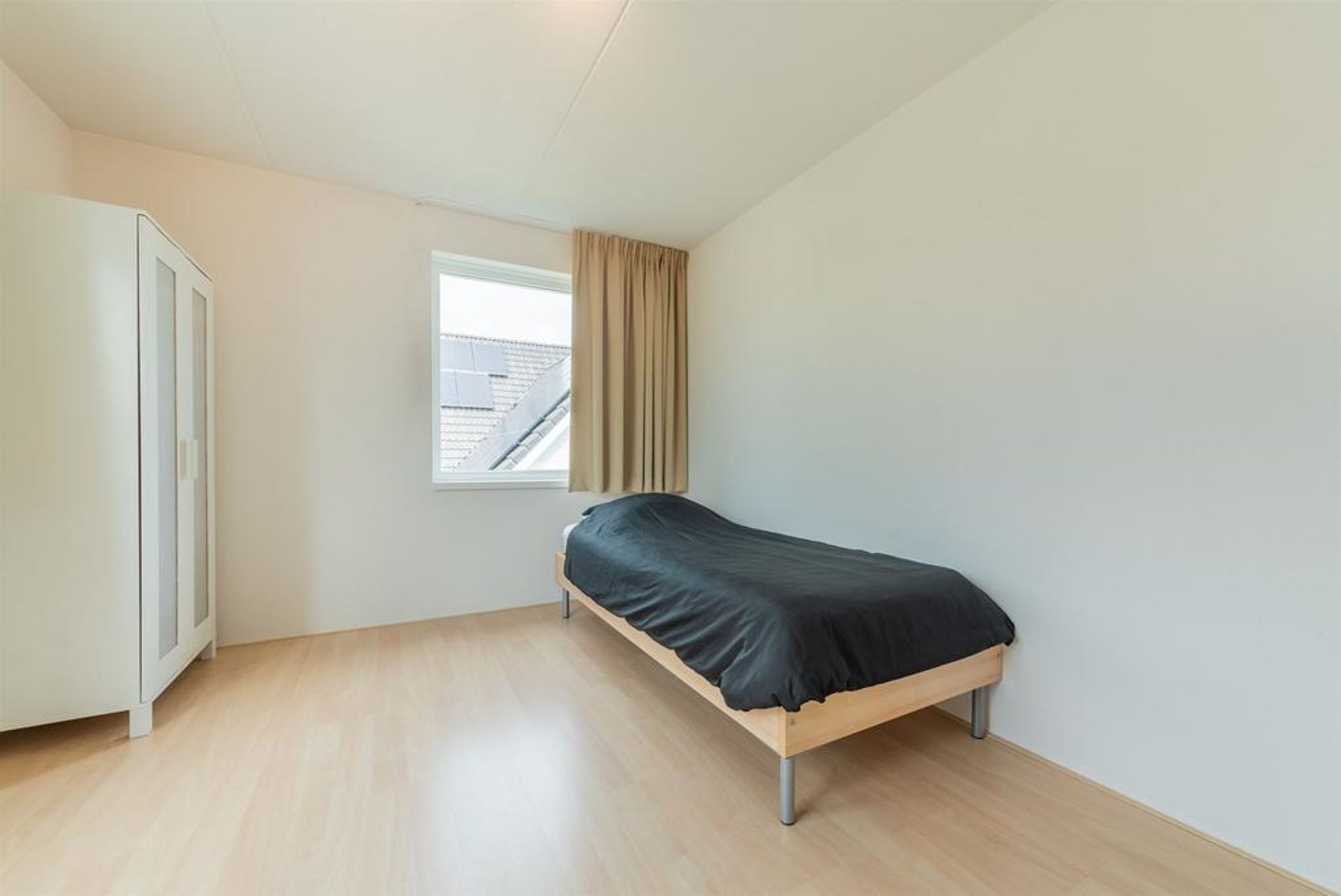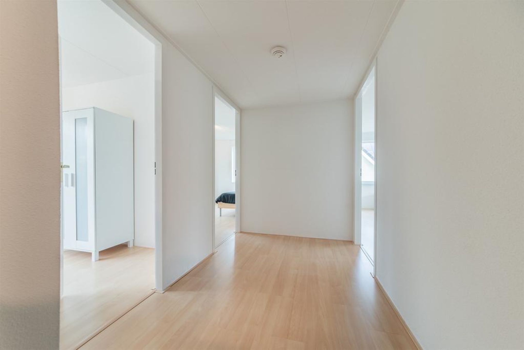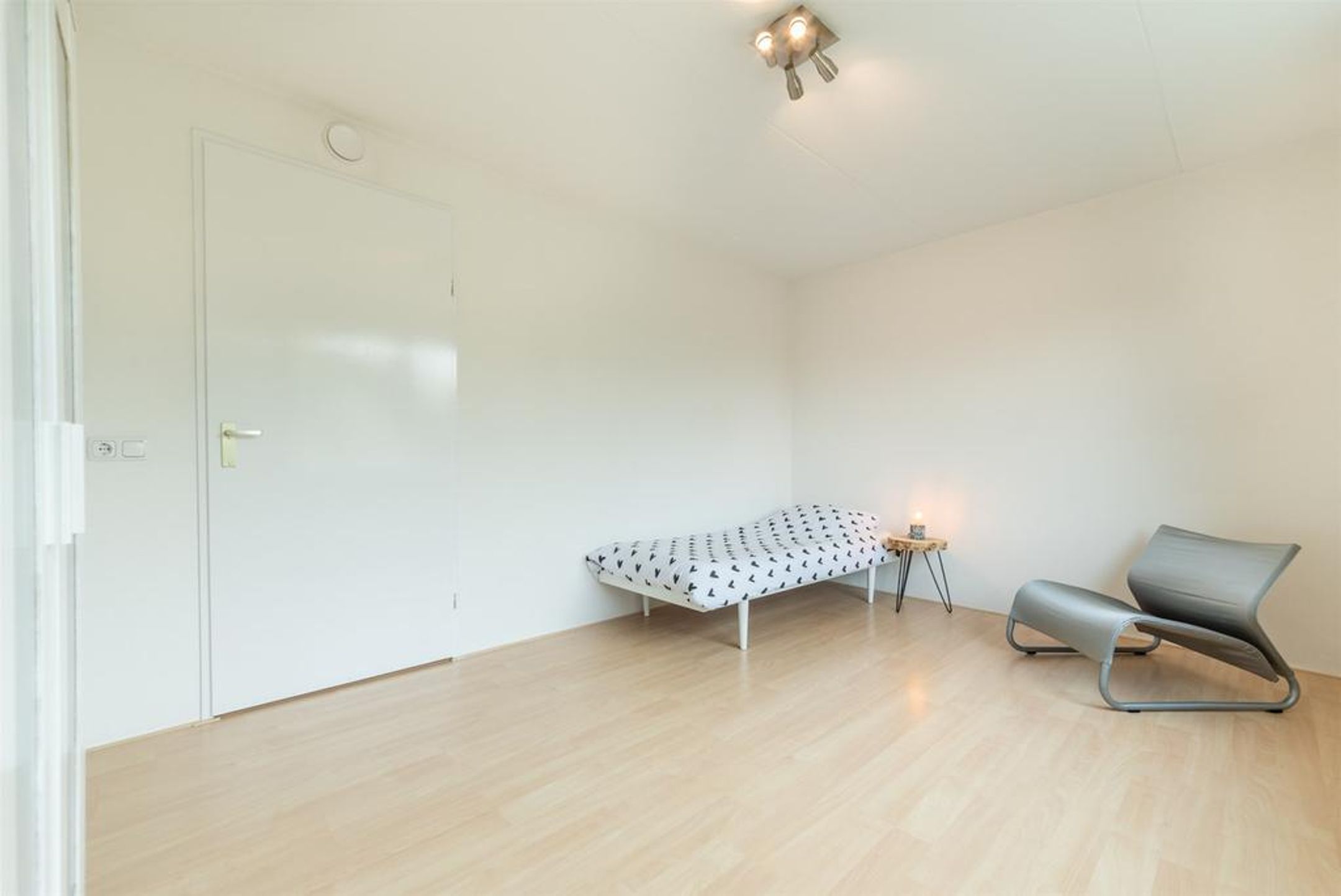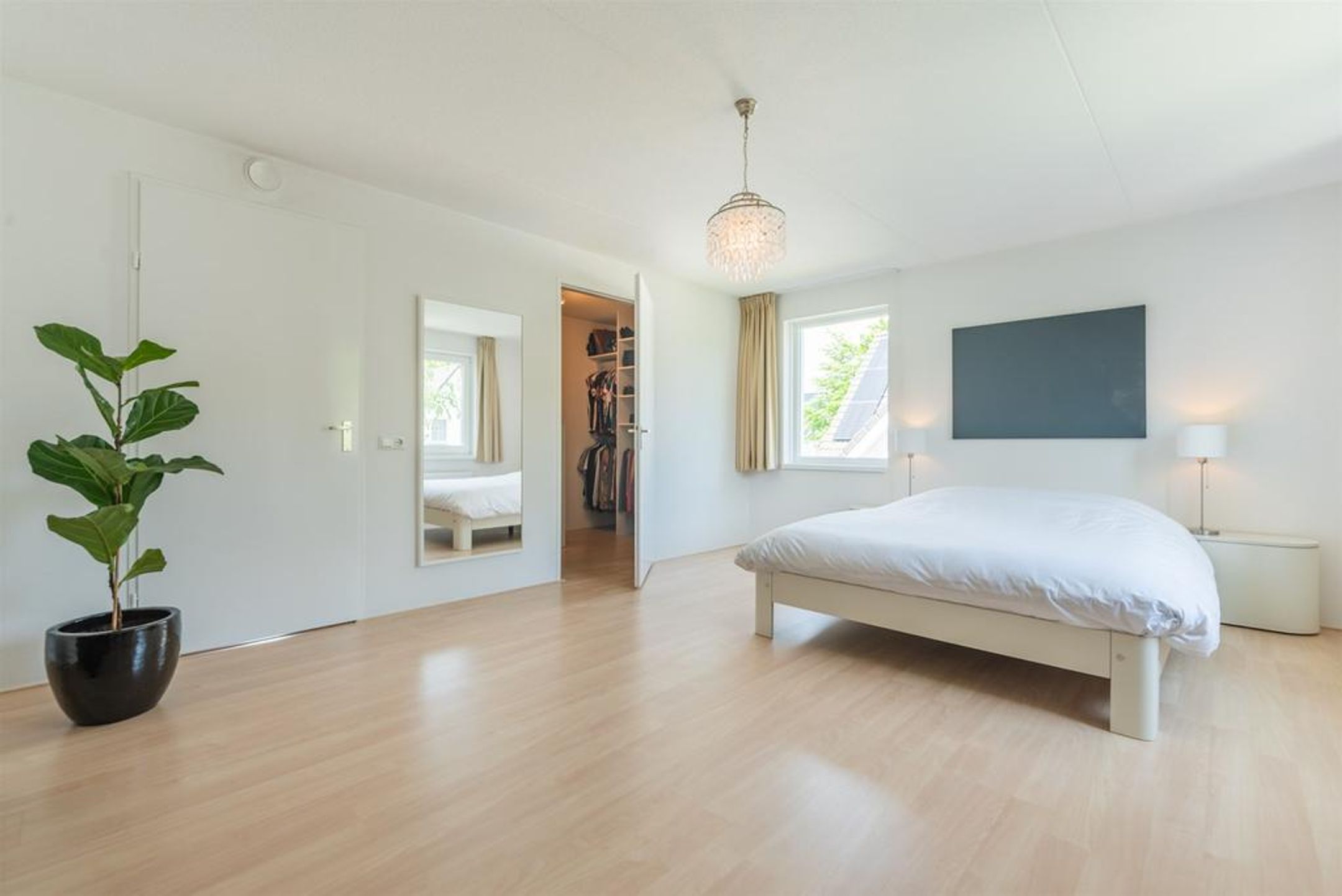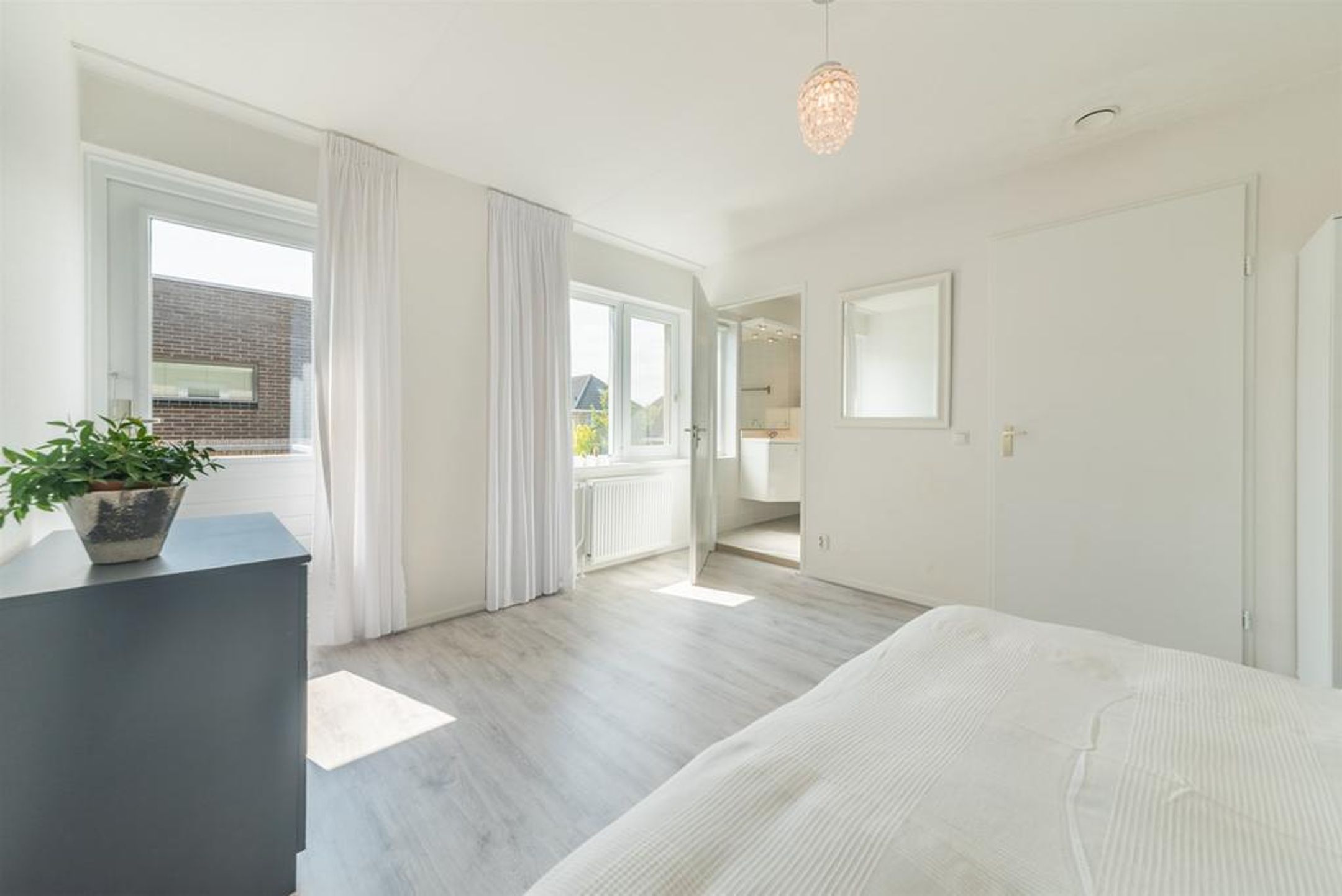 De twee ruime slaapkamers lijken extra groot dankzij het speels hoog oplopend plafond welke keurig zijn afgewerkt dankzij de witte plafondplaten en wit geschilderde balken.