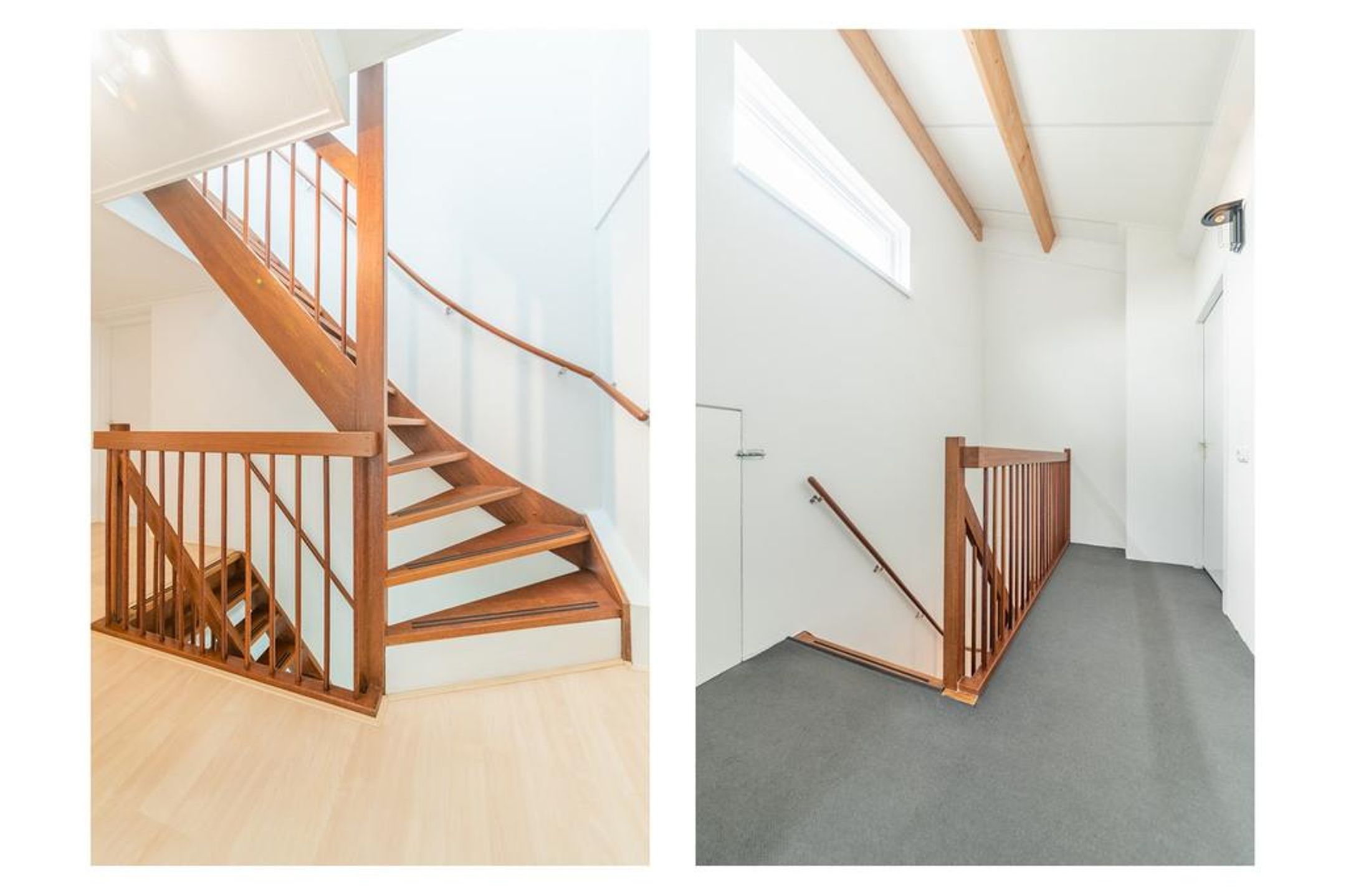 Over een hard houten open trap bereikt u de overloop op de verdieping welke toegang biedt tot de ruime slaapkamer en de aangrenzende badkamer. Op de vloer ligt laminaat doorlopend naar de slaapkamer. Een raam draagt zorg voor wenselijk daglicht.
