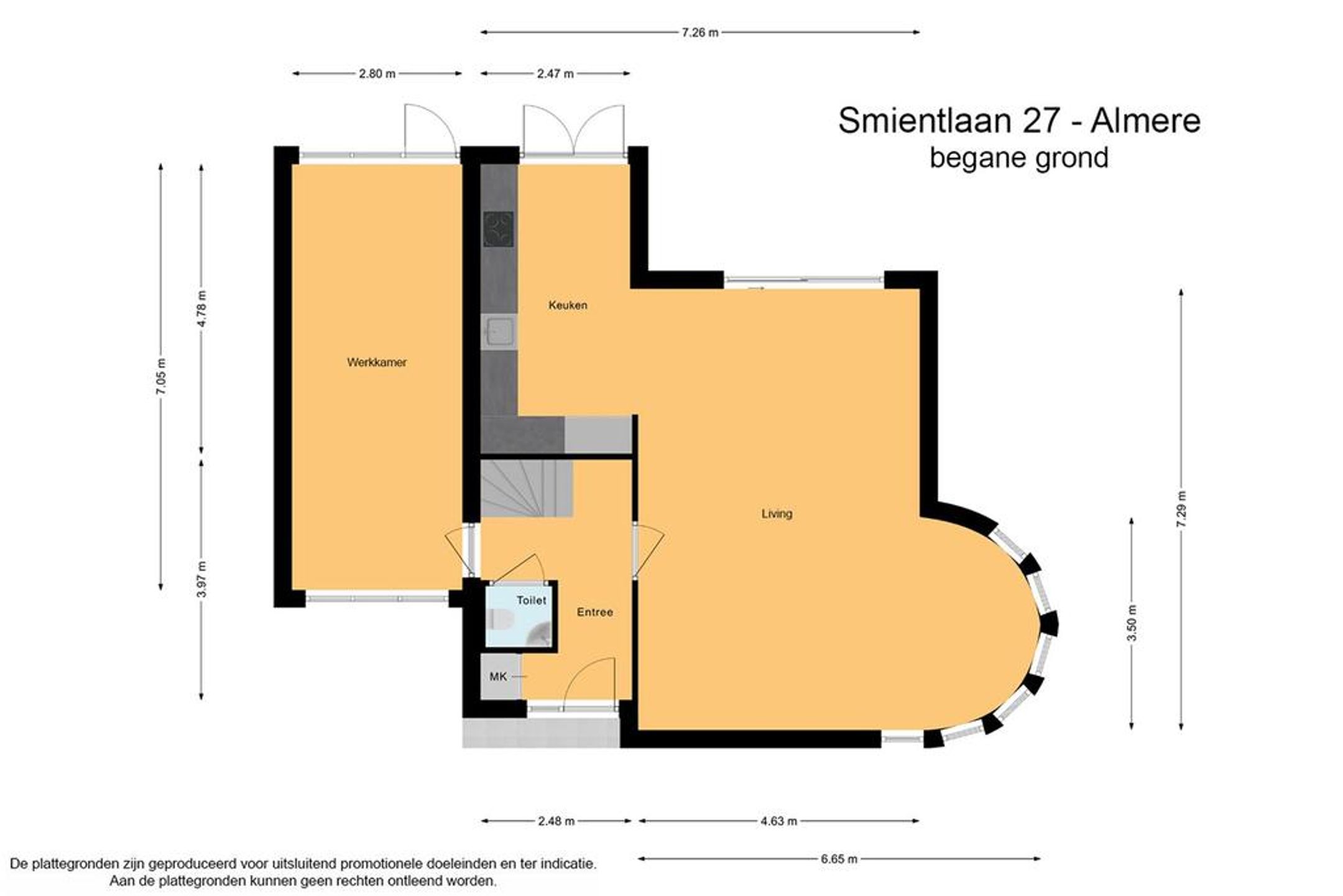Toegang tot meterkast, garderobe, toilet, living, wasruimte, kantoor en trapopgang