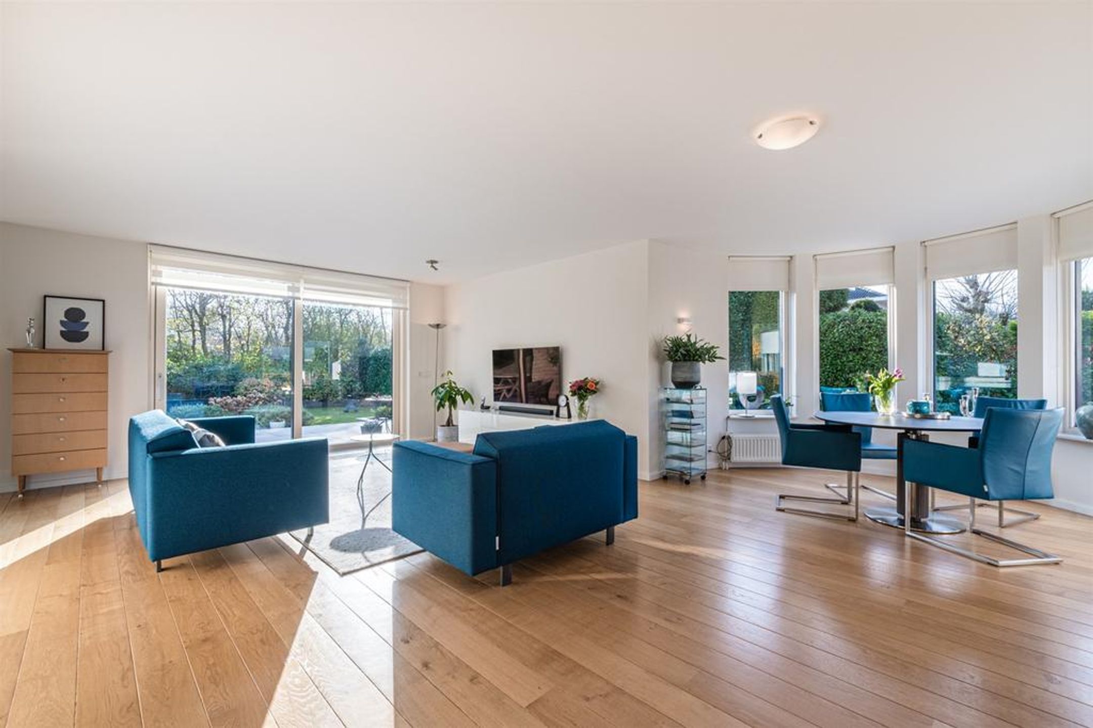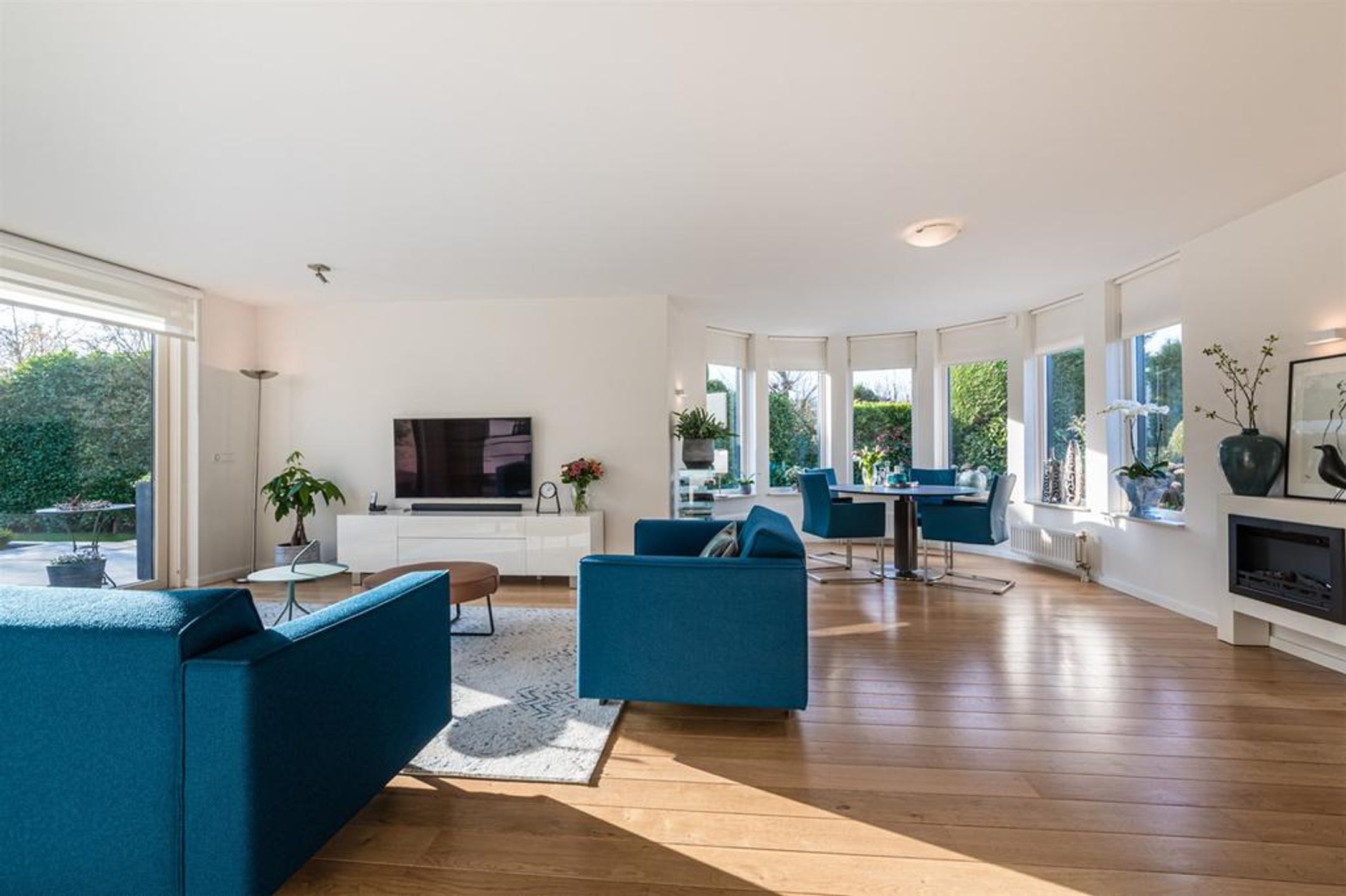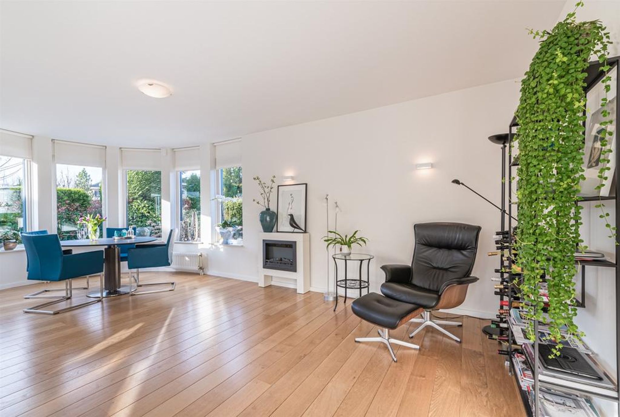 Ruime tuingerichte zitkamer en gezellige lichte eethoek in de halfronde erker