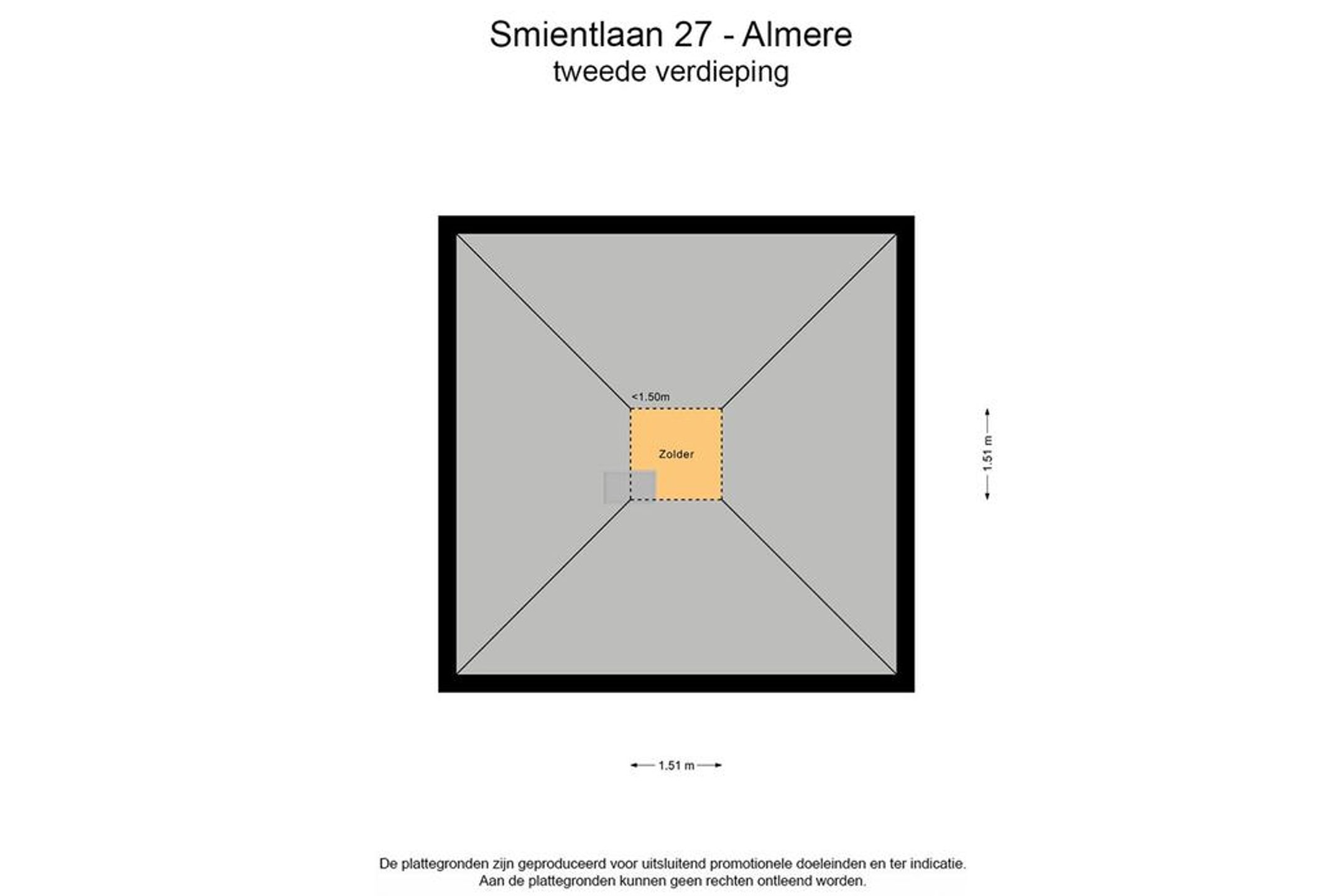Extra bergruimte op de tweede verdieping over de gehele woning, bereikbaar middels vlizotrap