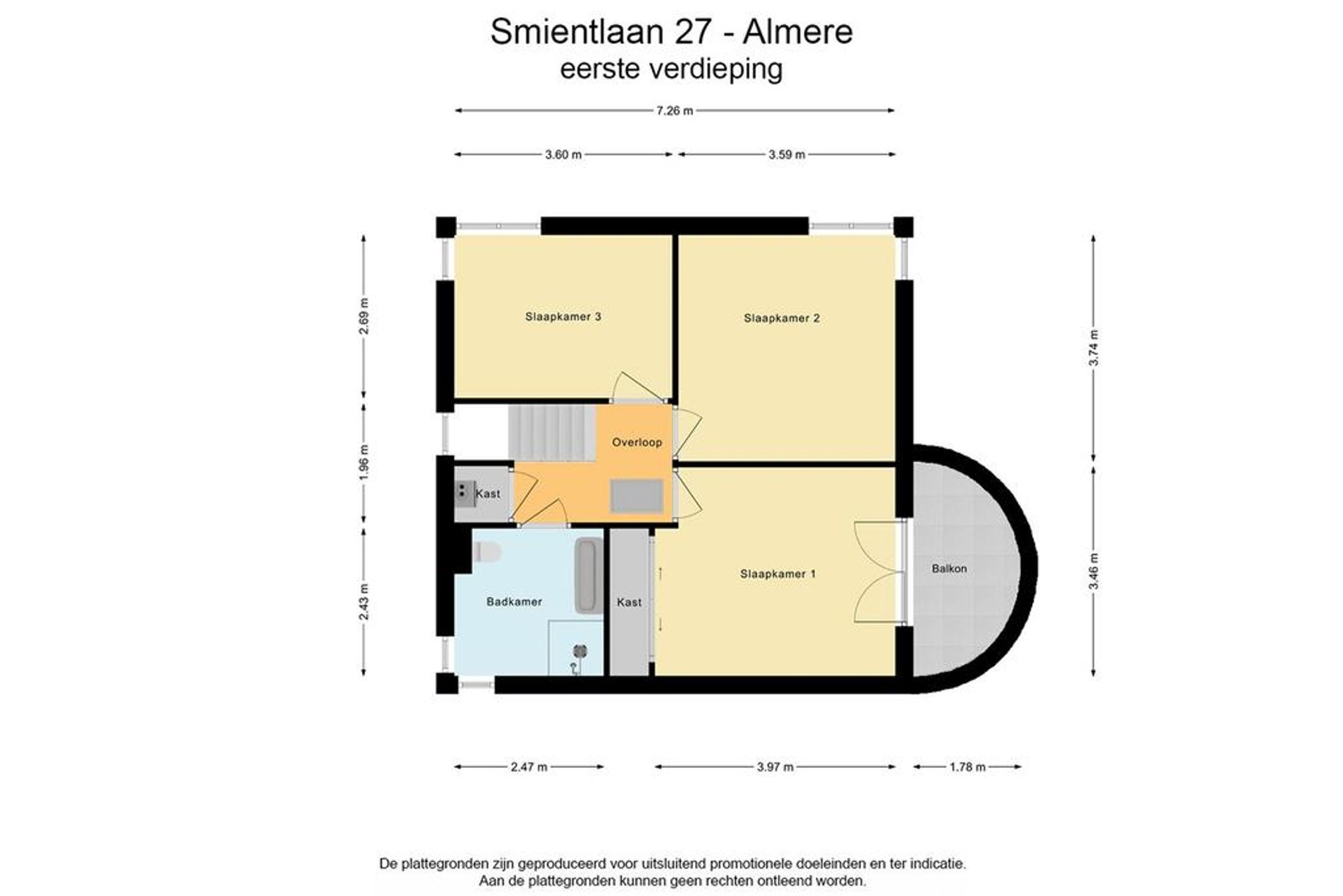 Overloop biedt toegang tot 3 in grootte variërende slaapkamers, badkamer en bergkast
