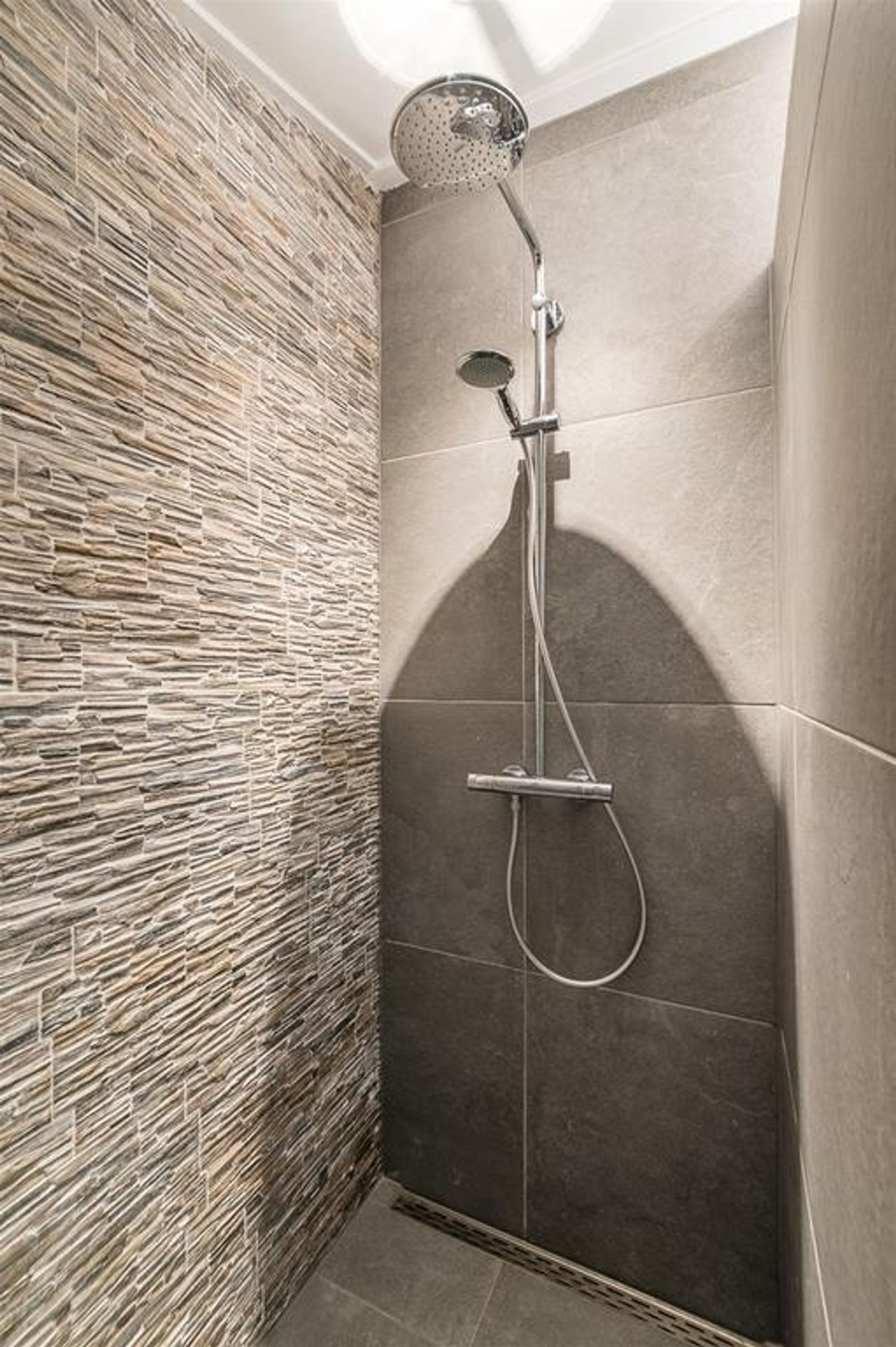Royale inloopdouche voorzien van thermostaatkraan, regendouche, handdouche en nis t.b.v. doucheproducten