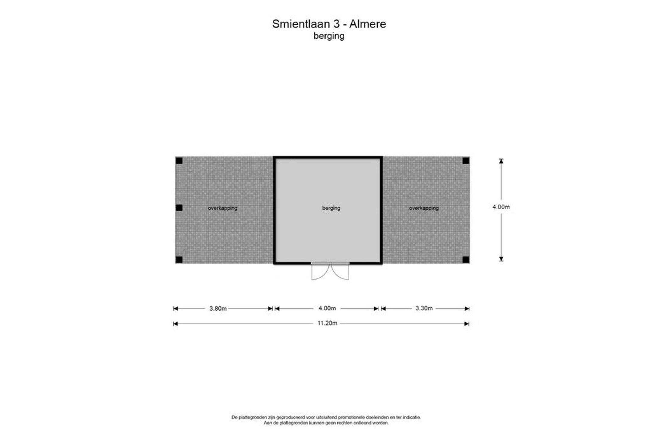 Nieuwe ruime buitenberging voorzien van dubbele deuren (ca. 4m x 11m incl. overkappingen)