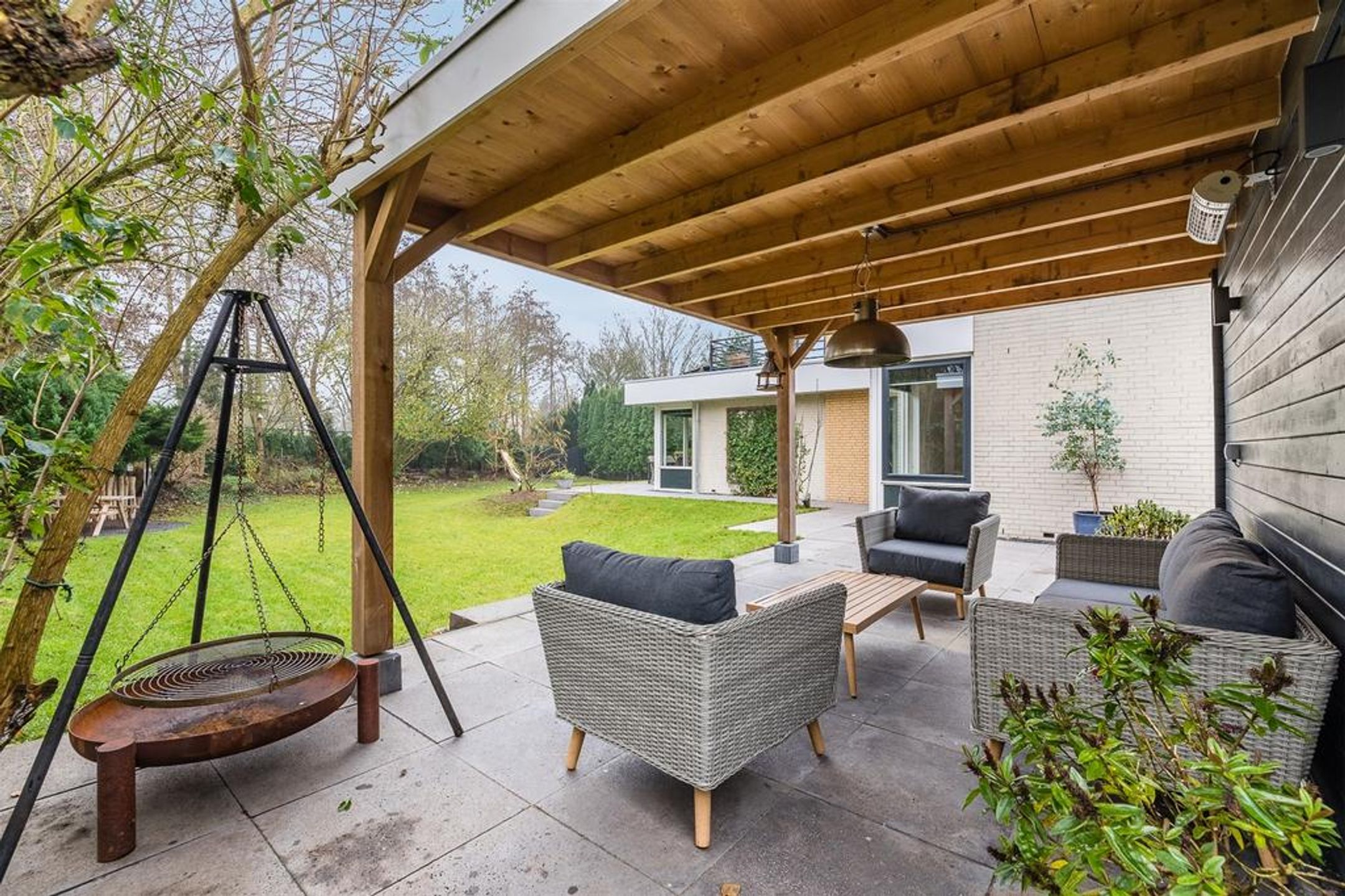 Sfeervolle overkapping (met terras heater) aan de voor- zonzijde met ruimte voor royale lounge set