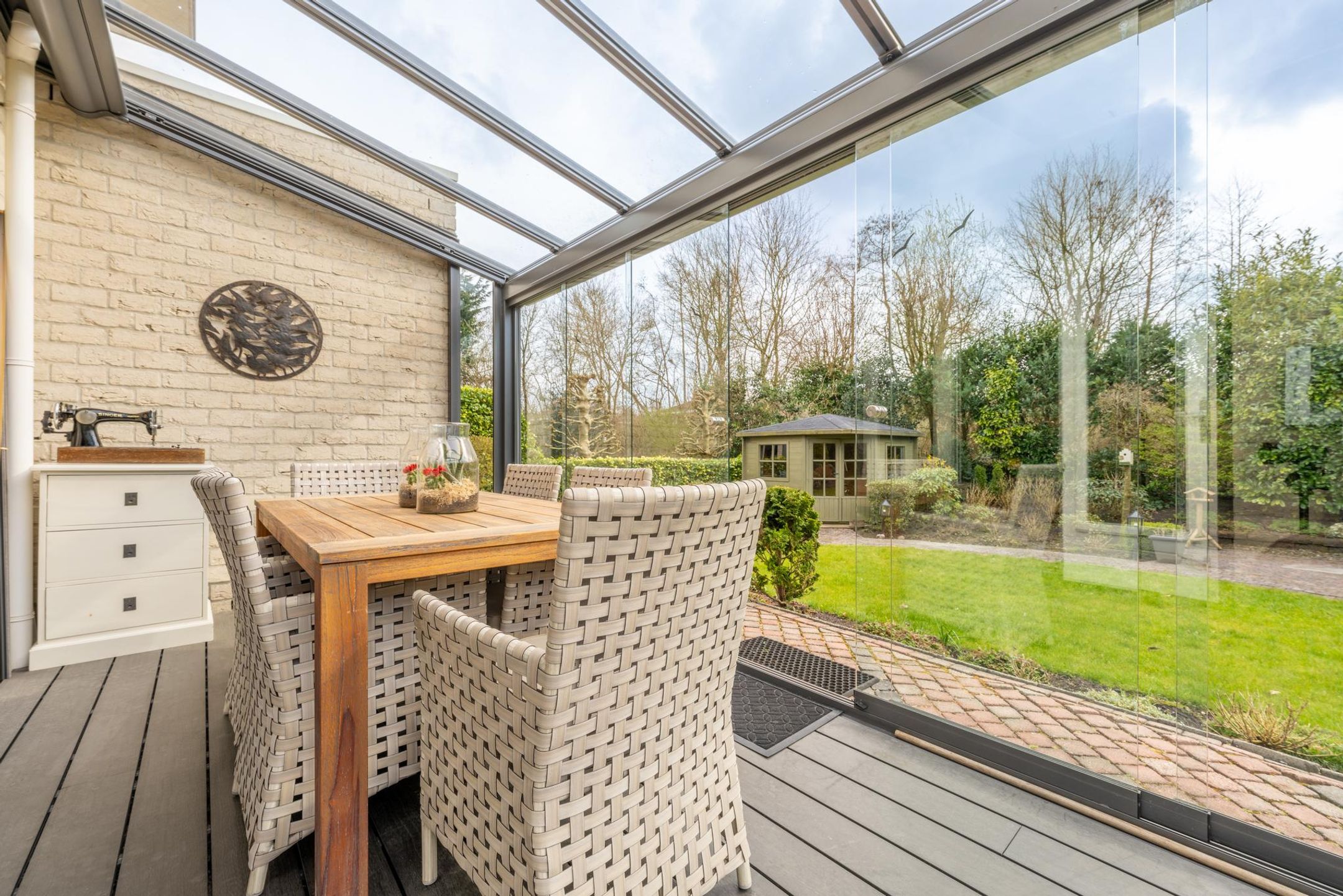 Luxe aluminium serre geplaatst aan de achtergevel.