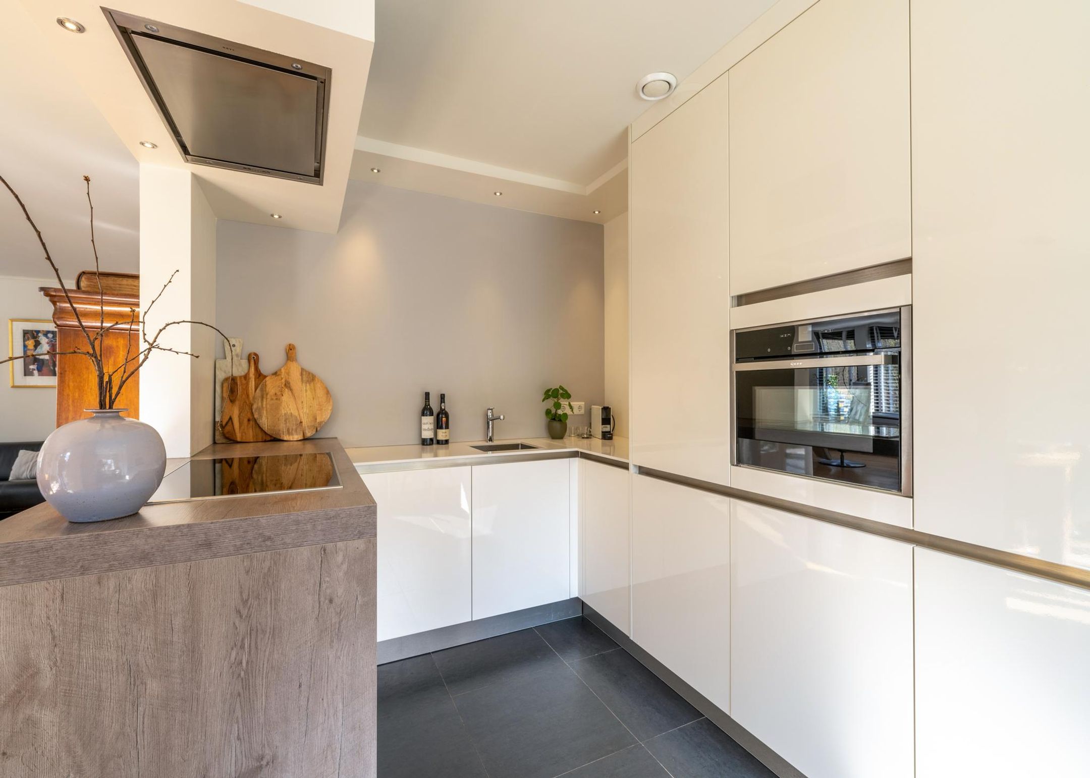Vernieuwde (2015) luxe inbouwkeuken opgesteld in ruime U-opstelling.