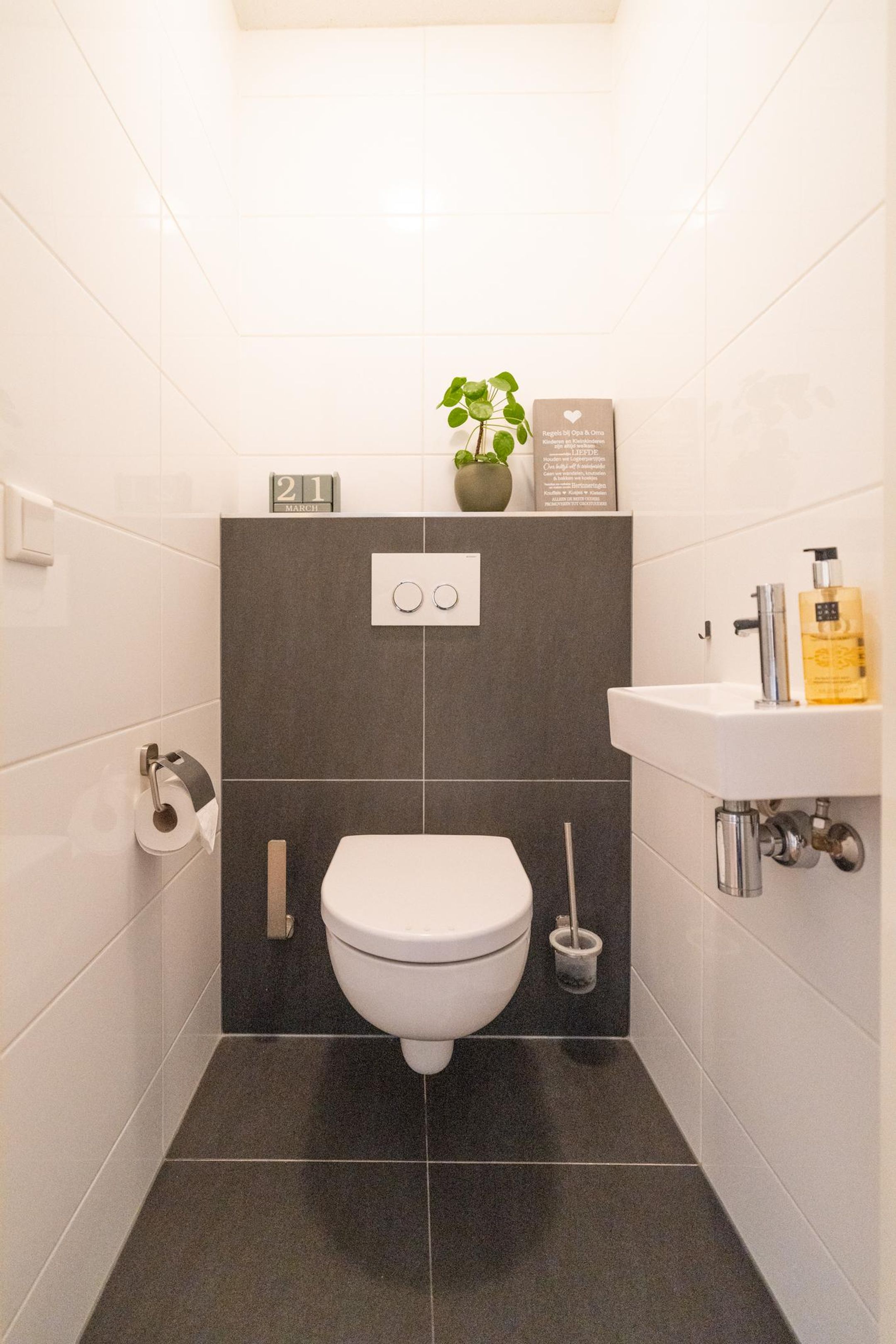 Vrij hangend closet met inbouw reservoir en fonteintje.