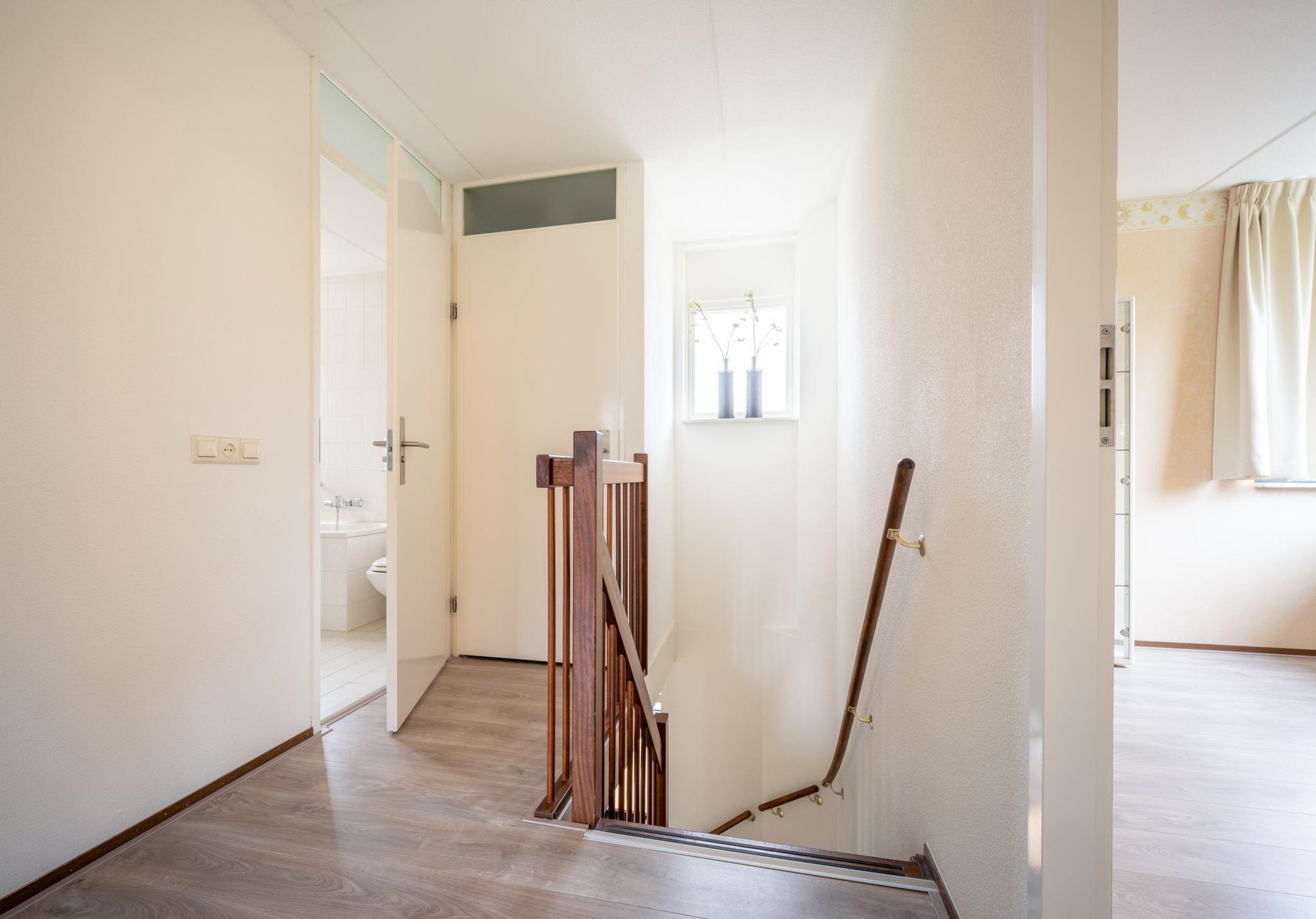 Overloop biedt toegang tot 3 in grootte variërende slaapkamers, badkamer en bergkast.