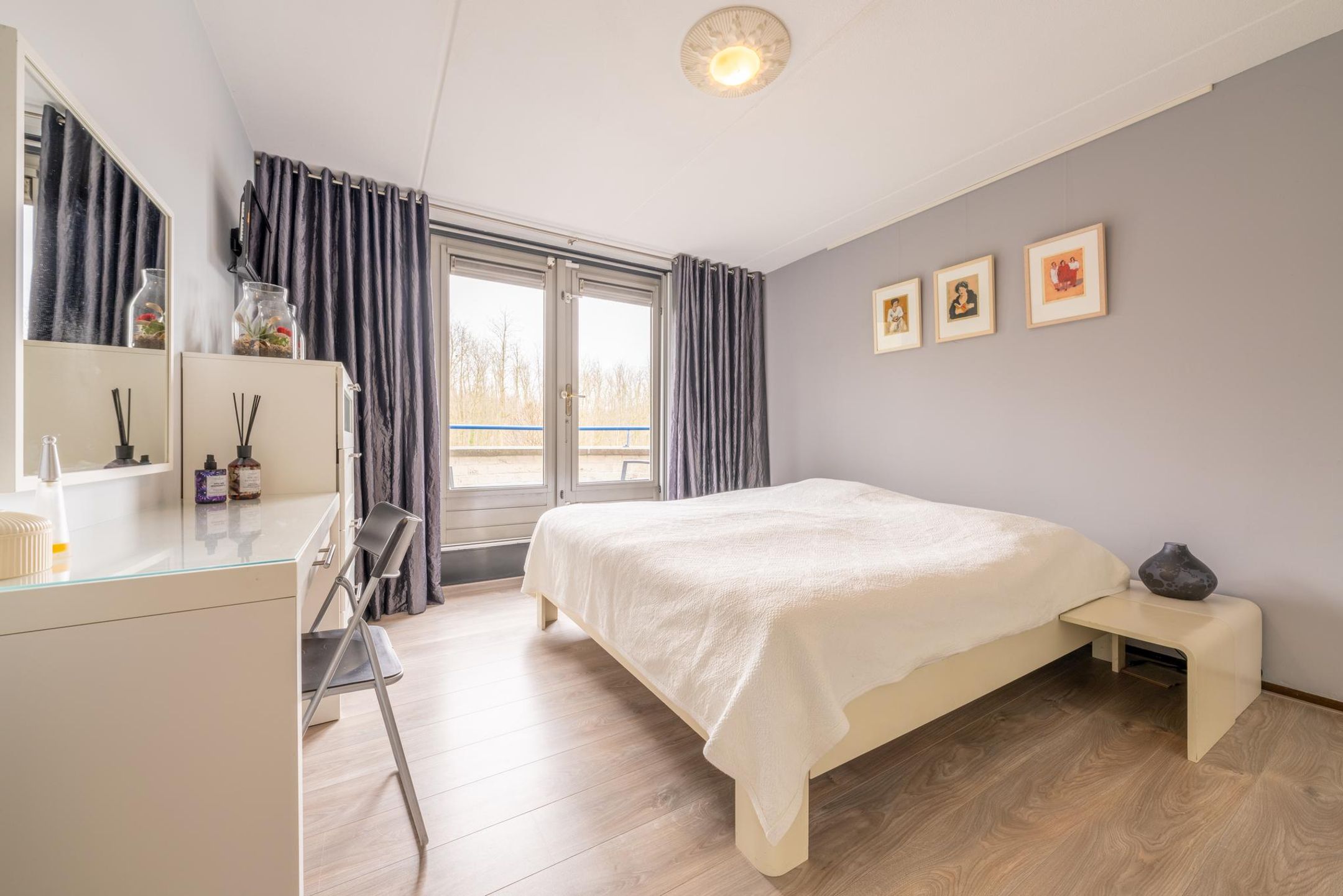 Vanaf balkon prachtig weids uitzicht op de bossen van Almere-Hout.