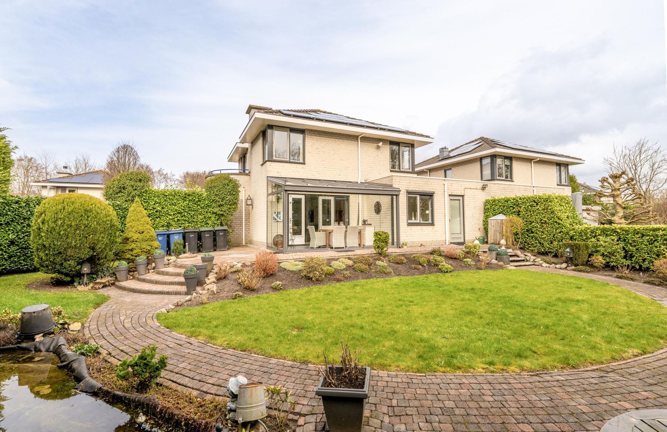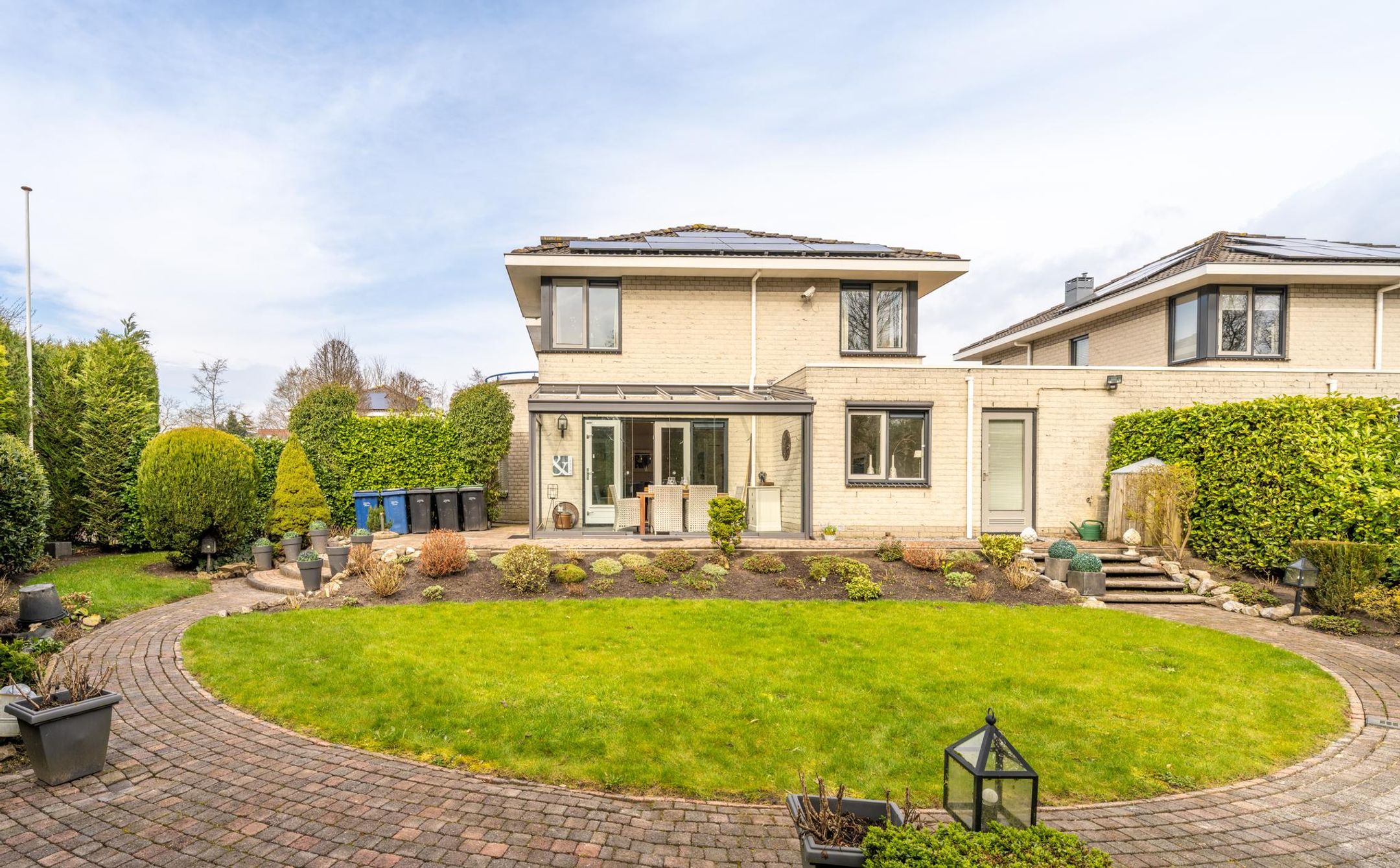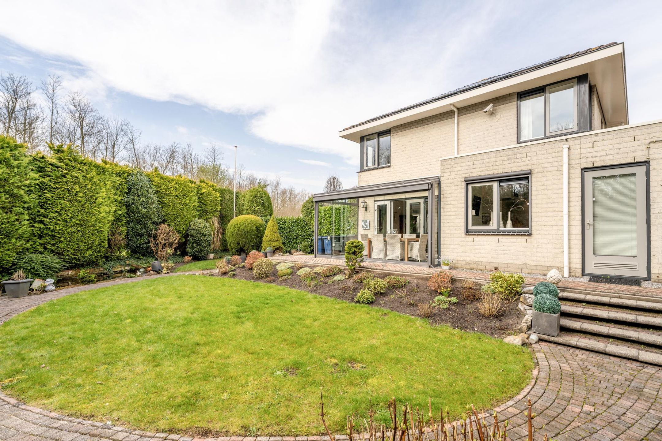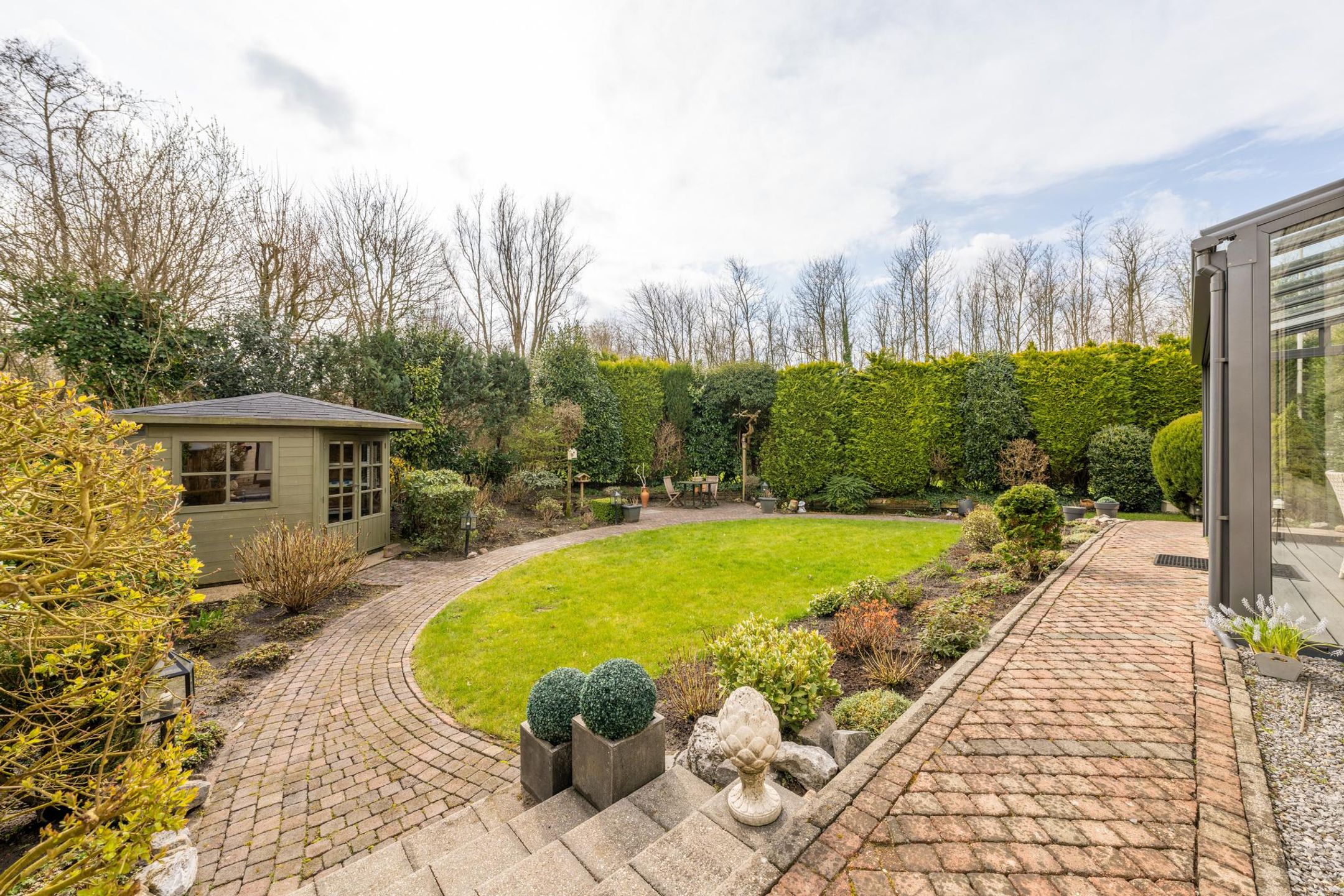 De royale en ideaal op het zuidwesten gerichte tuin biedt u fantastisch veel privacy door de aangrenzende hout- en boswal en hoge volgroeide hagen. De woning is ideaal gesitueerd aan het eind van de laan met weids zicht op het naastgelegen bos.