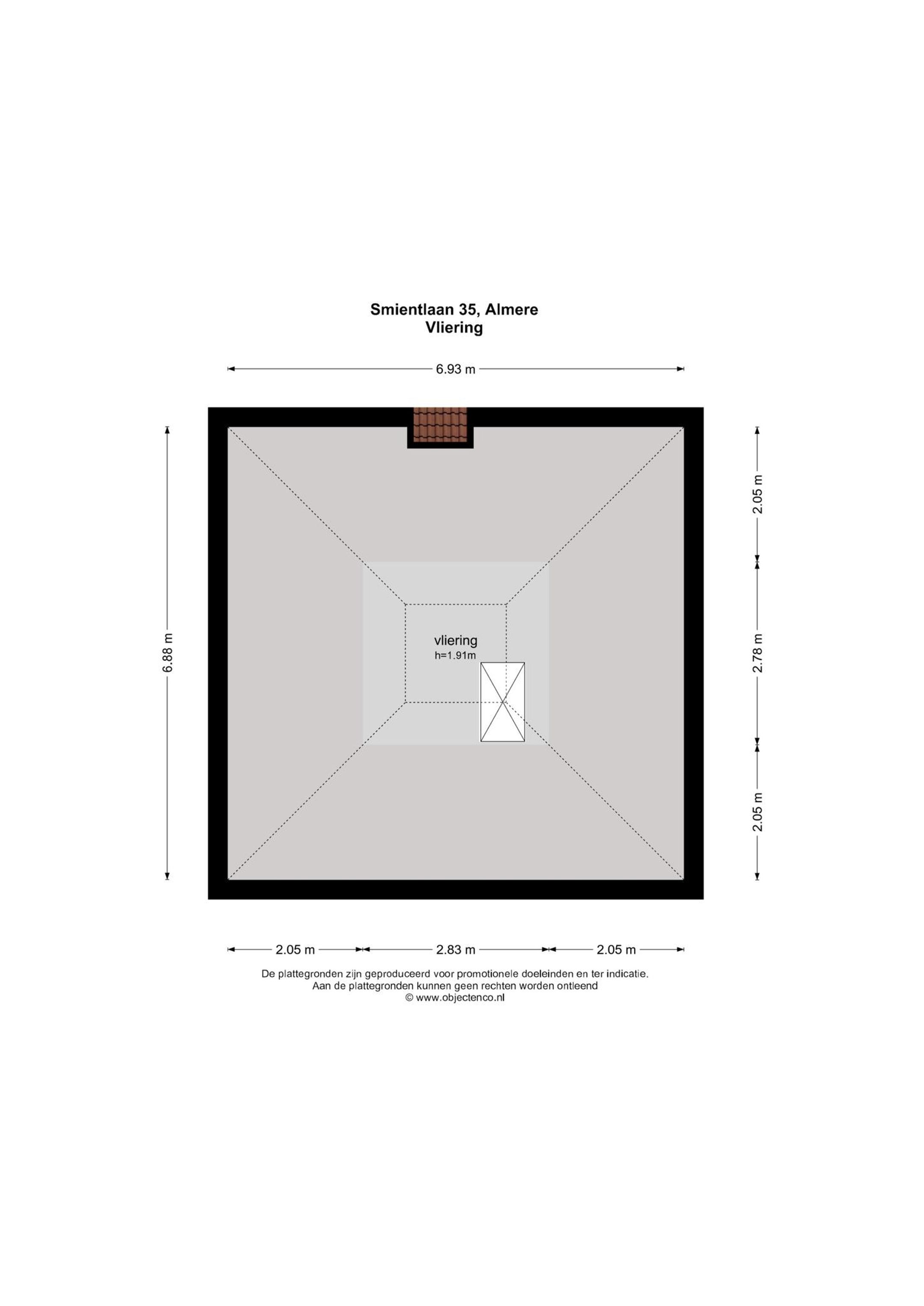 - Overige inpandige ruimte: ca. 8 m2. (bergzolder)