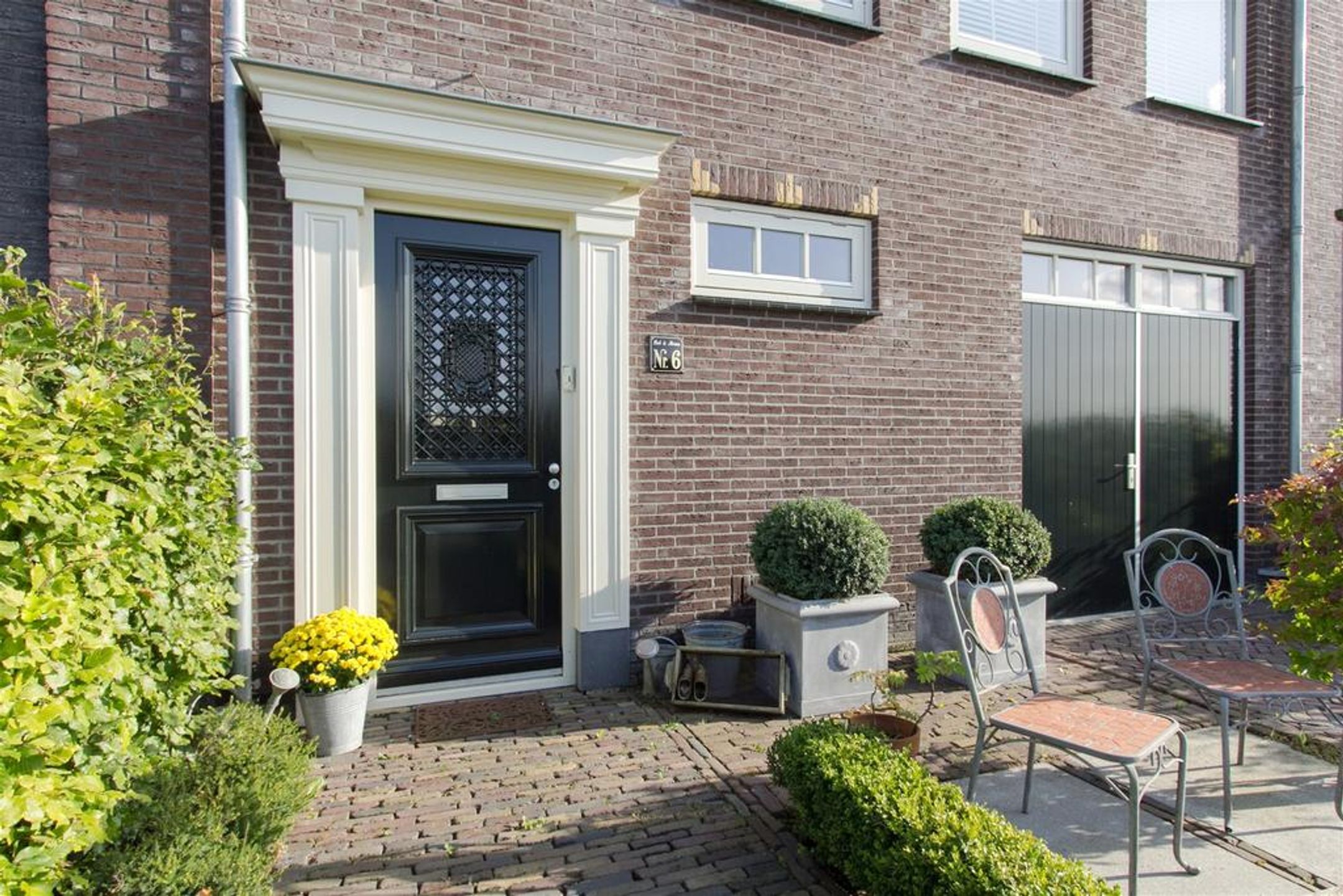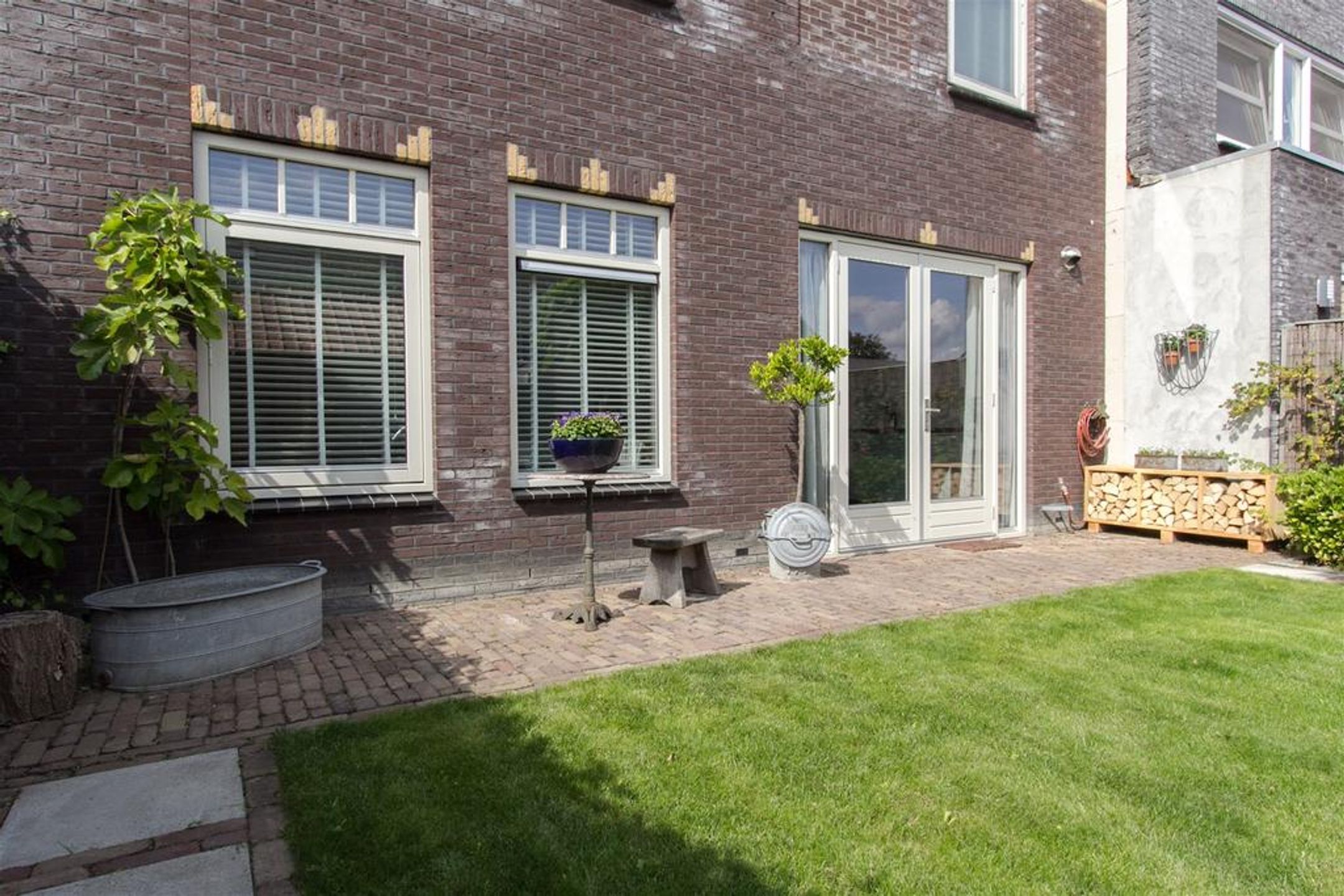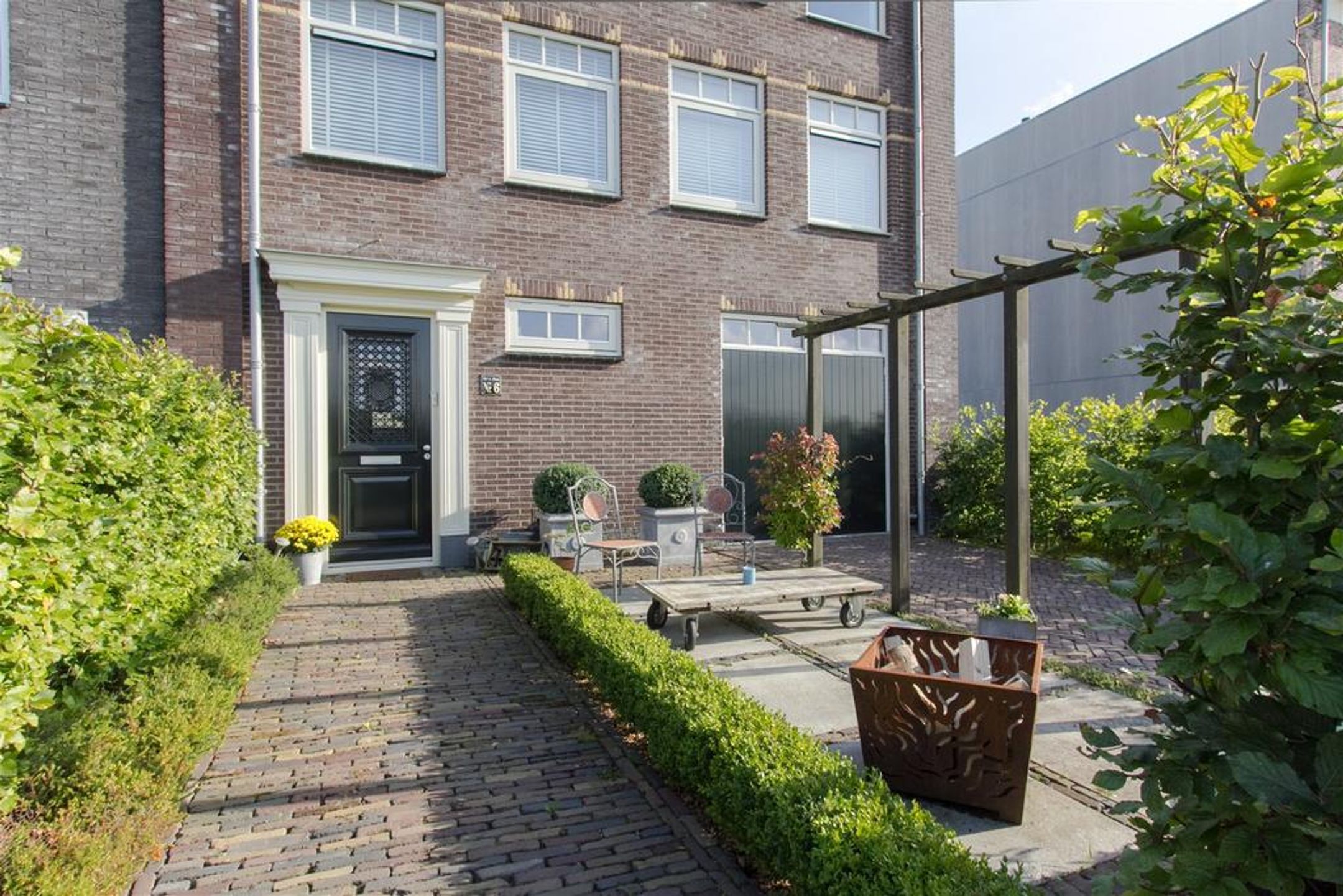 - brede en diepe voortuin voorzien van karakteristieke oude klinkers, beukenhaag en buitenkraan;