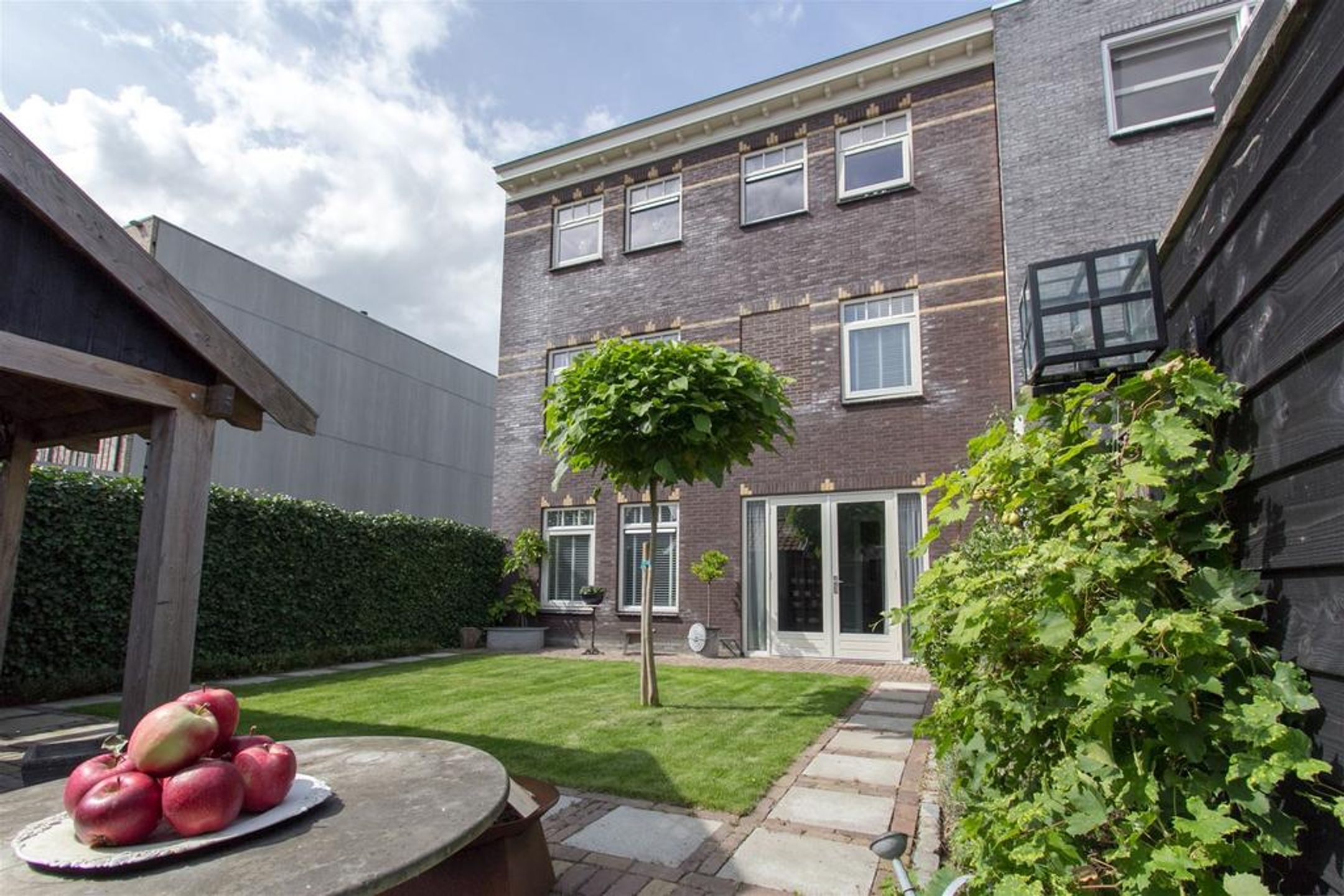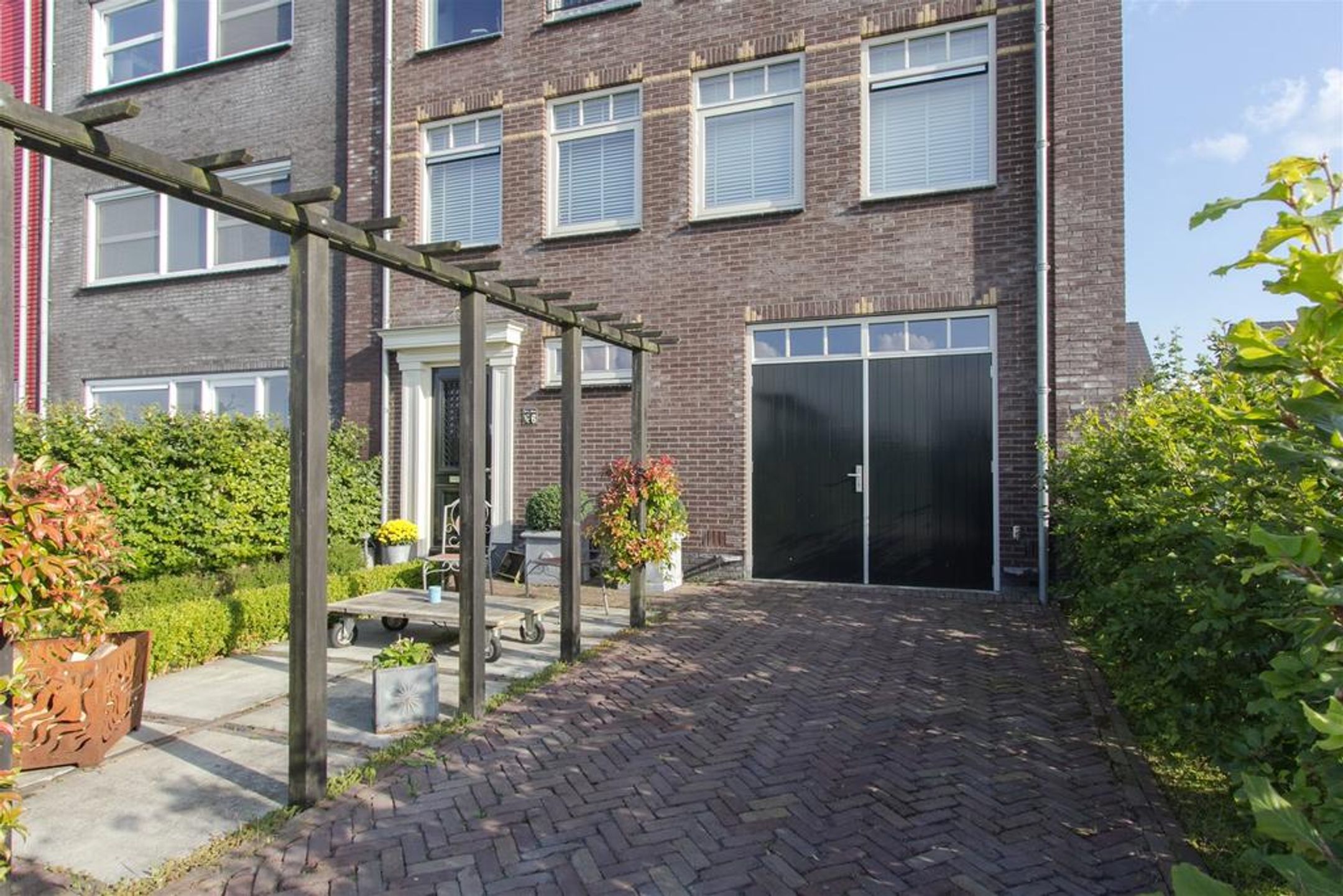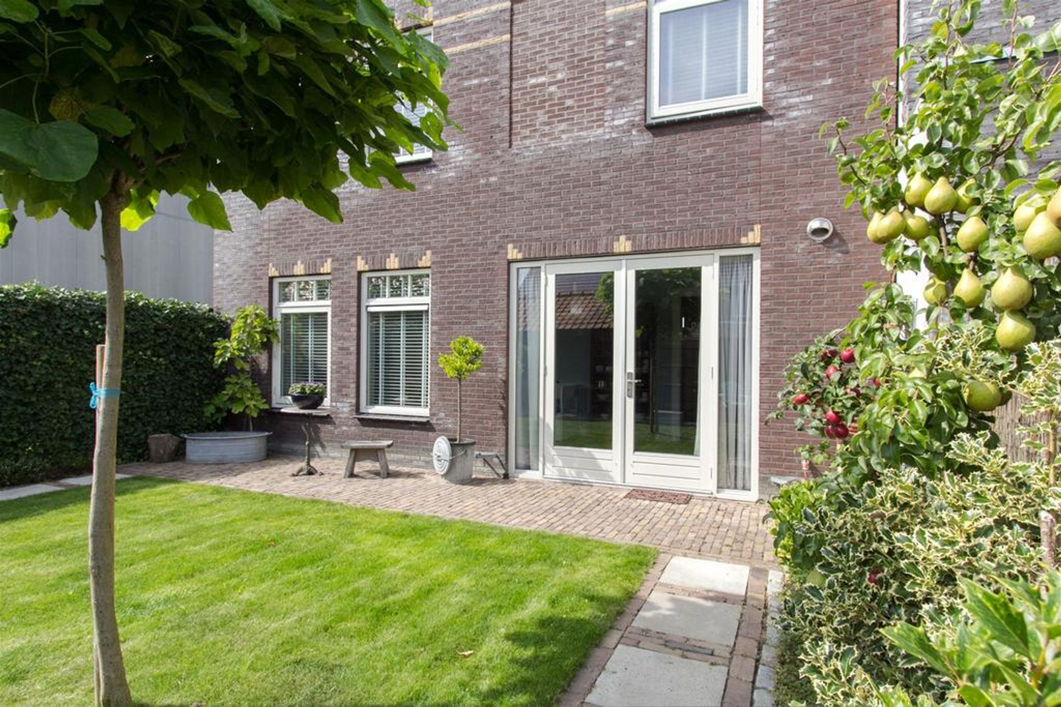 - brede en diepe voortuin voorzien van karakteristieke oude klinkers, beukenhaag en buitenkraan;