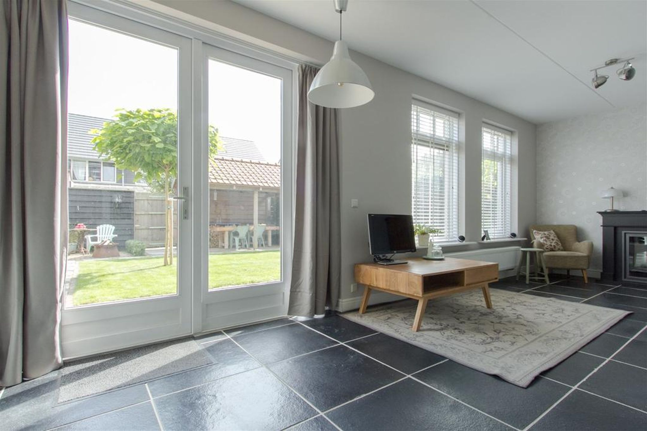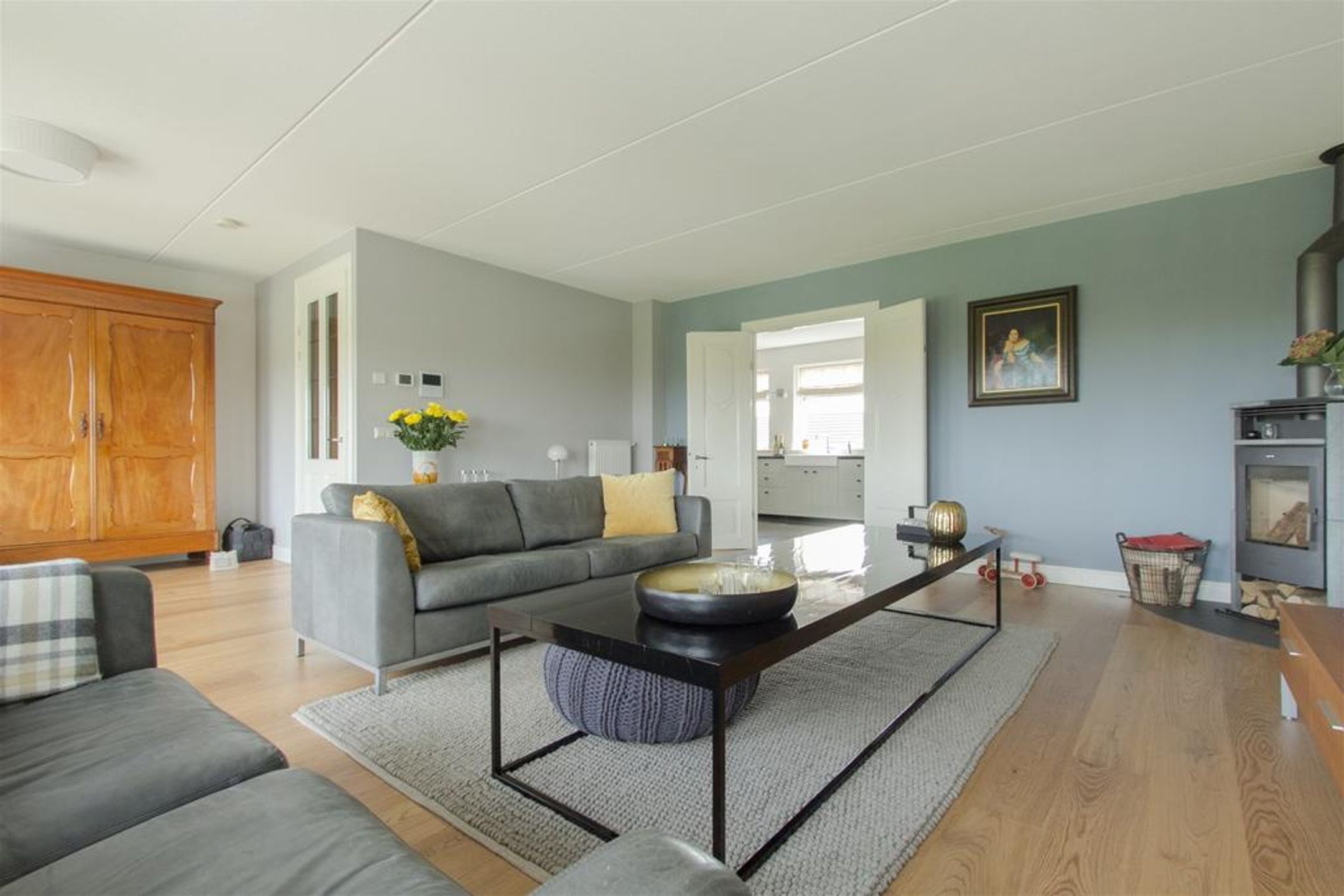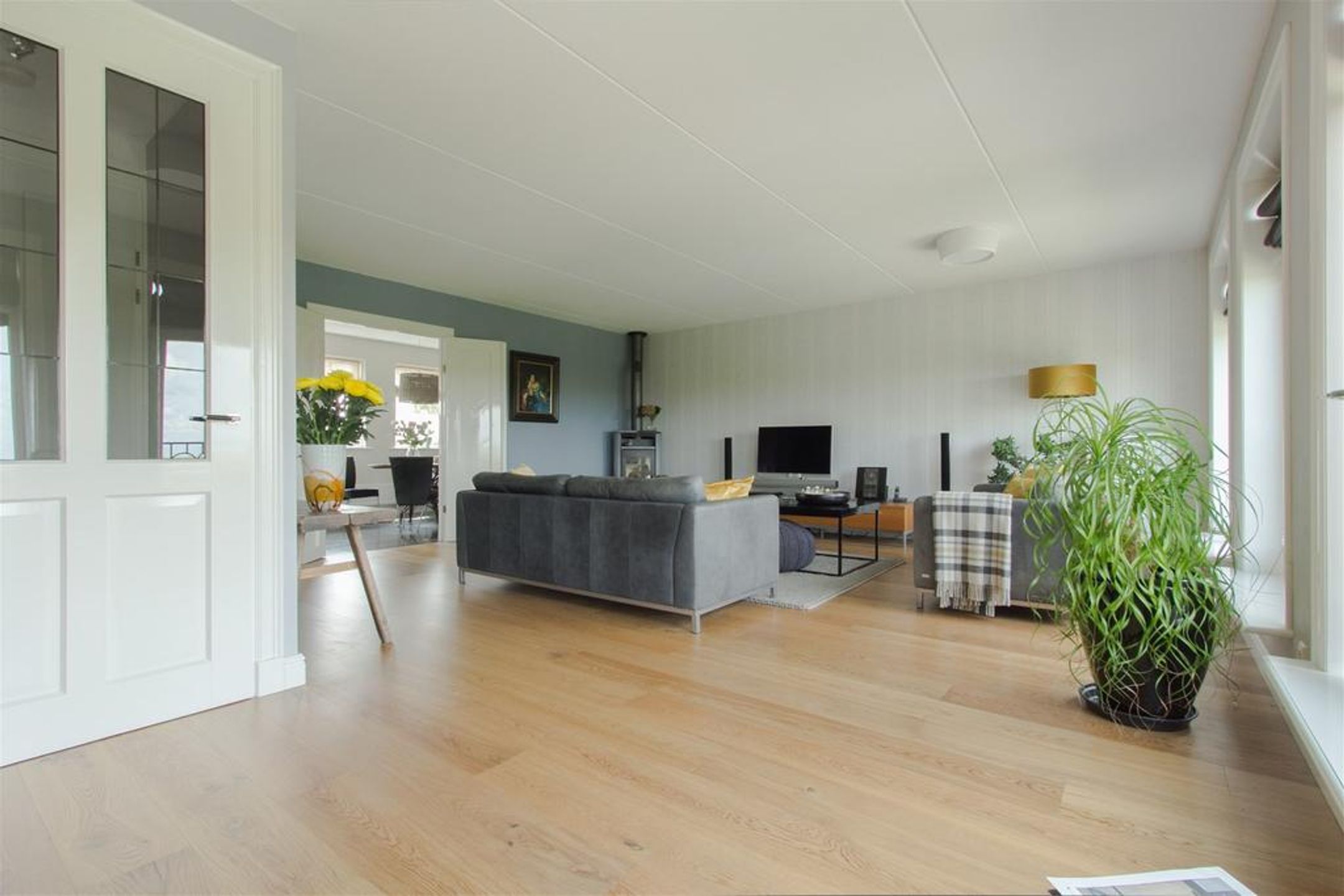 - royale lichte living met Eiken plankenvloer en voorzien van sfeervolle houtkachel;