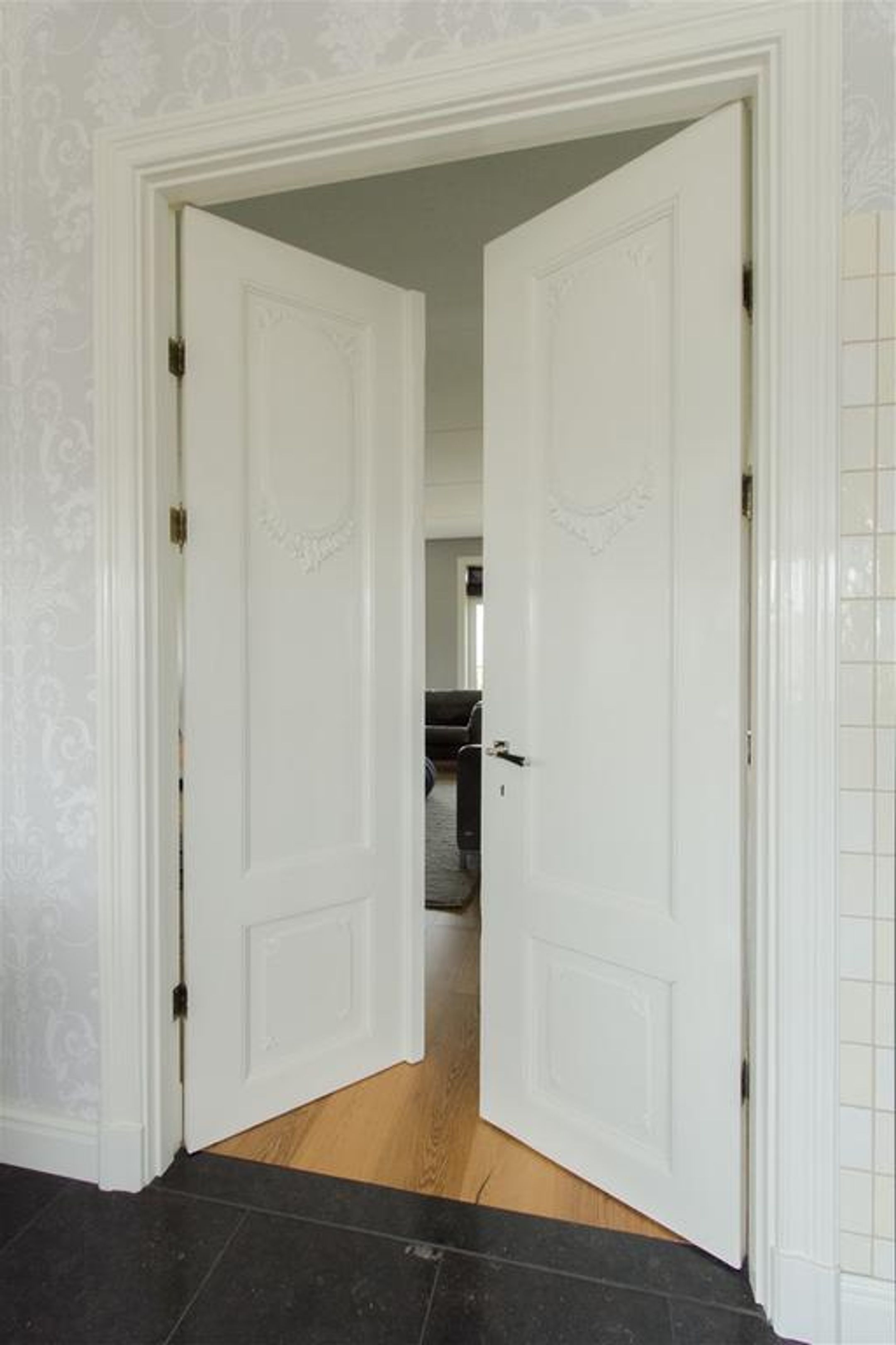 - schitterende oude nostalgische dubbele binnendeuren tussen living en woonkeuken;