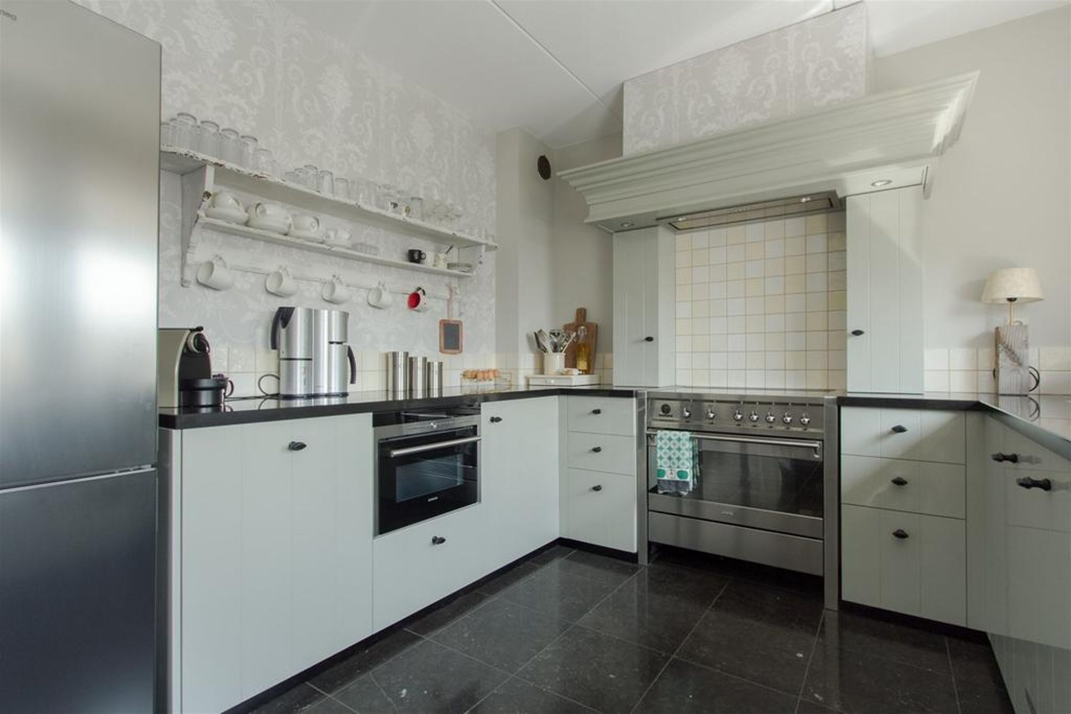 - wanden voorzien van glad stucwerk en deels stijlvol behang;