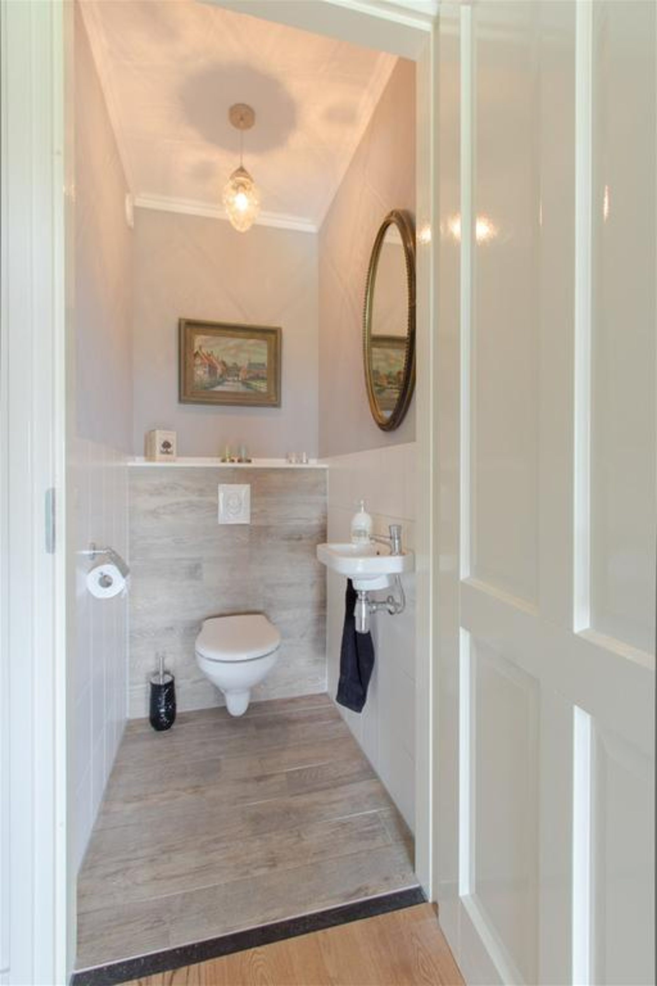 - toiletruimte met vrij hangend closet, inbouwreservoir en fonteintje;