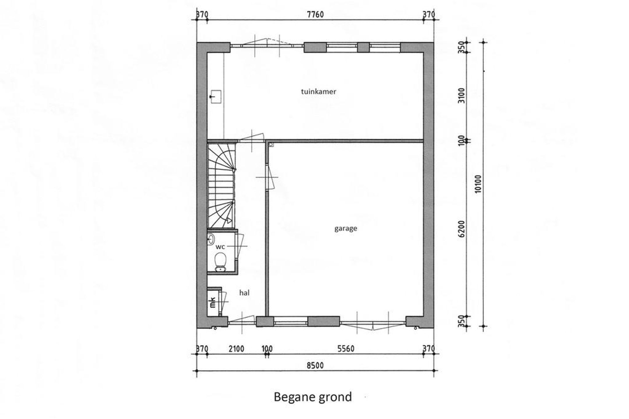 - zeer royale garage voorzien van traditionele dubbele toegangsdeuren;