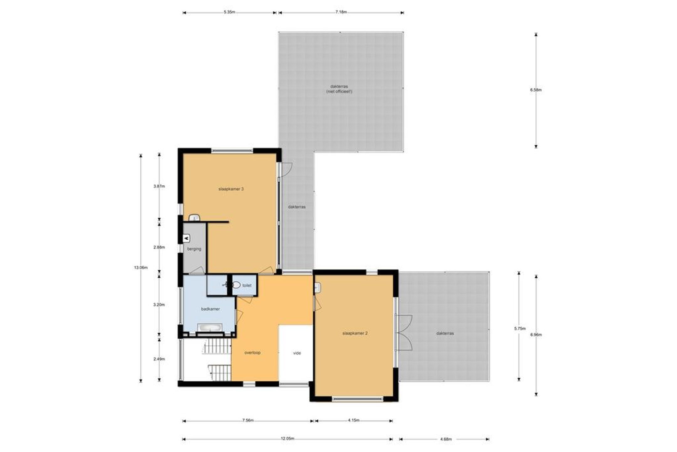 Over moderne trap met bordes en Beuken traptreden, met langs de wand inbouw wandspots, bereikt u de royale overloop. Deze biedt toegang tot 2 in grootte variërende slaapkamers (mogelijkheid creëren van drie slaapkamers), tweede badkamer, separate toiletruimte, berging/technische ruimte, twee dakterrassen en de trapopgang naar de tweede verdieping. De hoog oplopende raampartij, de ramen rondom en de vide geven een zeer ruimtelijk effect.