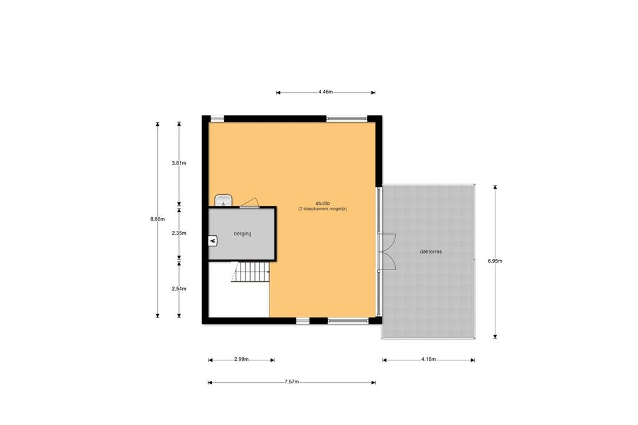 • Ruime studio op de tweede verdieping met mogelijkheid tot creëren twee tot drie slaapkamers;