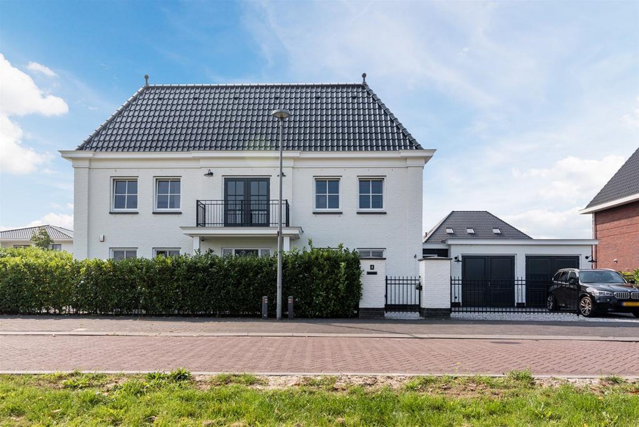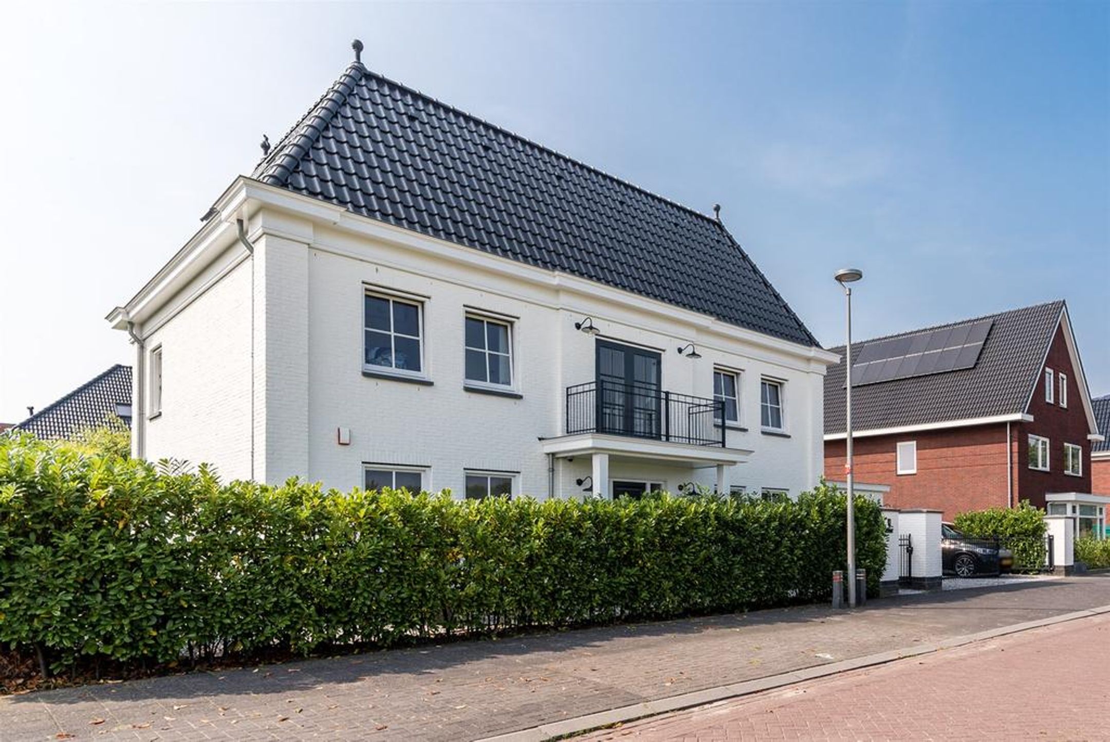 Deze stijlvolle villa kenmerkt zich door handgevormde metselstenen, de wit gekeimde gevels, de traditionele kap voorzien van geglazuurde pannen, de grote raampartijen rondom voorzien van roede verdeling, de rijk gedetailleerde overstekken en goten, de zinken hemelwaterafvoeren, de royale rijk gedetailleerde luifel voorzien van zware kolommen t.p.v. de voordeur, de 2 x dubbele deuren t.p.v. de garage en praktijkruimte, de zware gemetselde poeren voorzien van brievenbus en het stijlvolle stalen hekwerk rondom de voorzijde van het perceel. Er is voldoende parkeergelegenheid op eigen terrein voor het plaatsen van meerdere auto's.