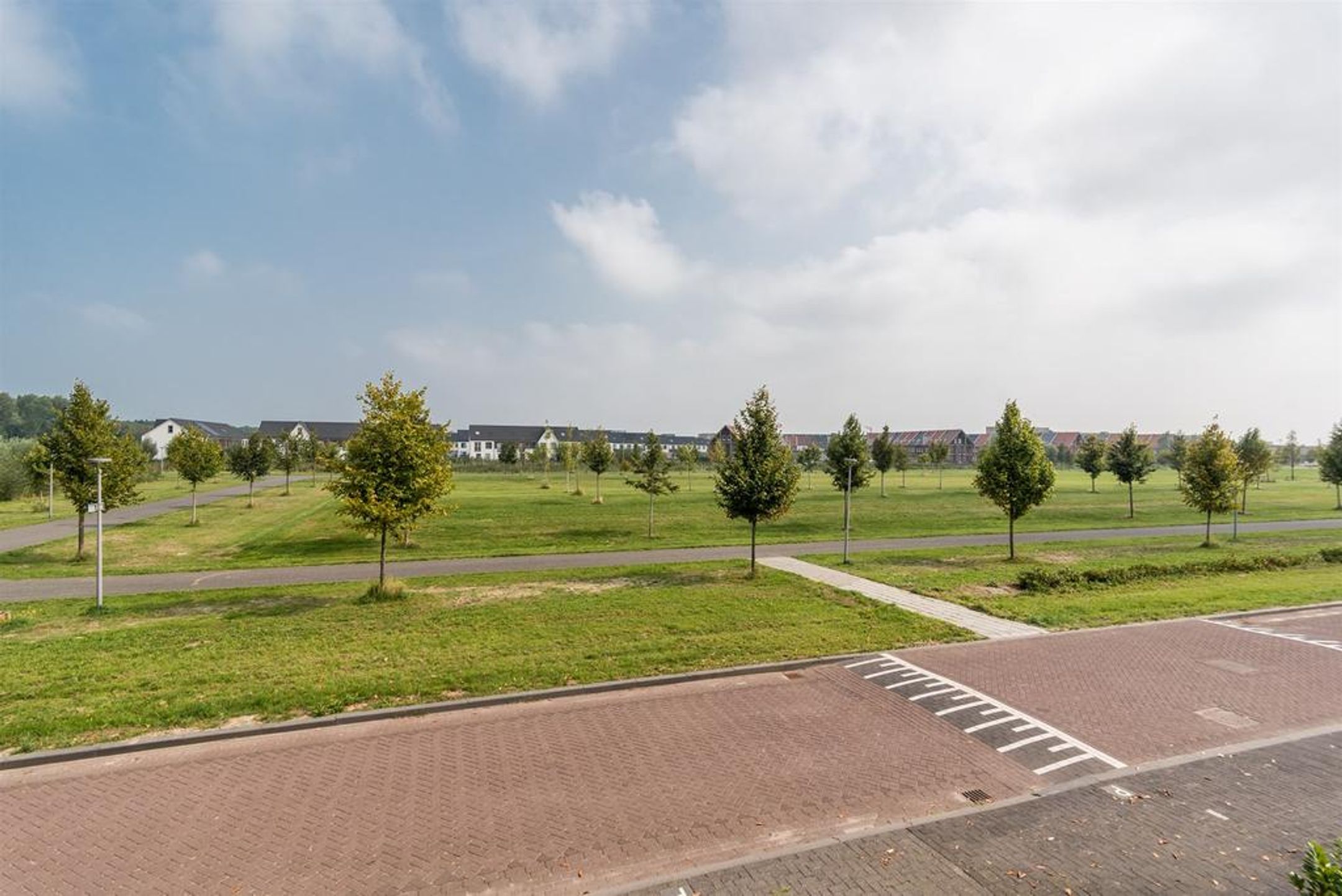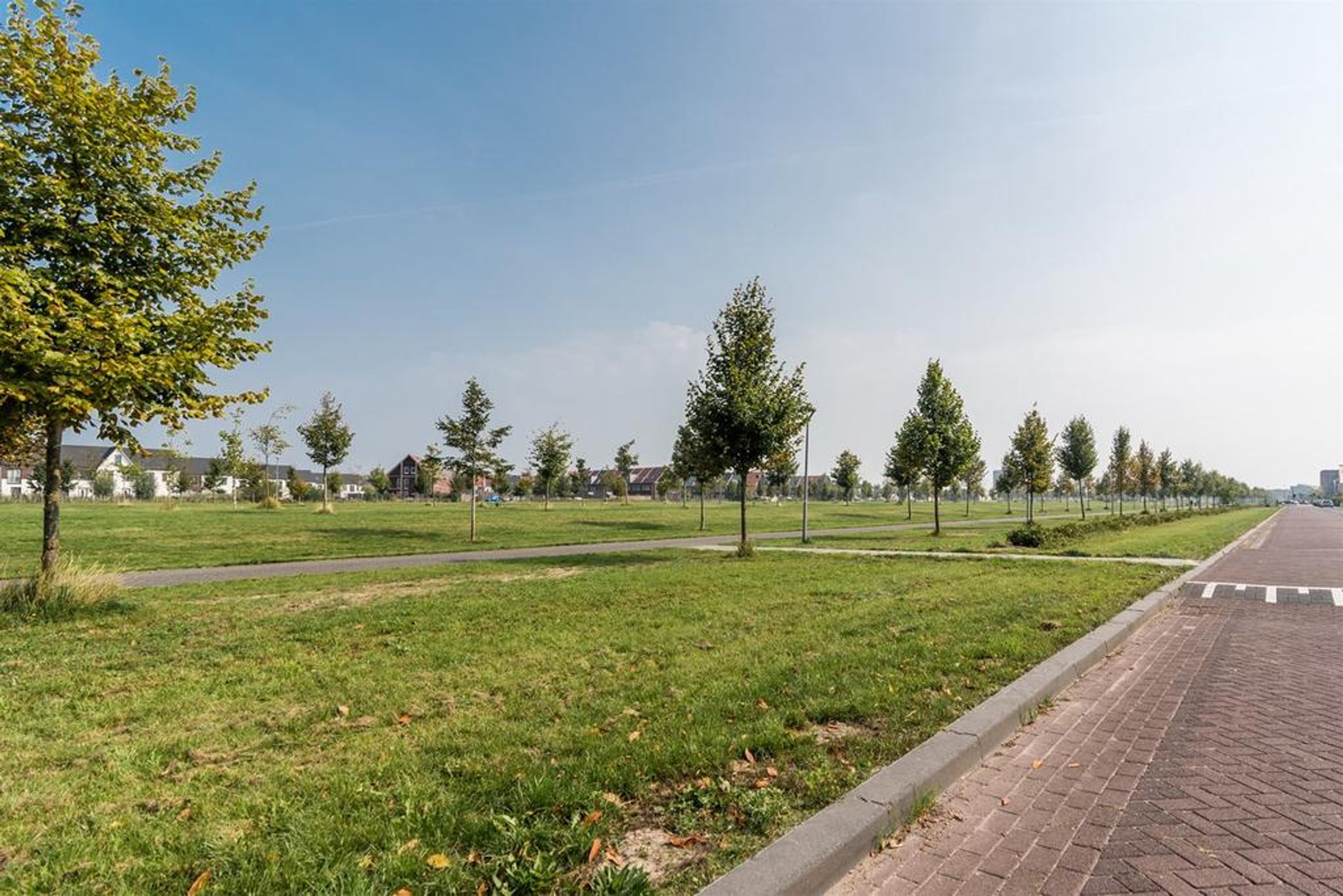 Aan park, aan rustige weg, in woonwijk, vrij uitzicht