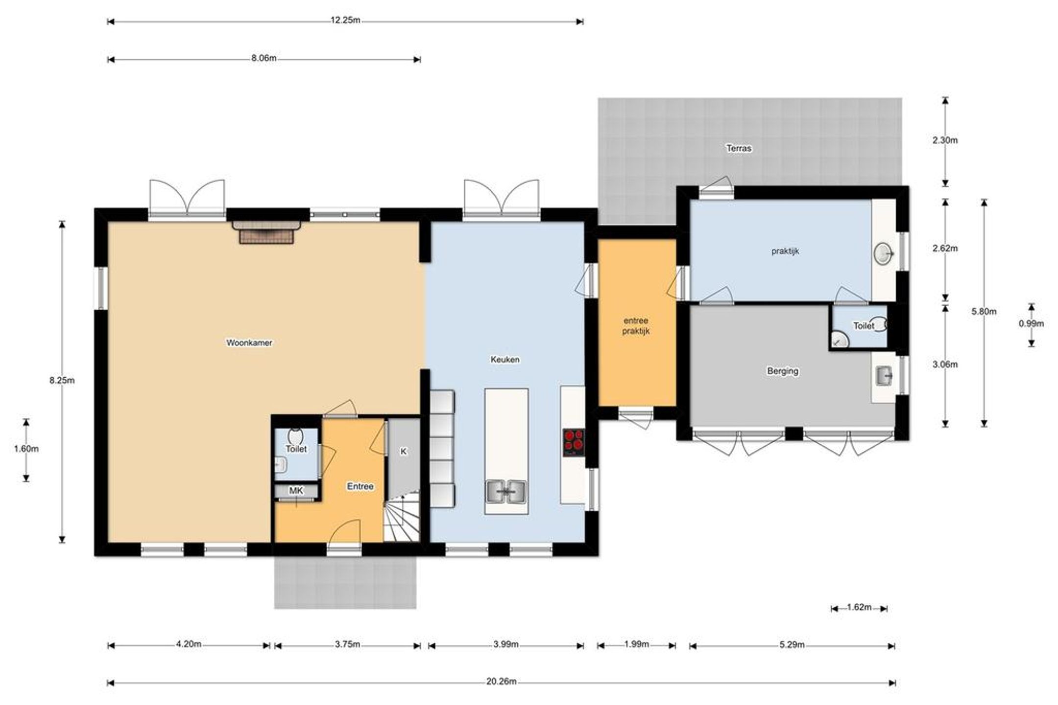 - luxe praktijkruimte te bereiken via de woning maar beschikt tevens ook over een eigen toegang via buiten;