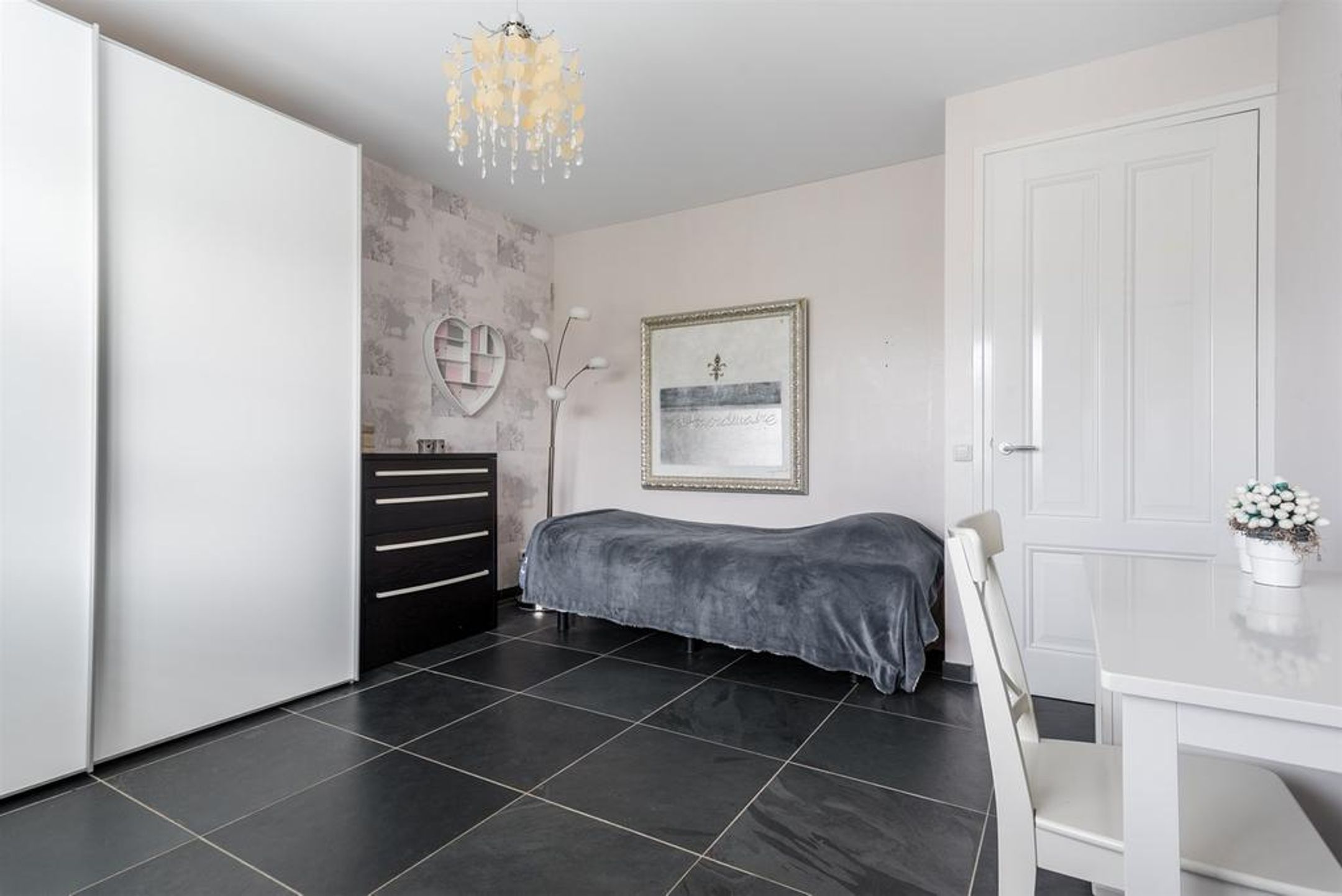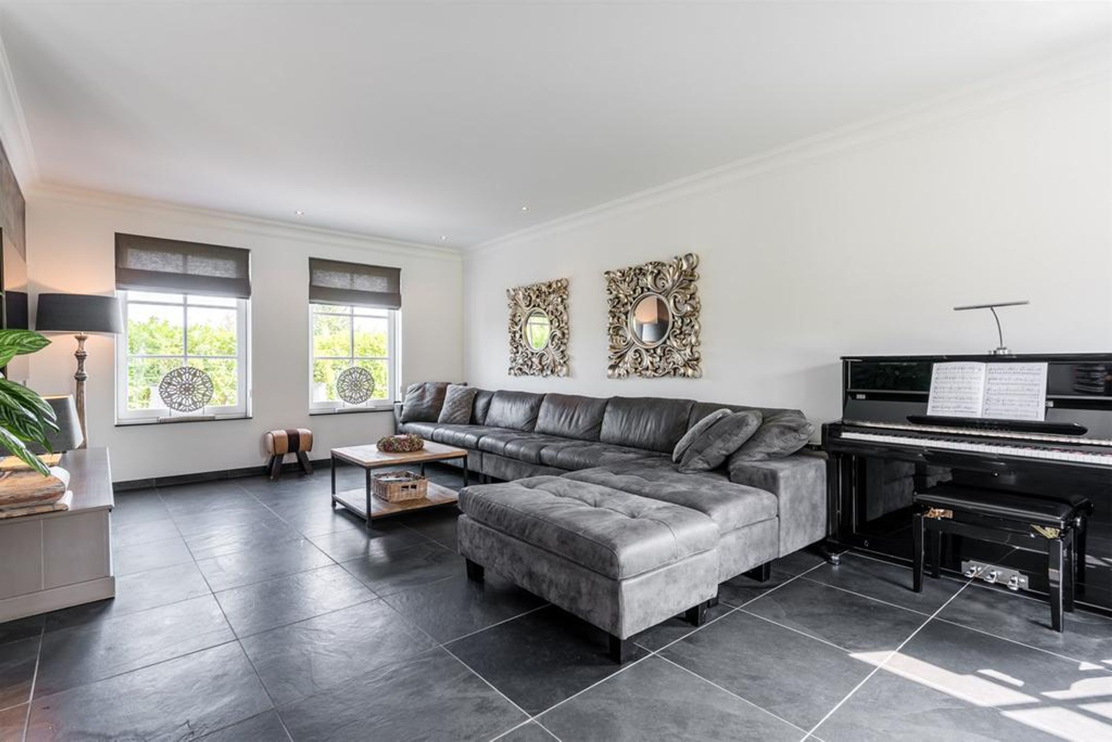 - karakteristieke grote leisteen vloertegels met daaronder comfortabele vloerverwarming op de begane grond en de 1e verdieping;