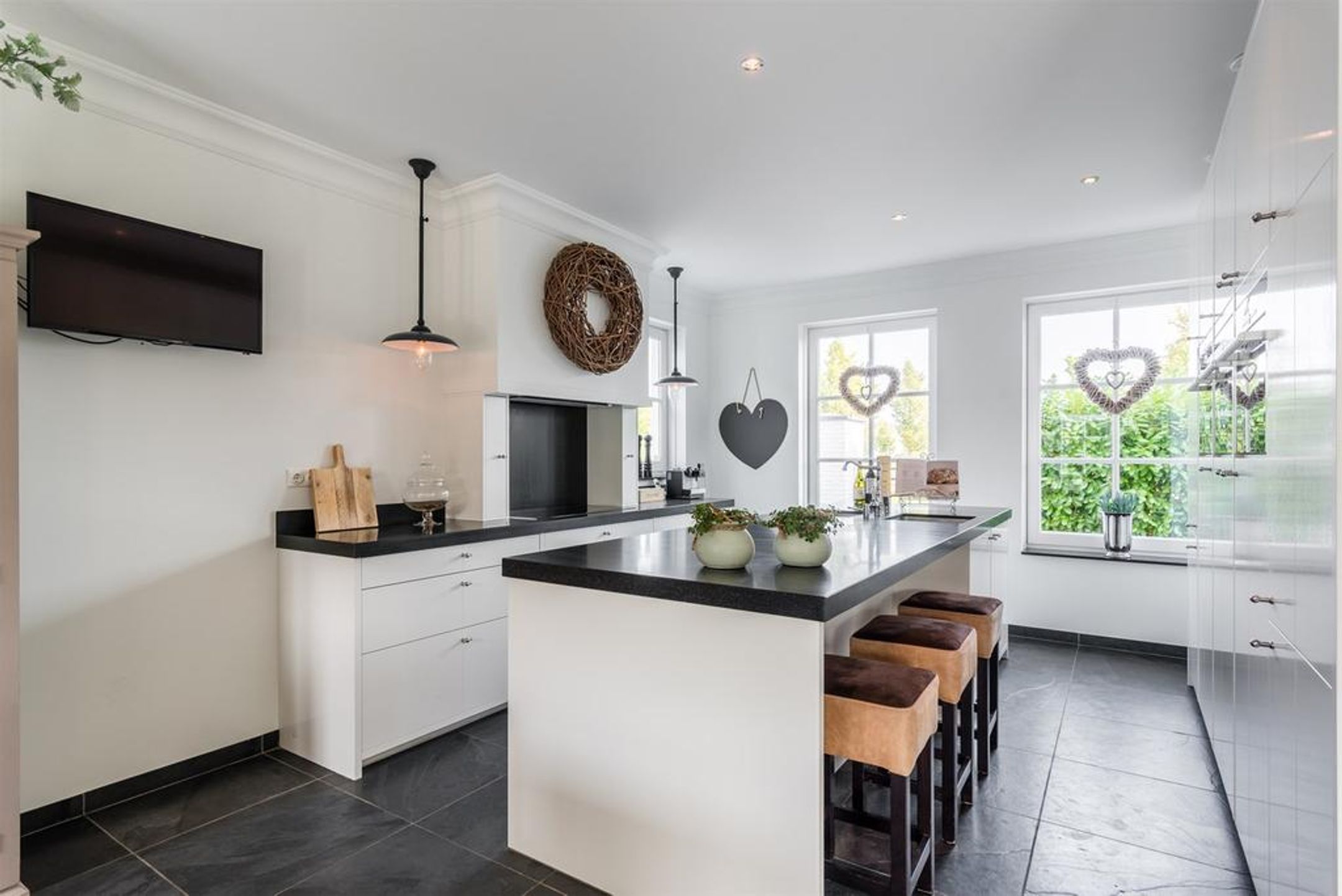 - stijlvolle keuken voorzien van veel kastruimte en alle wenselijke inbouwapparatuur;